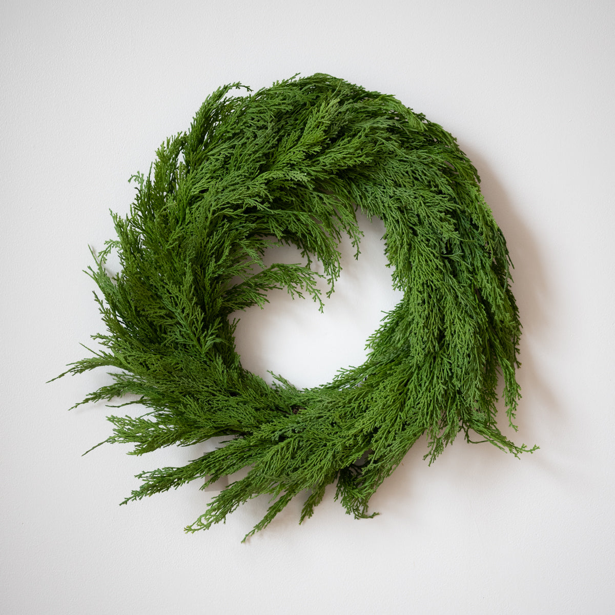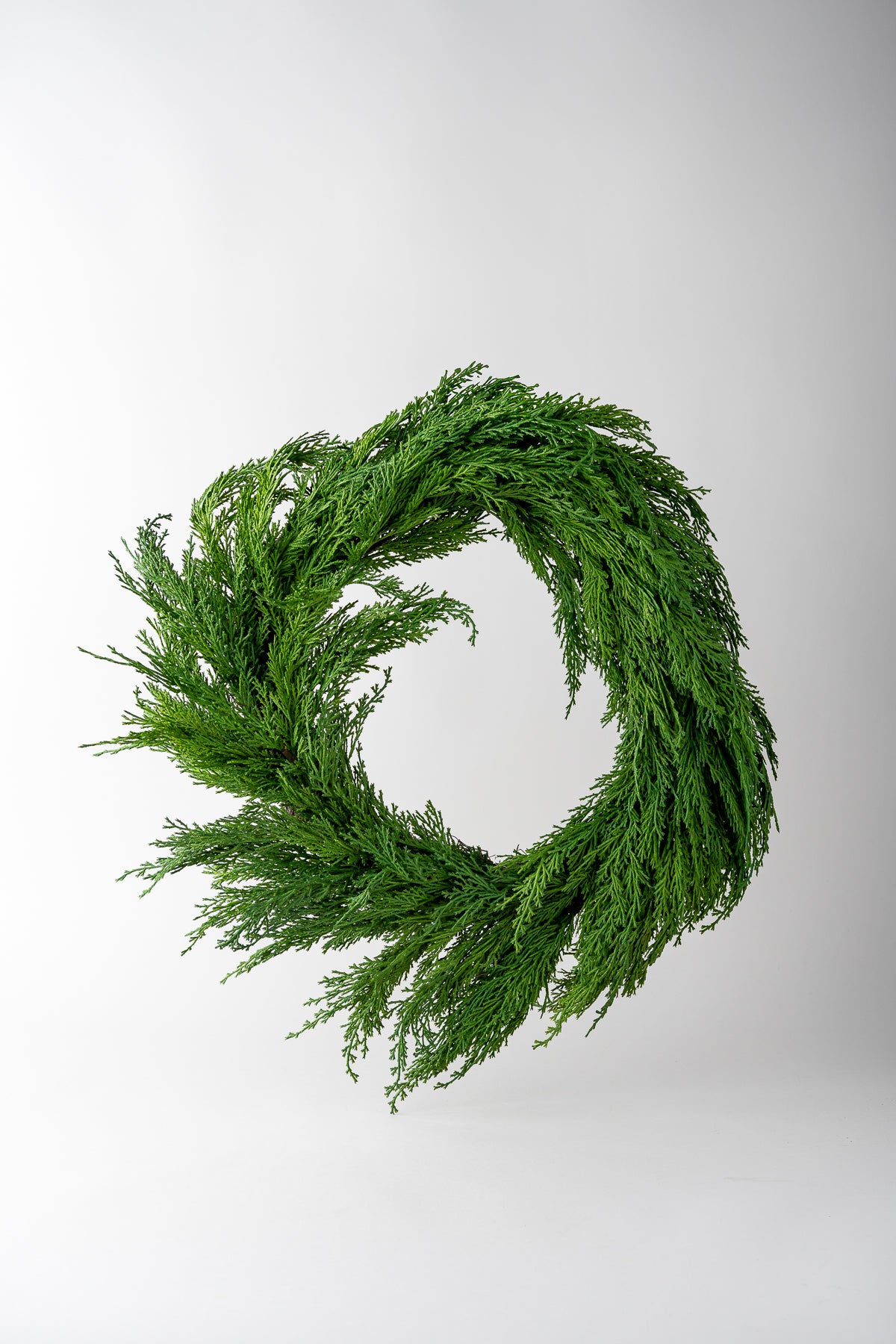 Display this beautiful wreath on any door or mantle place to add festivity and warmth to your home. Enjoy the beauty of a cedar wreath without the mess.