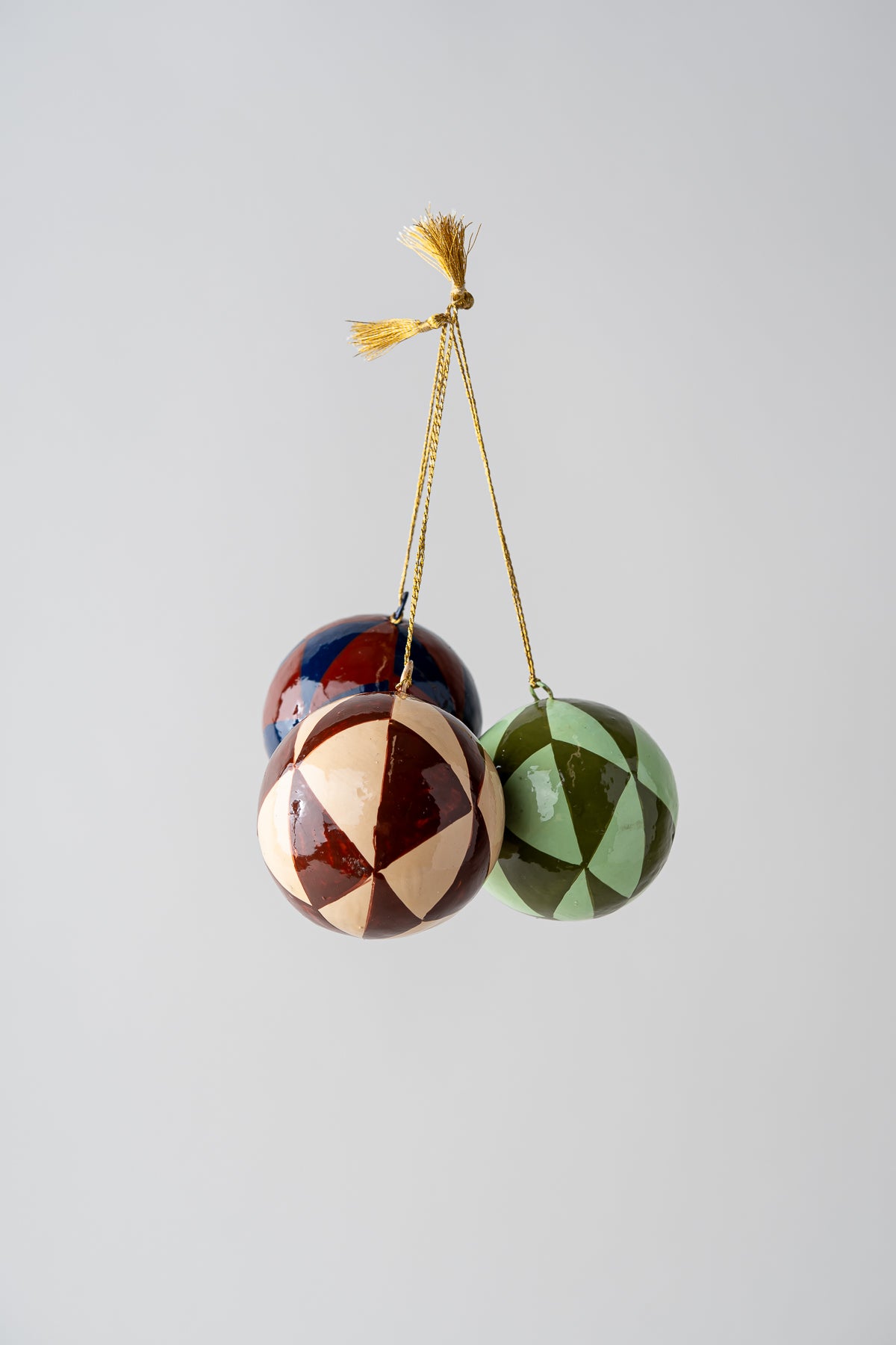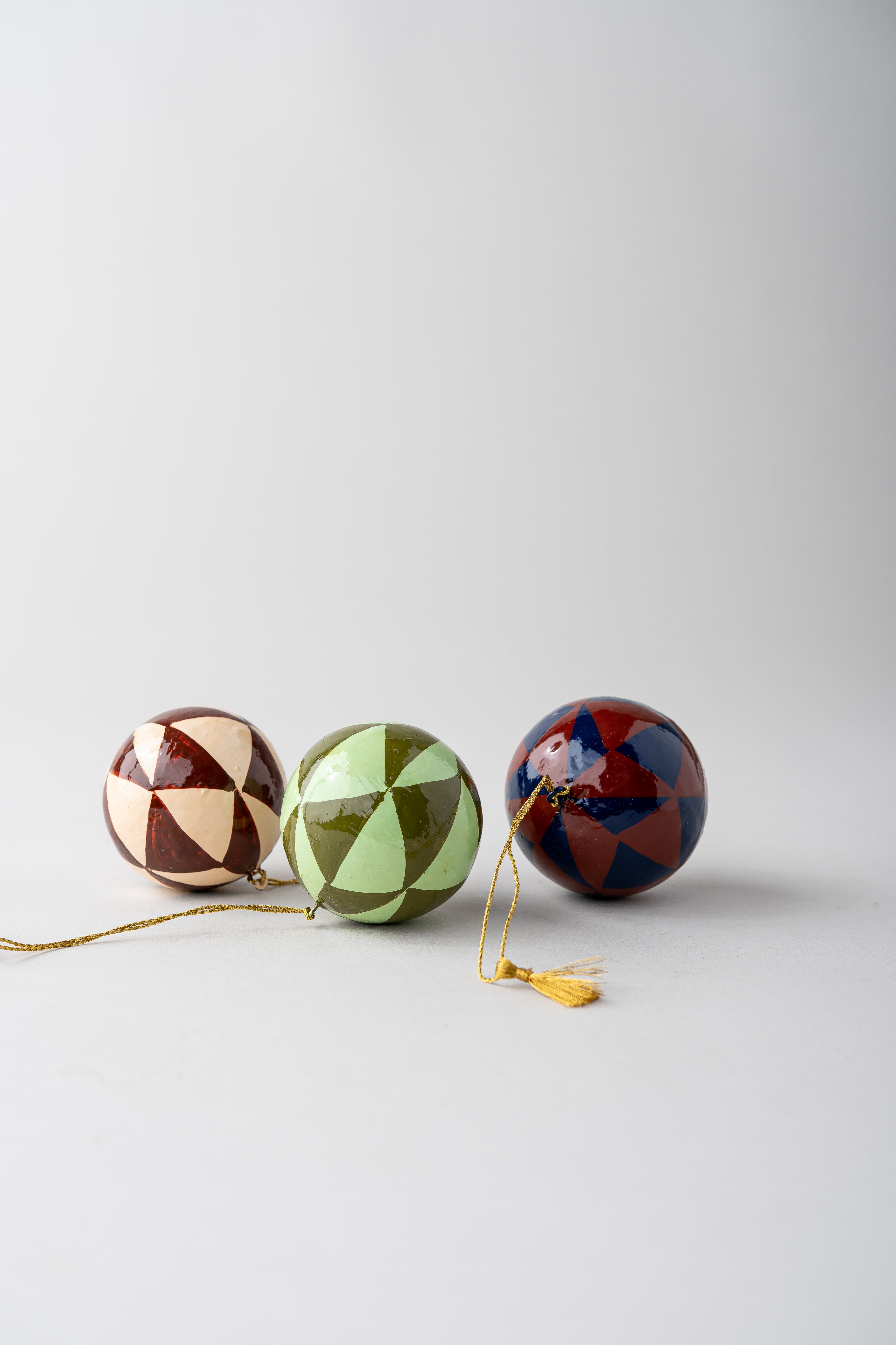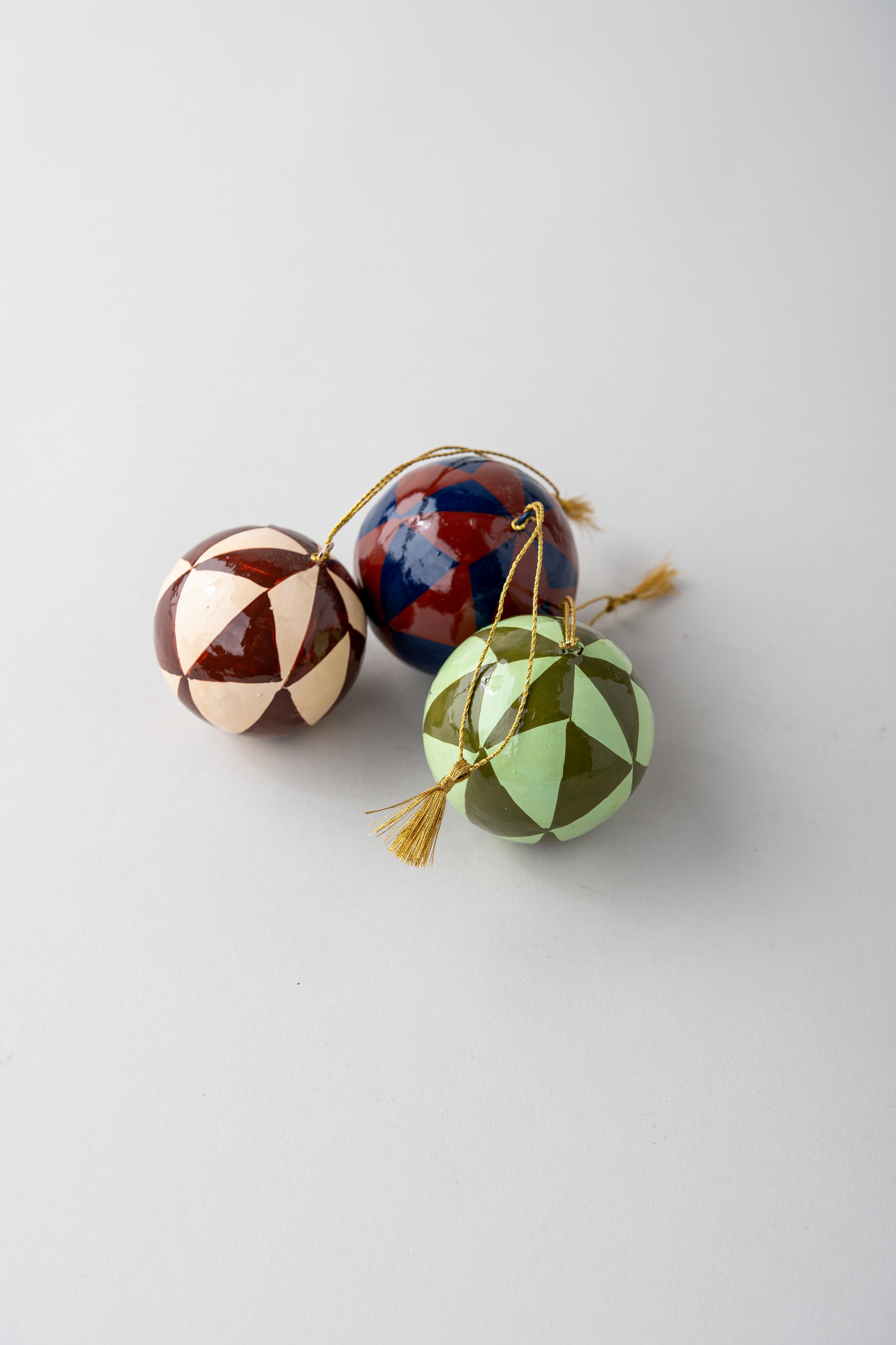 Handmade Papier Mache Christmas Baubles - set of 3
