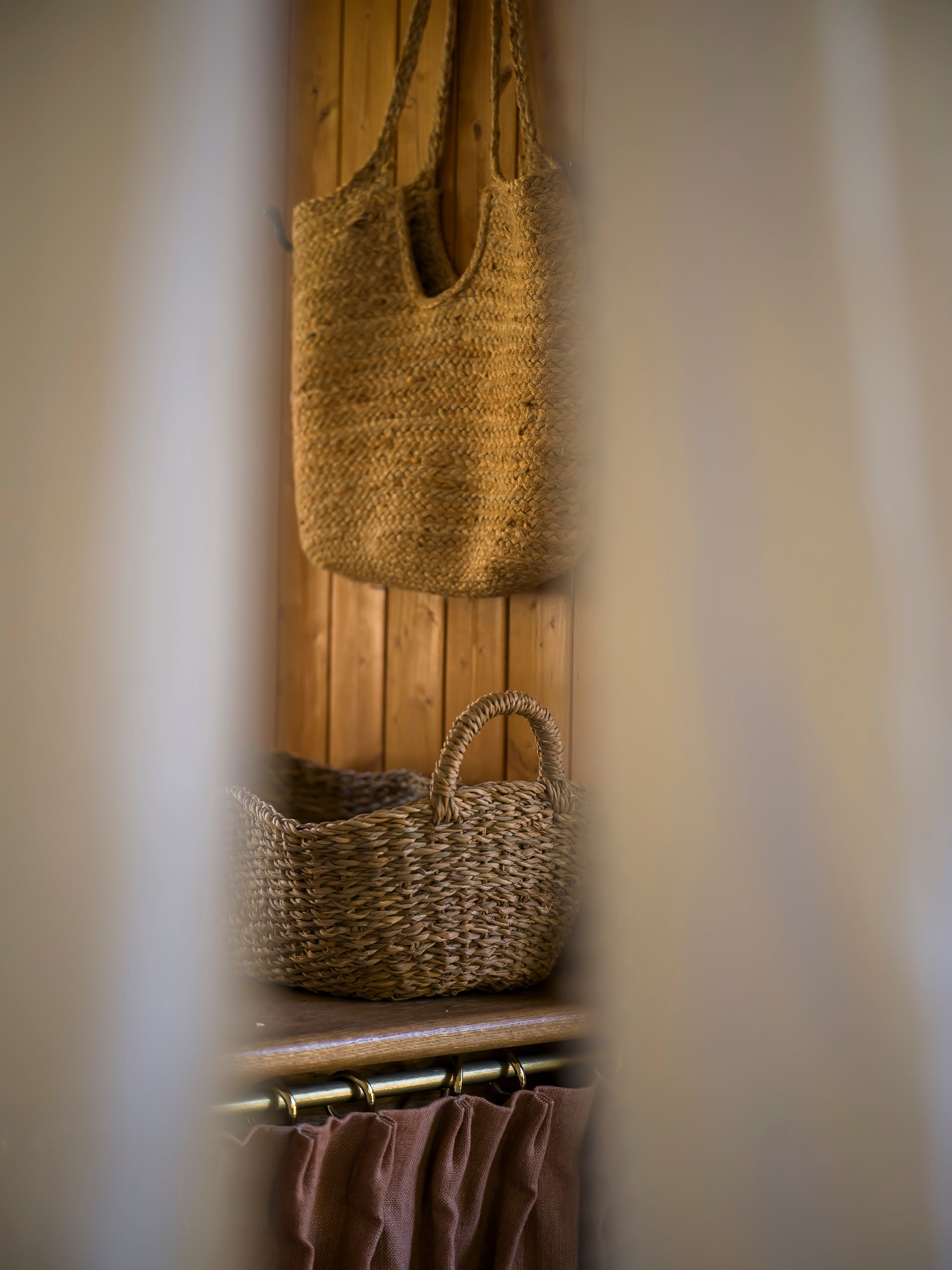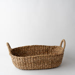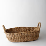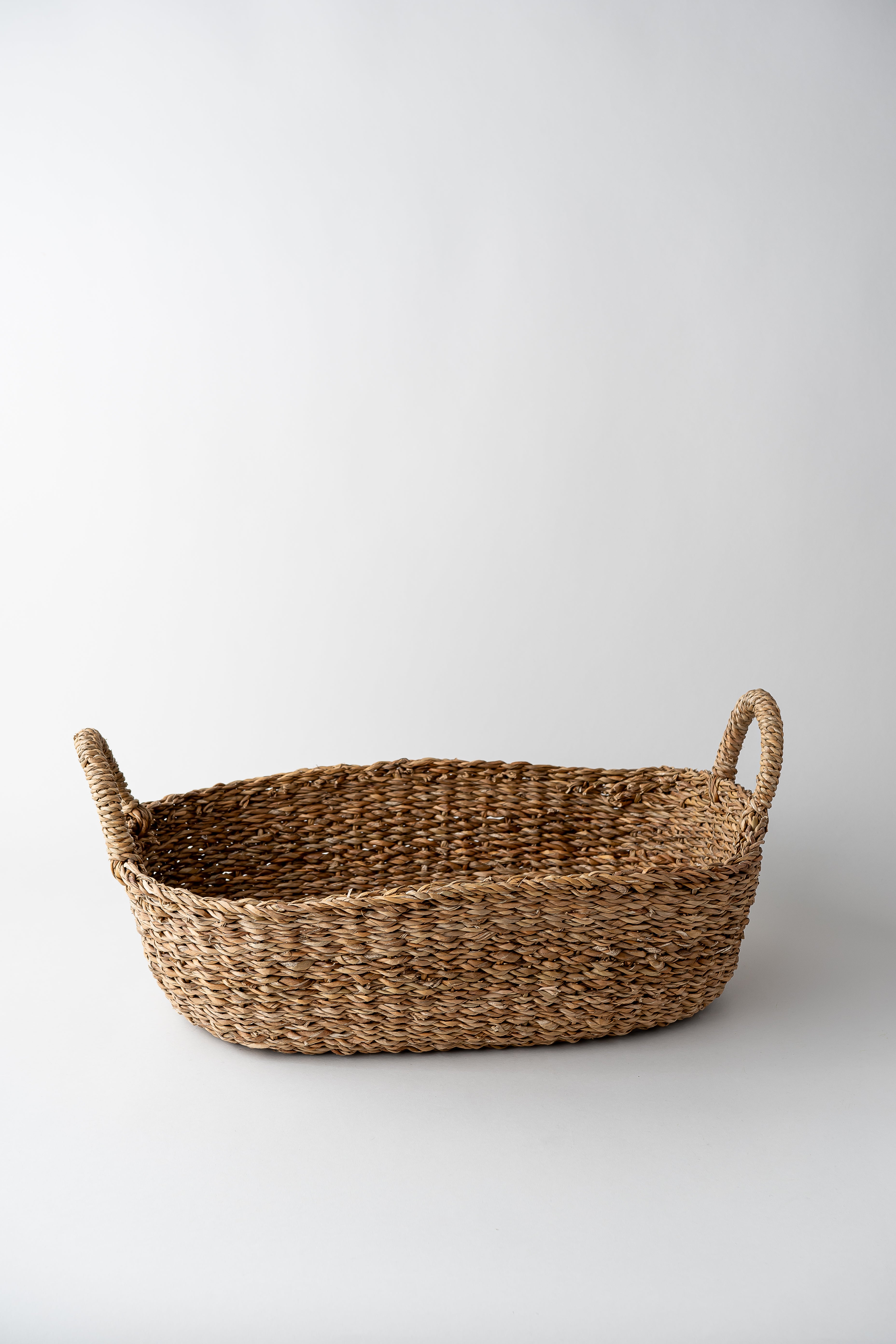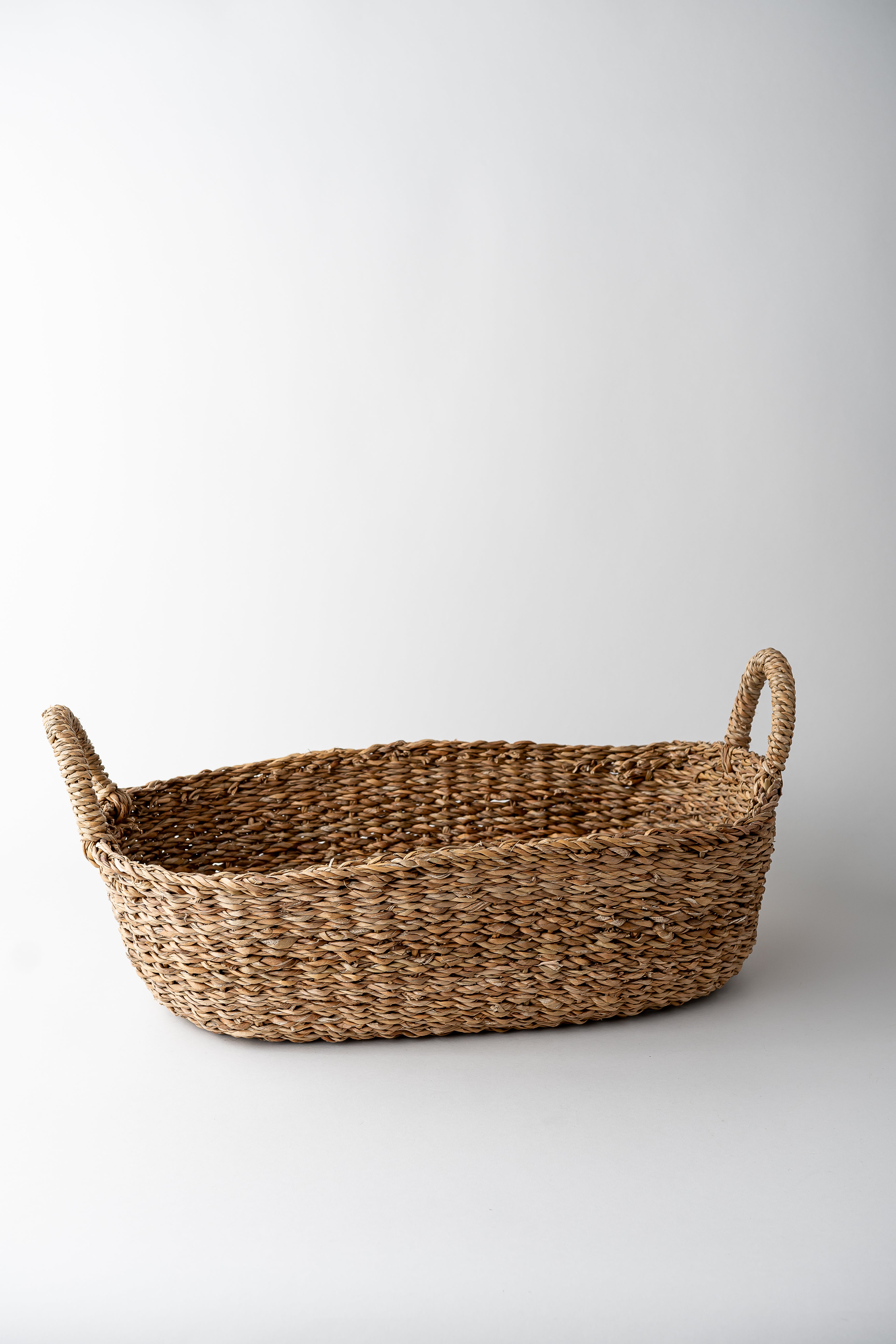 The baskets are handwoven with hogla grass, which is an aquatic plant. Like jute, hogla grass is knows for its durability and natural beauty. Each basket features double handles for easy carrying.