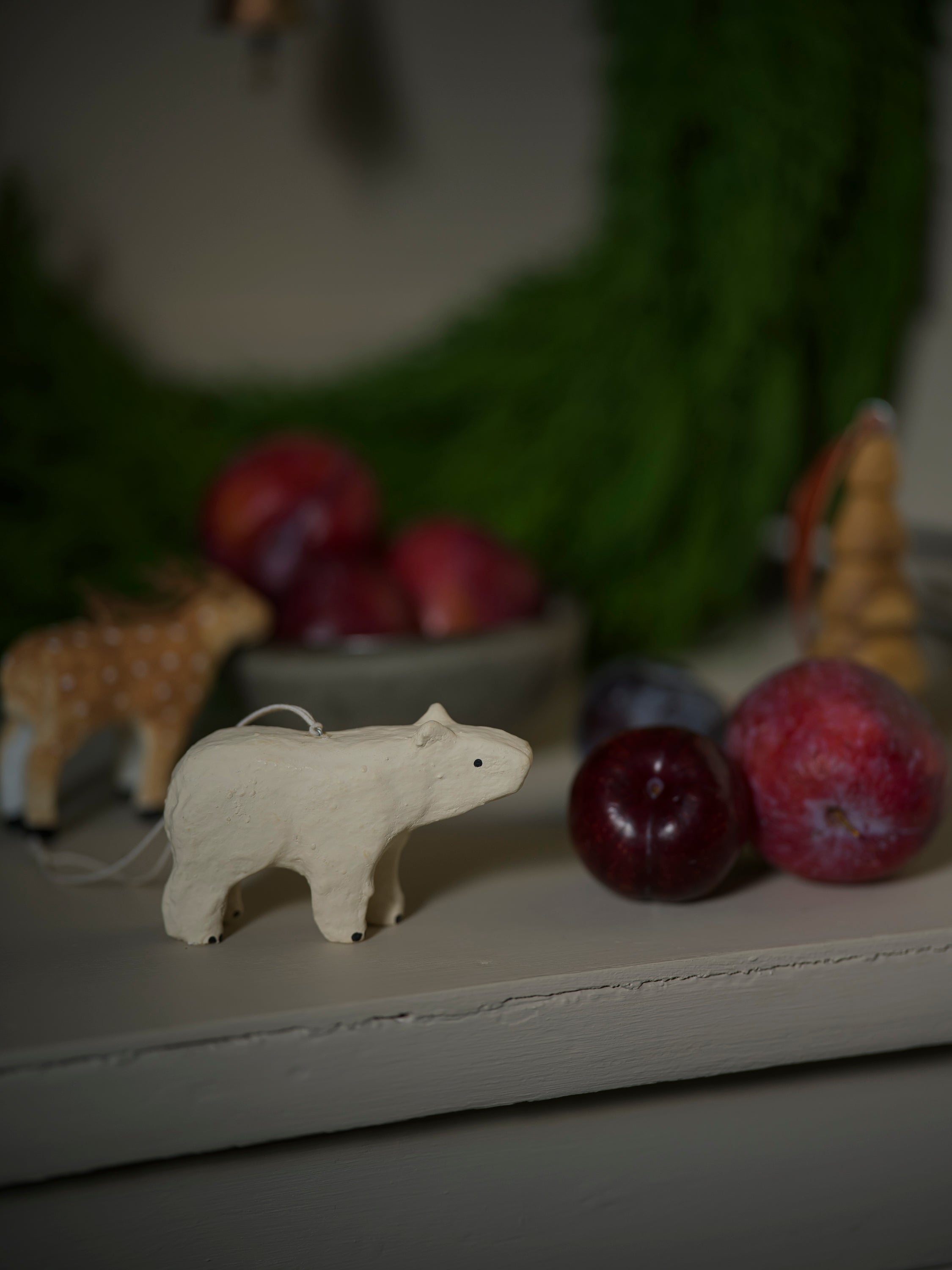 Papier mache animal ornaments, carefully shaped, layered, and painted by skilled artisans, using the age-old technique of papier mache, which is a traditional craft in Kashmir, India. These delightful creations bring a touch of joy and playfulness to any space.