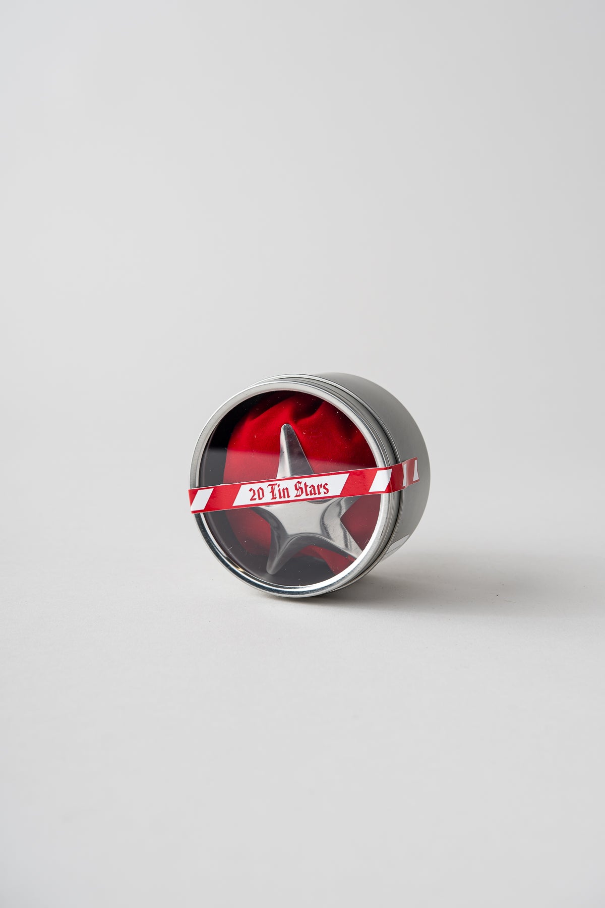 Each set comes with 20 tin stars with spiral hangers and a storage tin.