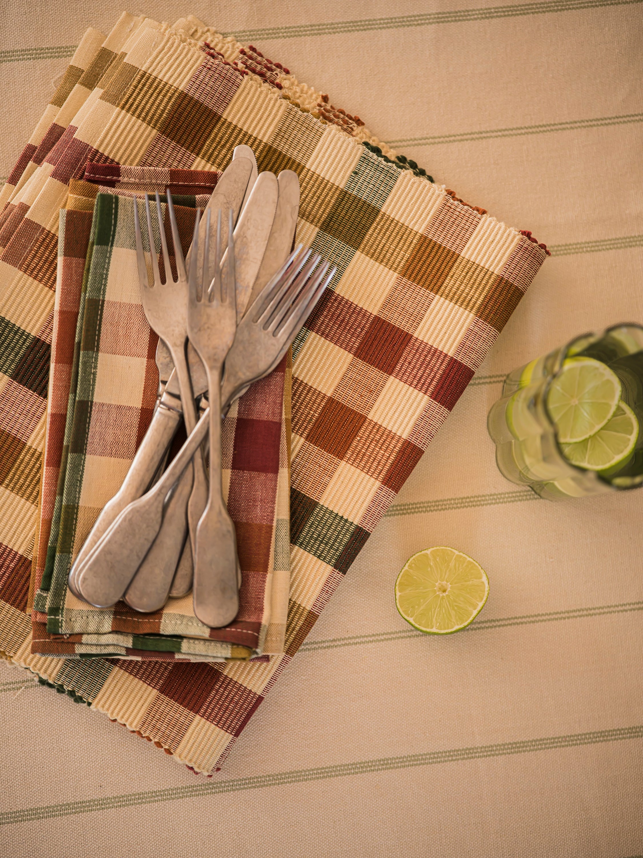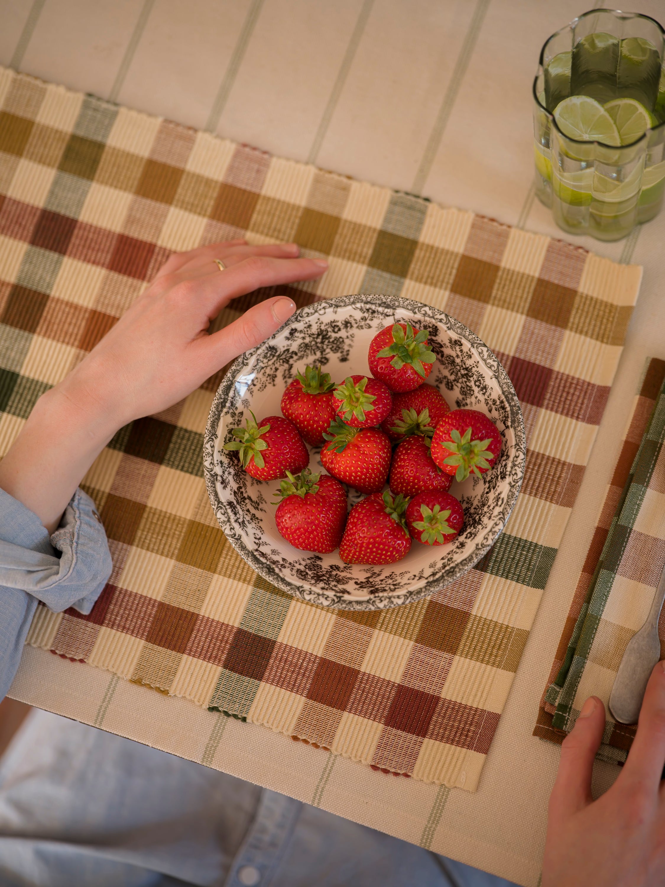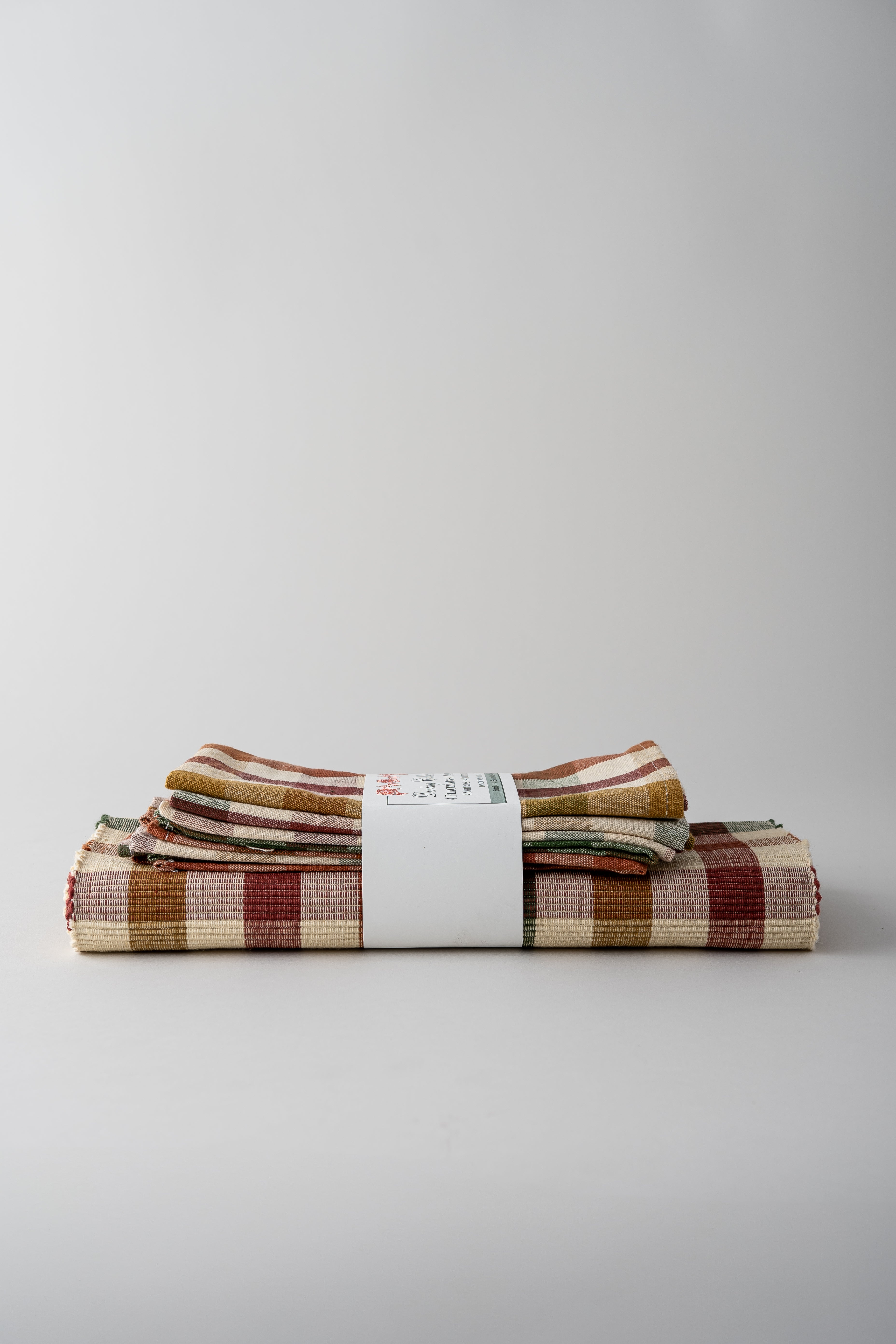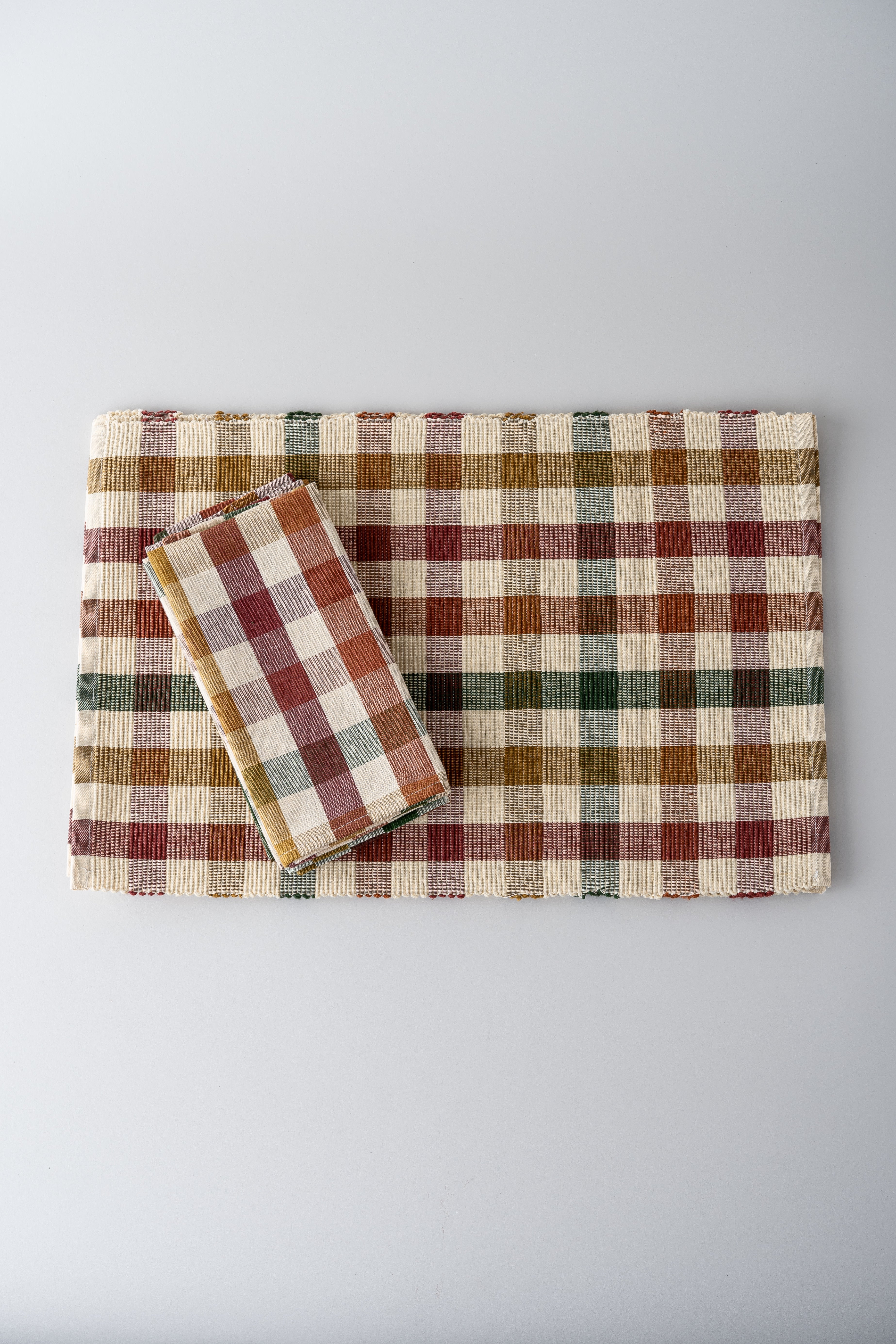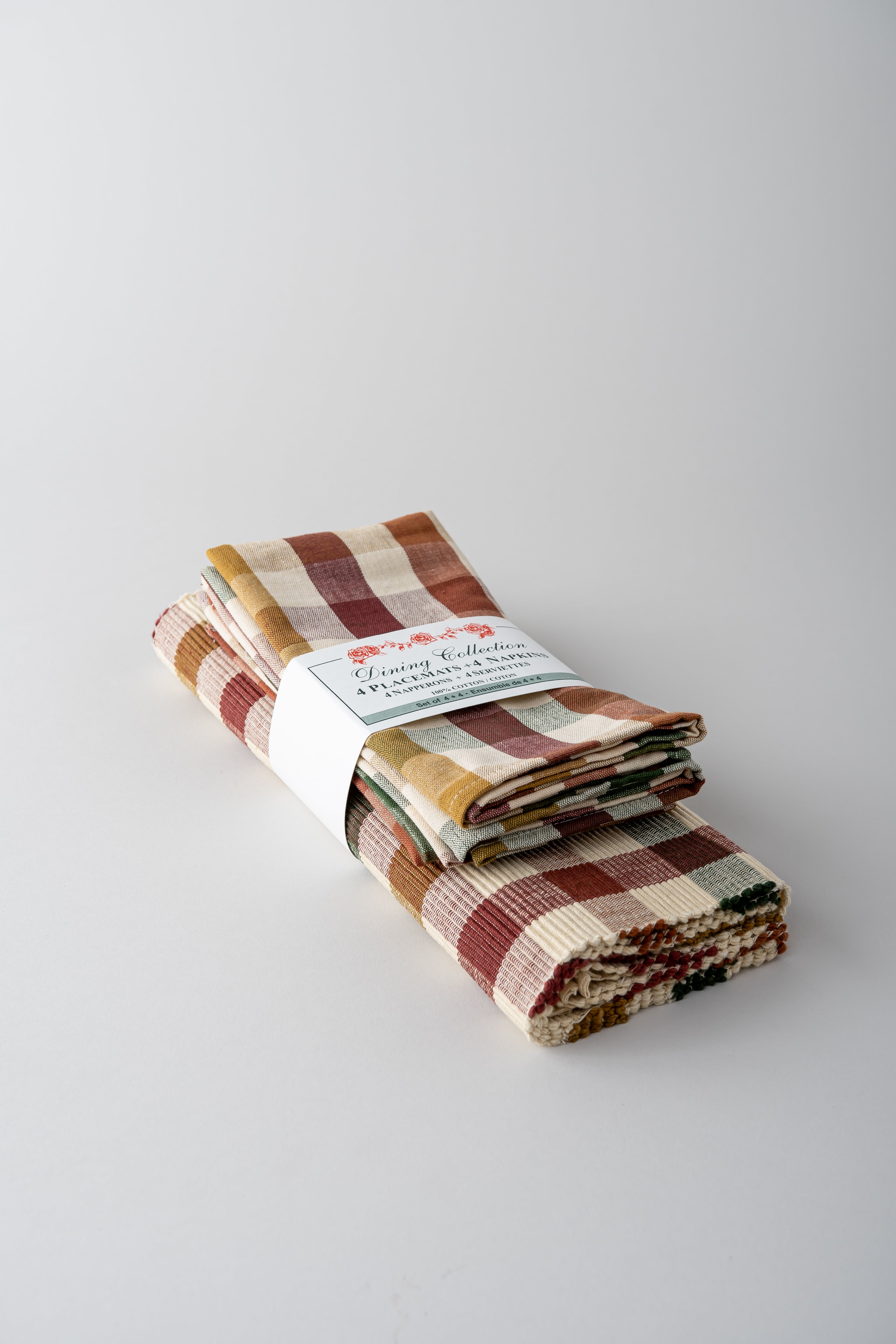 A study in thoughtful pattern and craftsmanship. This set of handwoven cotton placemats and napkins features a soft checked motif that brings structure and subtle visual interest to the table - elevating everyday dining with ease.