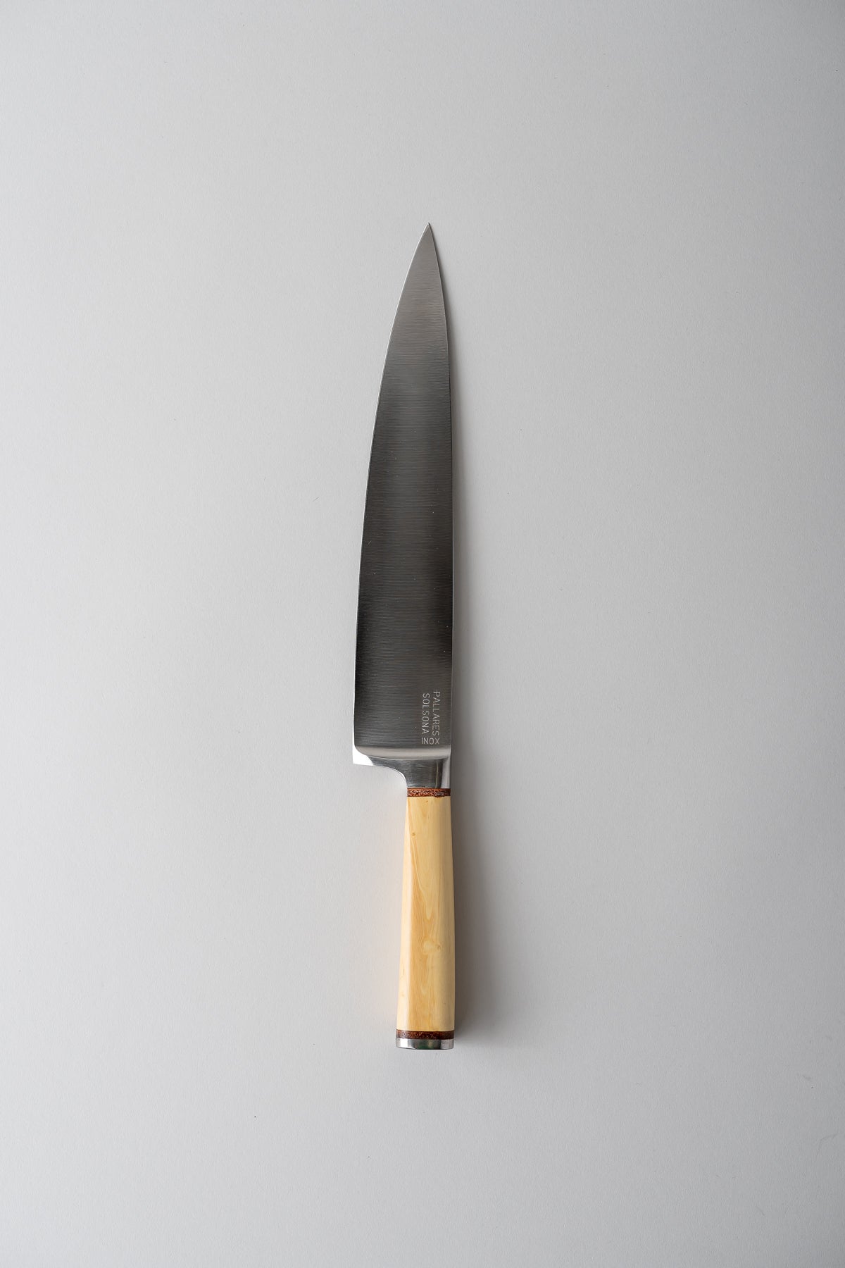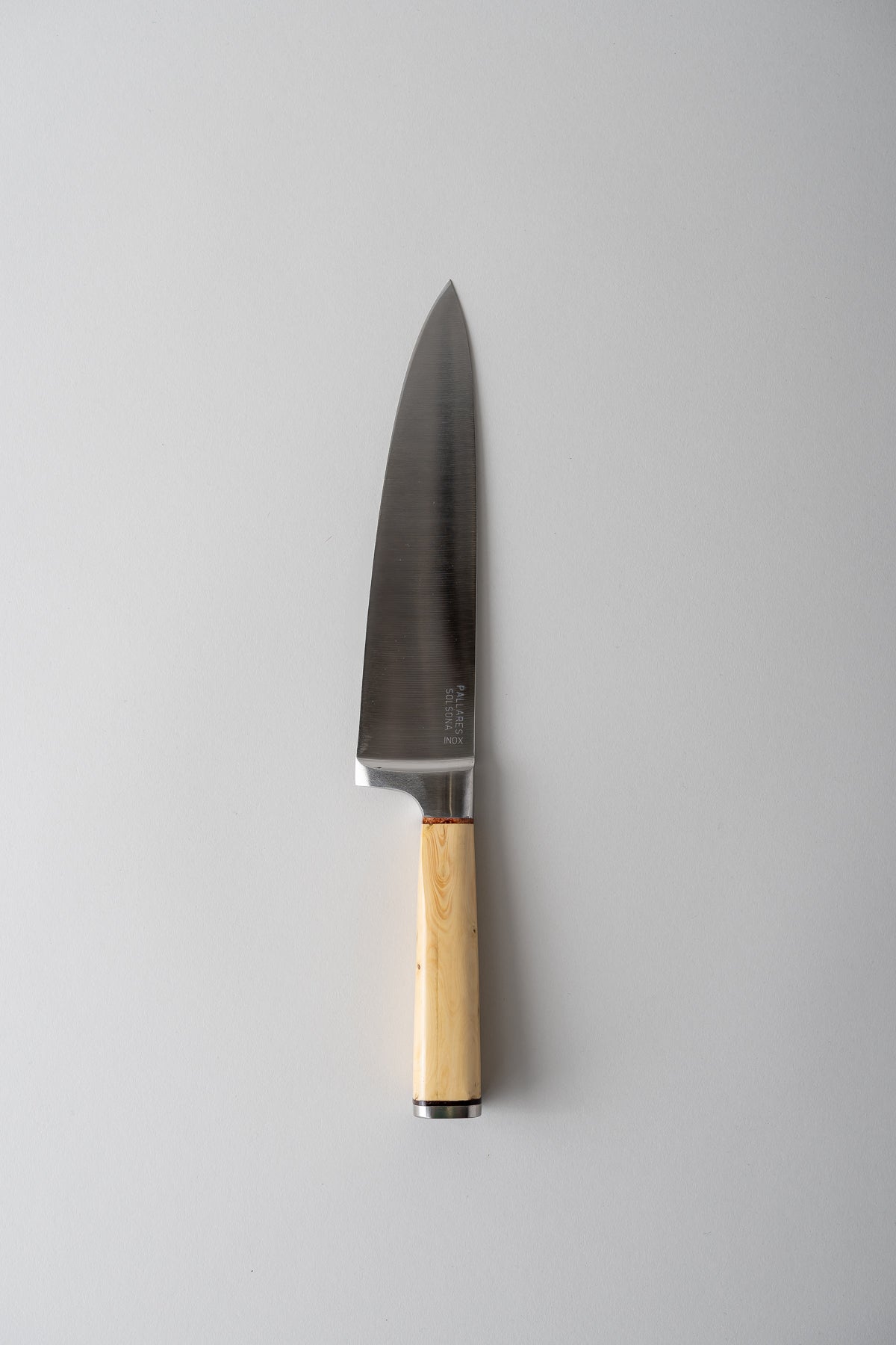 Every cook deserves a proper knife. This beautifully crafted chef's knife will become your new favourite for both big and small kitchen jobs. The sleek stainless steel blade and comfortable boxwood handle make it a breeze to cut into large items like watermelon and squash yet it can easily be used to chop fine herbs. Perfectly weighed and balanced, this is the essential kitchen tool that you will find yourself reaching for everyday.