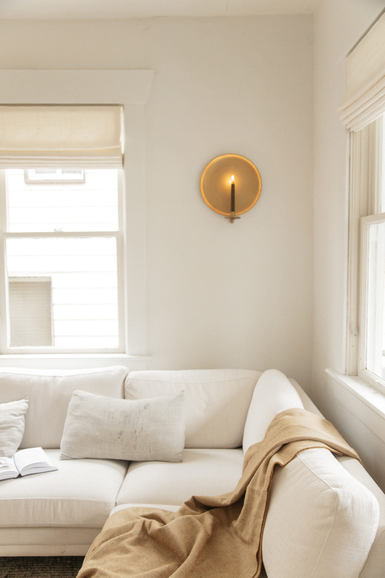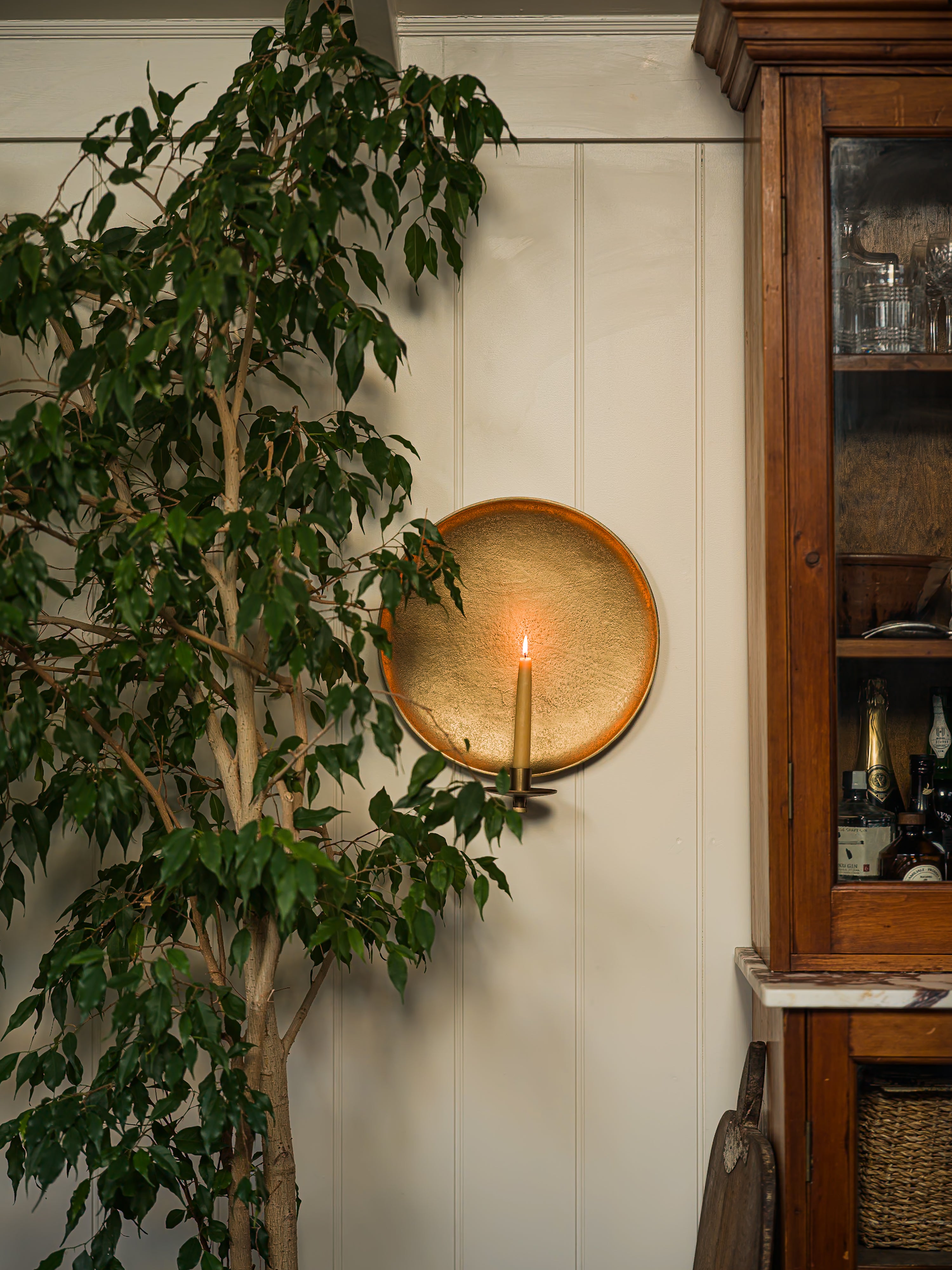 Nothing says cosy quite like the glow of candlelight. Take the glow up a notch this season with this reflective brass-plated candle sconce. Its minimalist construction is designed to beautifully reflect the flicker of candlelight off the warm brass surface creating an especially inviting atmosphere.