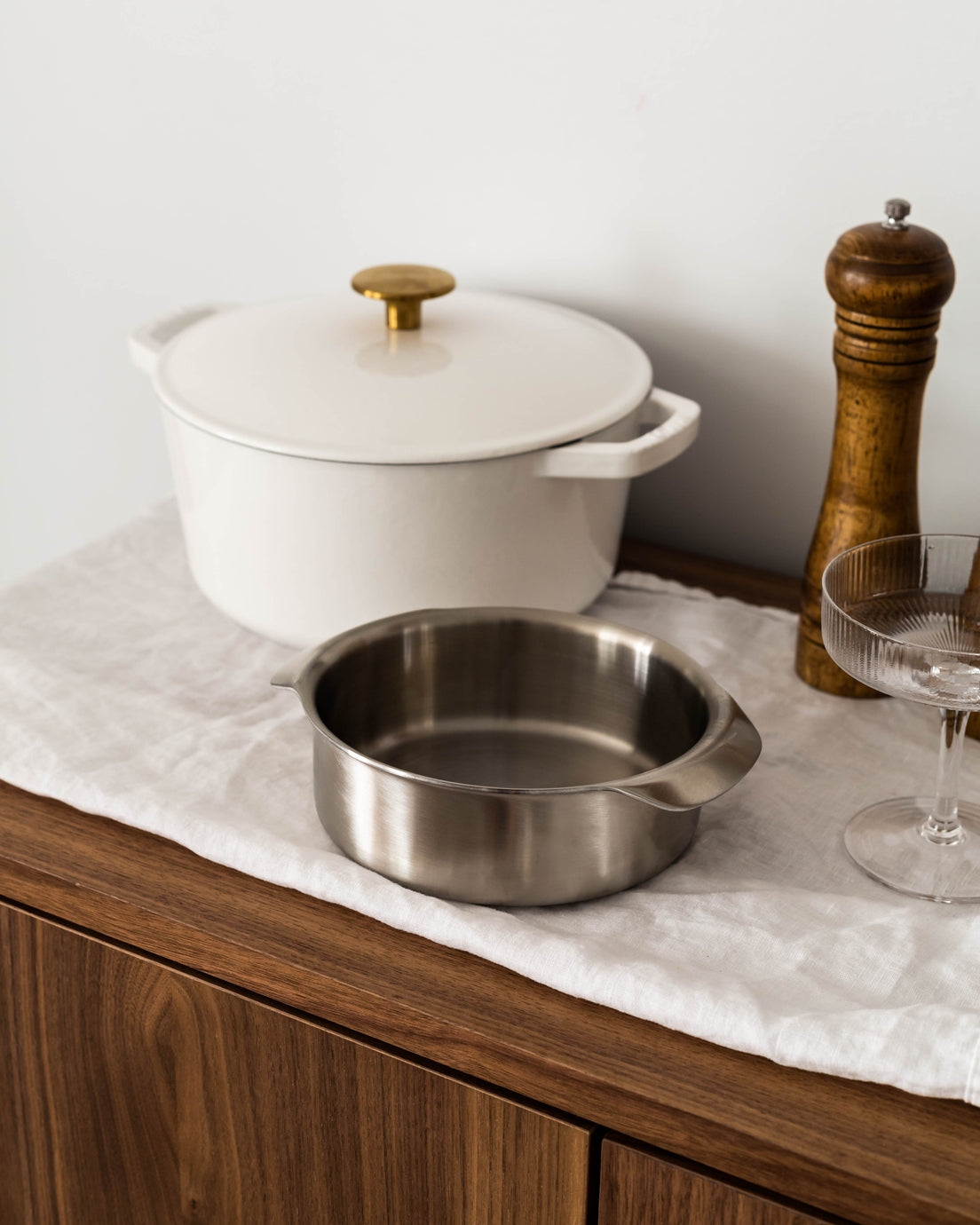 Crafted from tri-ply clad stainless steel, this bakeware offers exceptional durability and longevity, far surpassing non-stick-coated carbon steel alternatives. A timeless piece for your kitchen that’s built to stand the test of time.