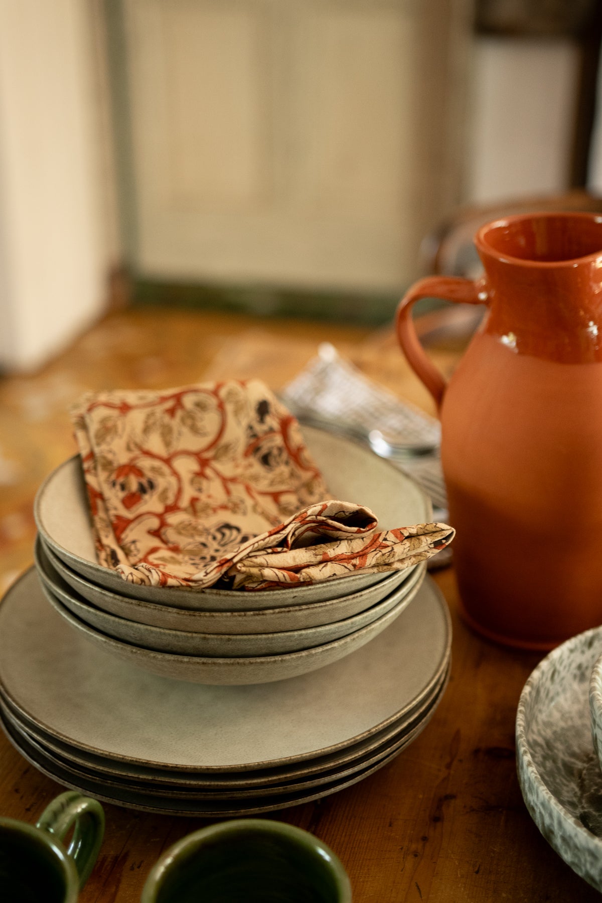 Bonjour, Bon; a dashing stoneware collection hand thrown in Portugal. Each piece is glazed with a matte finish, featuring unique tones of silver, grey, and near white. No two are perfectly alike, a keen reminder of the artistic sensibility behind the collection.