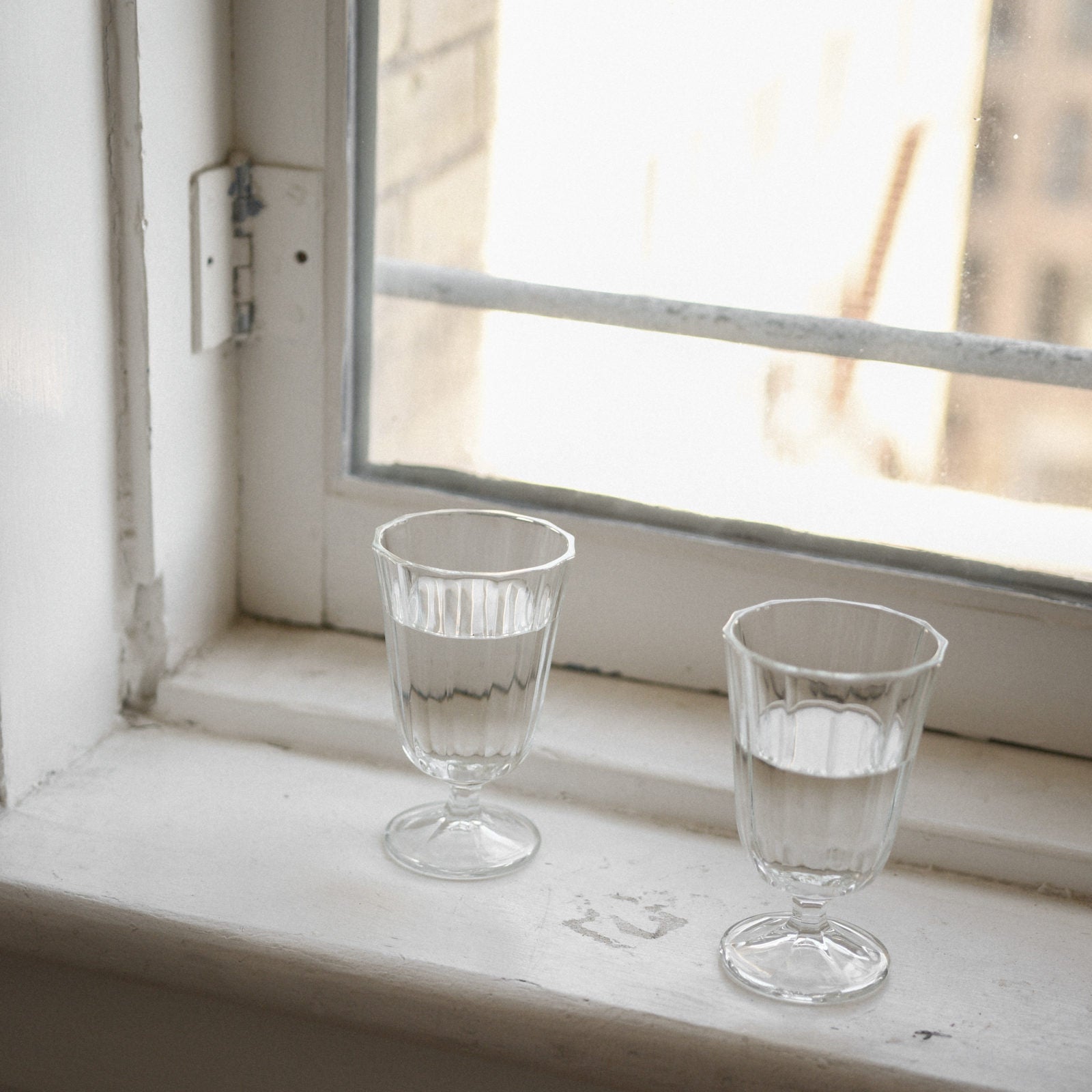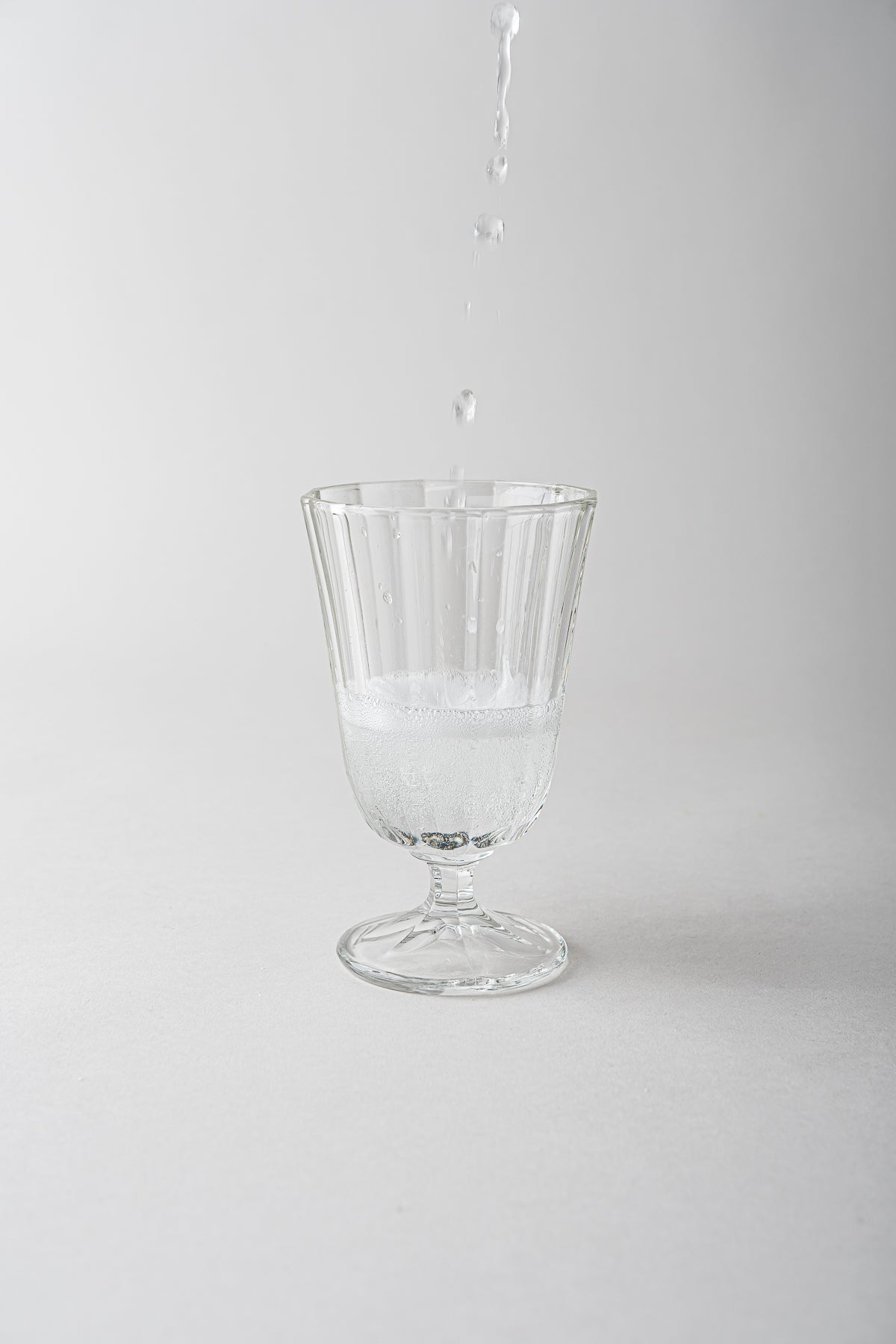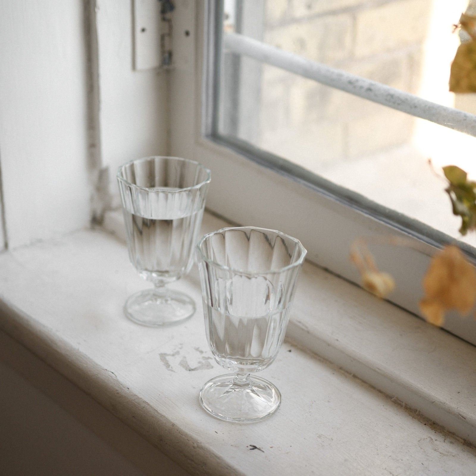 Faceted short stemmed water glass or preferable for those who enjoy a more generous glass of vino. The glass has a sturdy, cafe/bistro glassware feel, making it a durable choice for every day use.