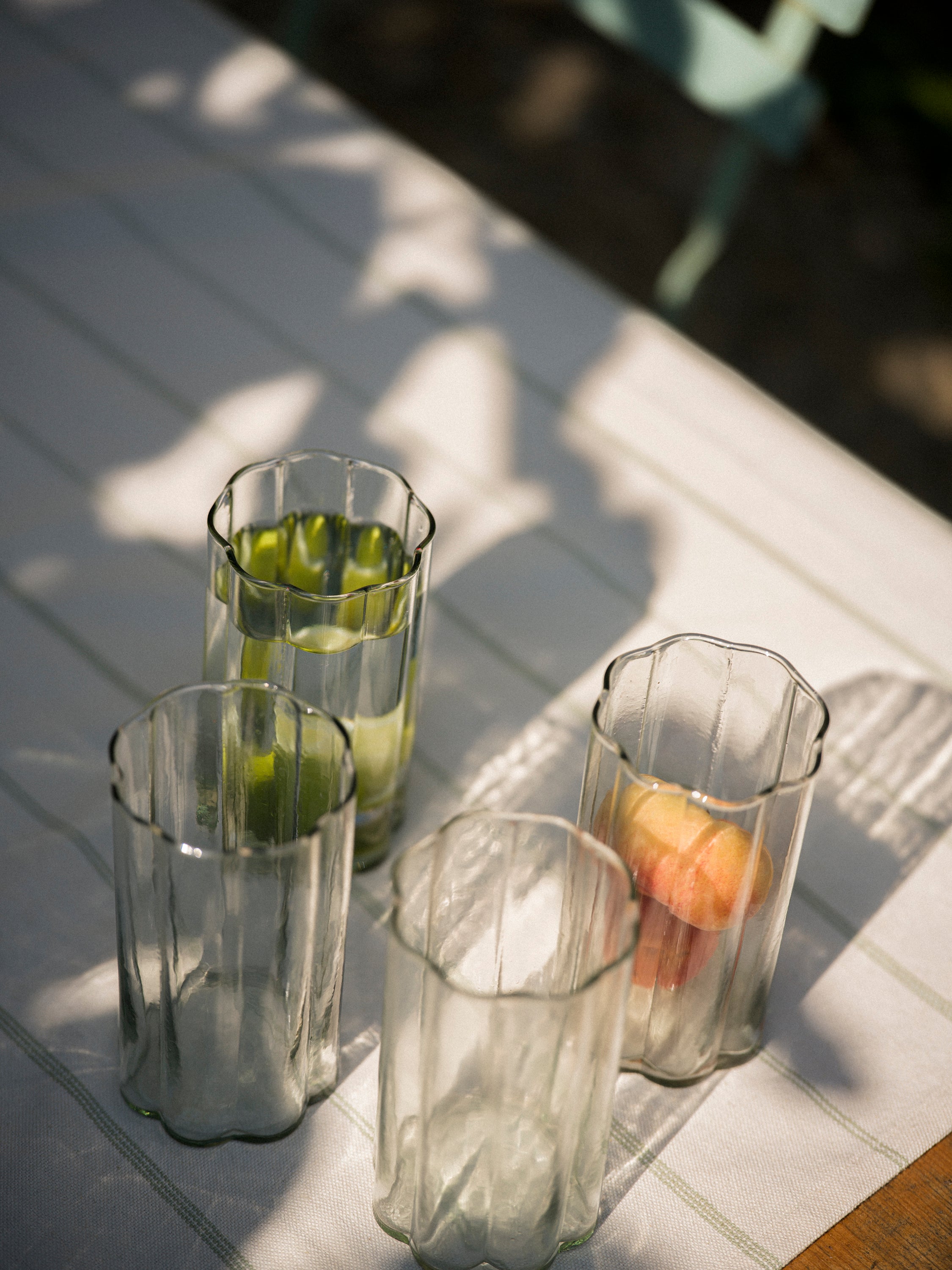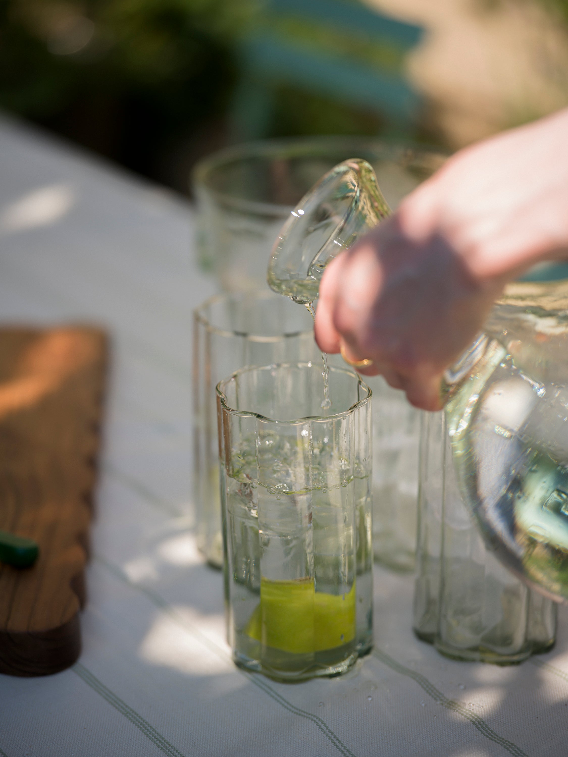 A classic, made clear. This glass drinking vessel is simple yet fun, provides character yet is quietly elegant - crafted for clarity, weight, and everyday use. Whether set at the kitchen table or laid out for something more formal, it lends itself easily to any occasion. A foundational piece for the cupboard or bar.