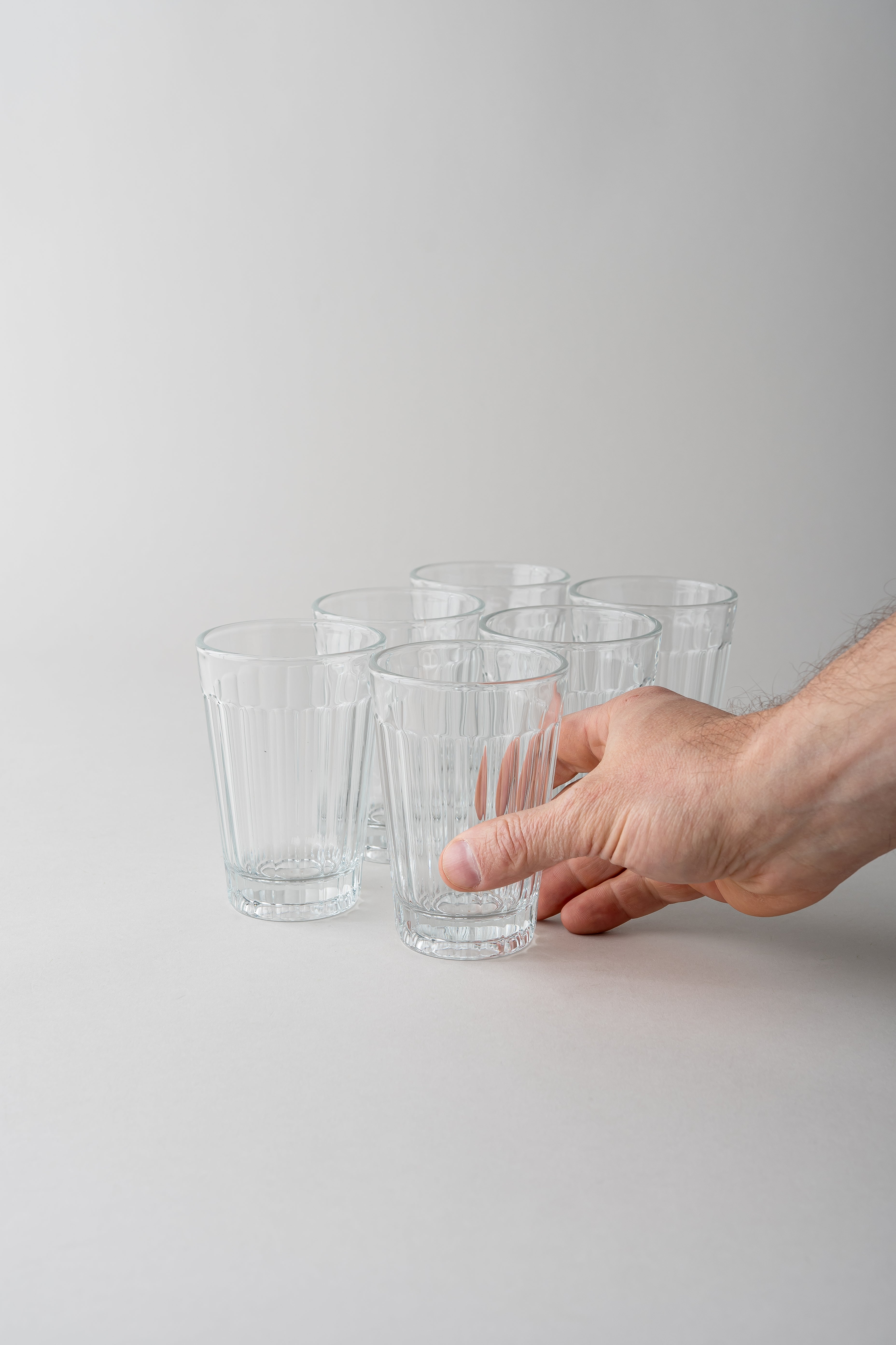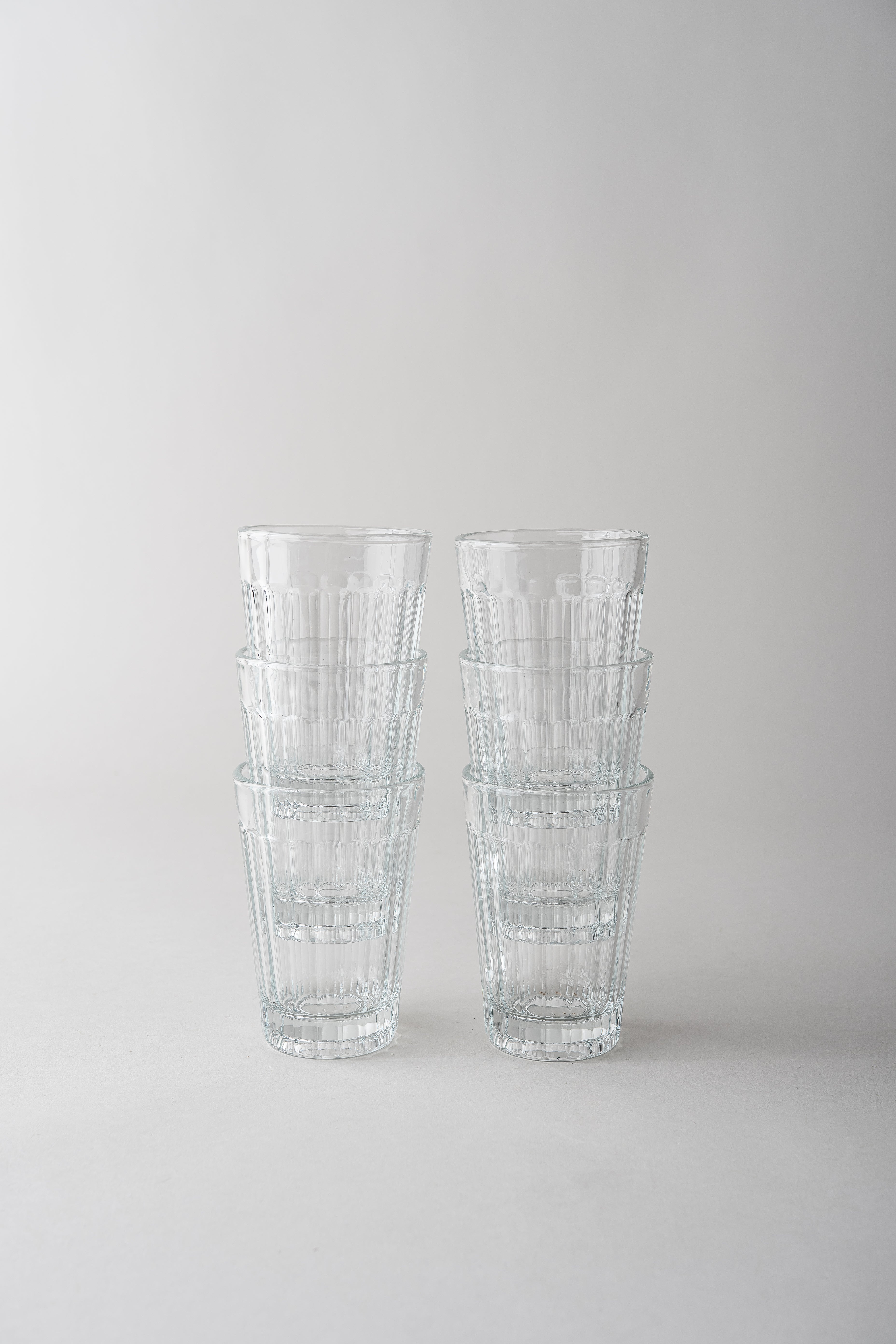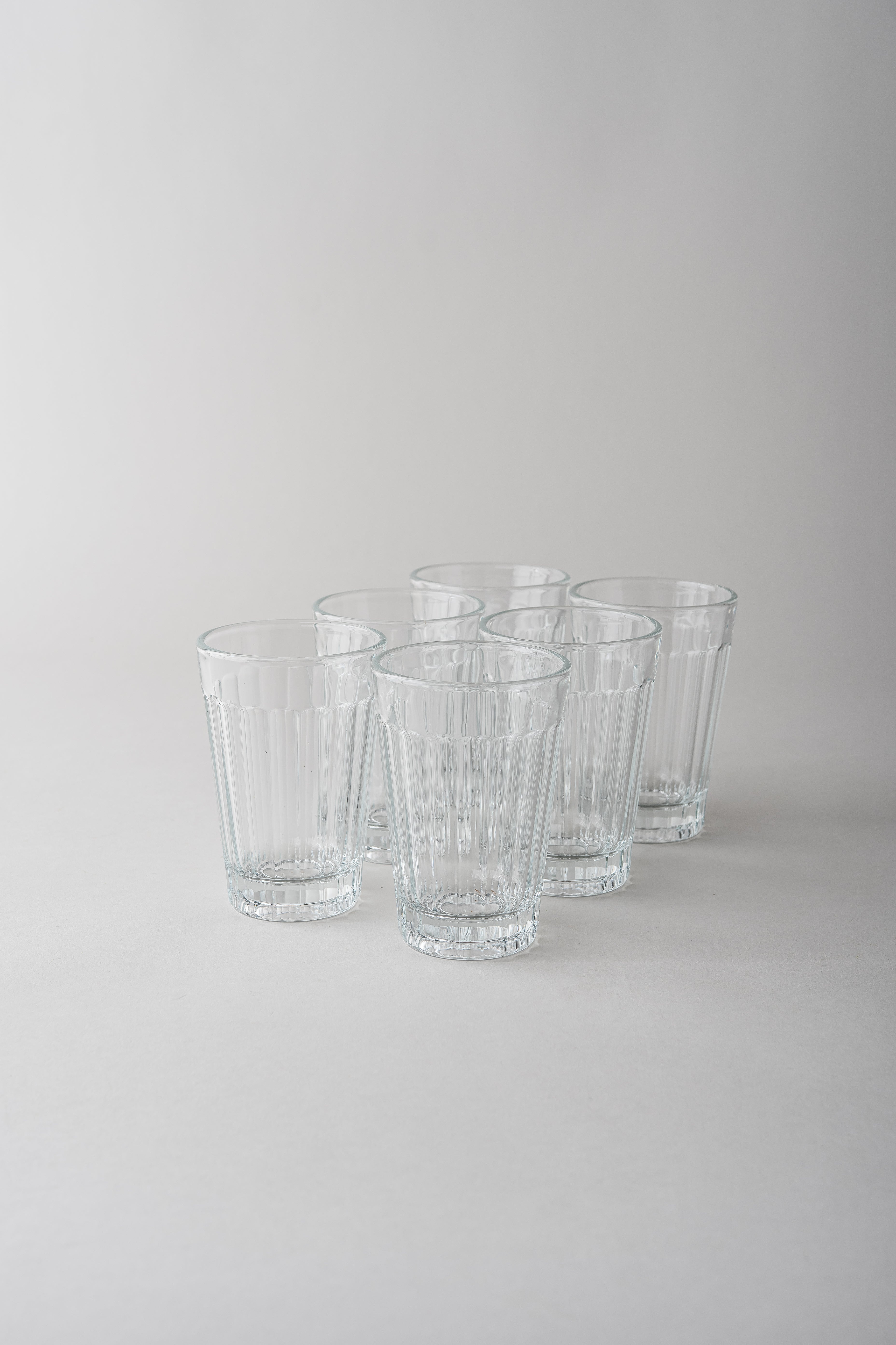 Thick walled fluted glass. This European bistro feel glassware is a perfect everyday glass. The small is great for espresso or shots whilst the large size is suitable for general drinks.