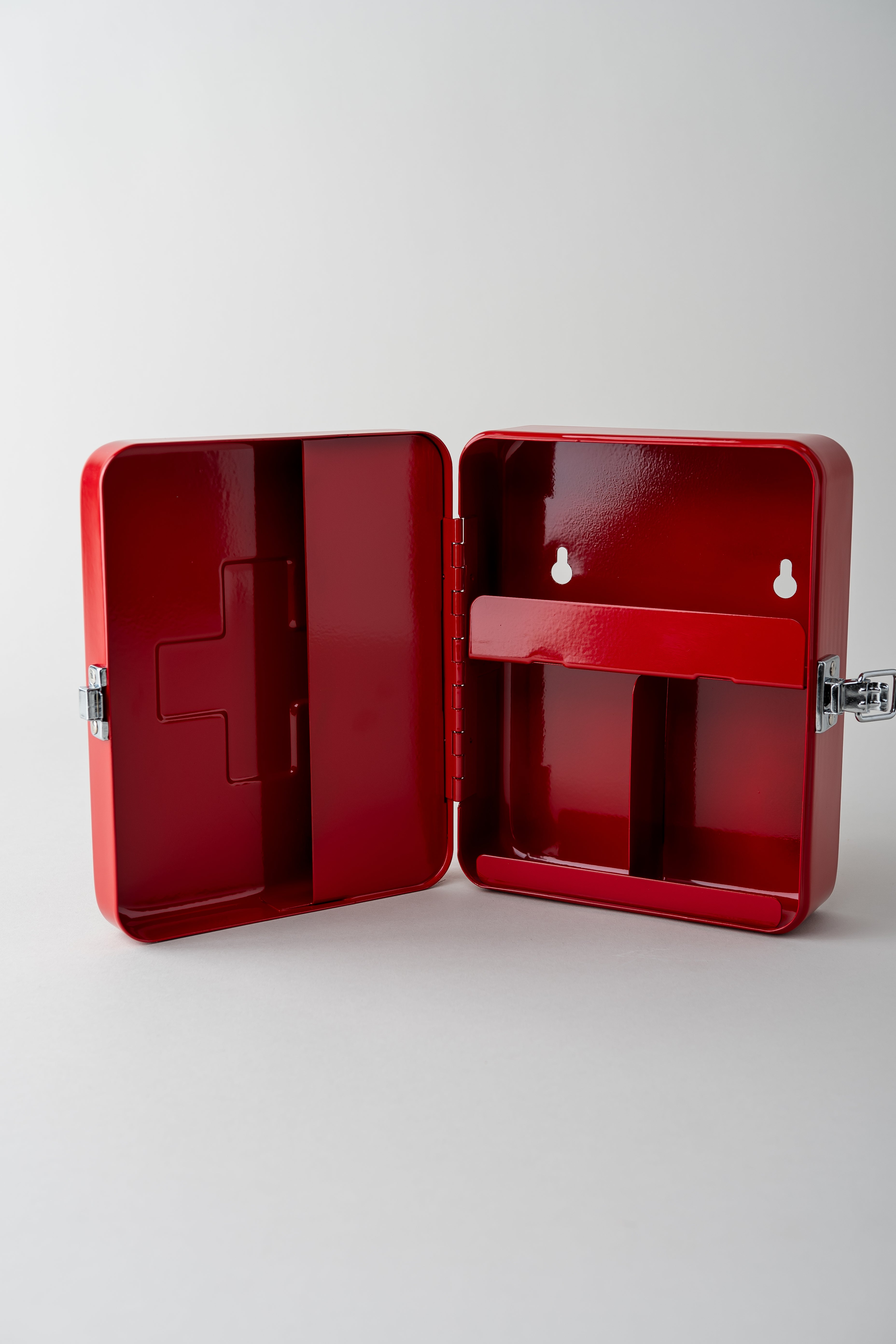 A practical household essential, so thoughtfully designed you may not even feel the need to tuck it away. This sleek enamelled first aid box keeps necessities organized and close at hand - ready for life's little bumps and scrapes.
