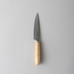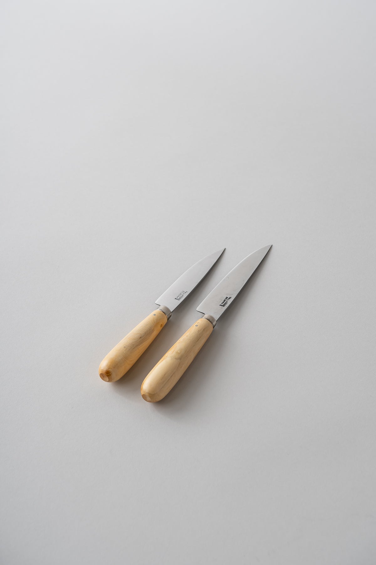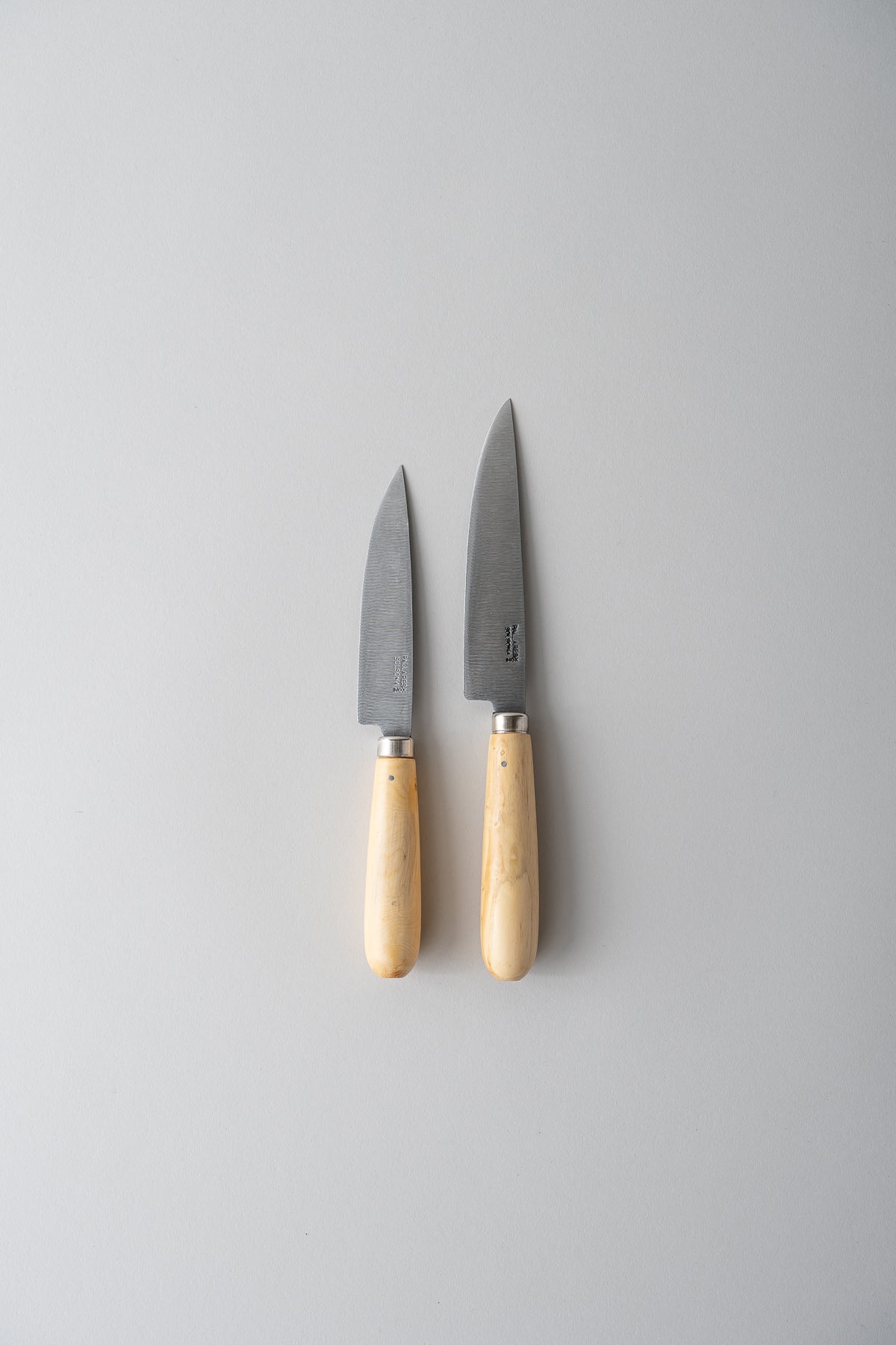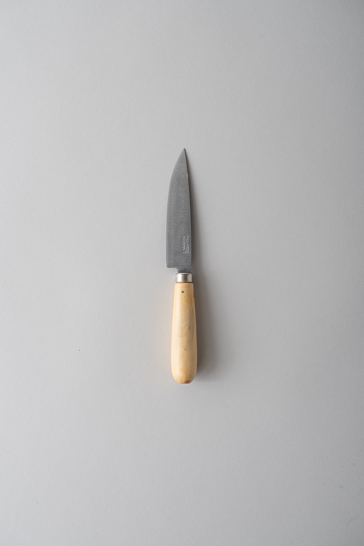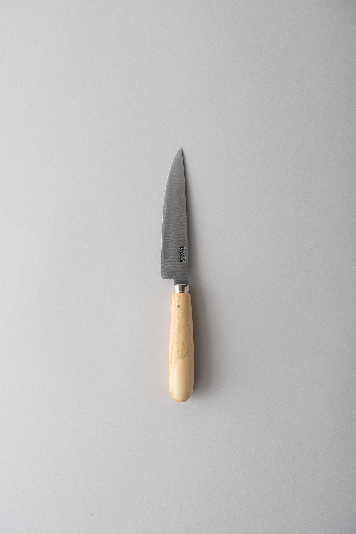 Thanks to its stainless steel blade, this kitchen knife is both useful and easy to care for. Unlike our carbon steel knives, these stainless steel blades will not tarnish and will not develop a patina over time. An excellent choice for everyday kitchen cutting jobs and charming enough to accompany a cheese board.