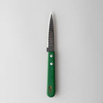 A small but mighty kitchen essential, expertly designed by Jean Dubost. This paring knife features a serrated stainless steel blade and a smooth beechwood handle, finished in a rich green tone. Lightweight, balanced, and designed for precision - perfect for tasks that require a bit of precision, like slicing through soft fruits, vegetables with slippery skins, or delicate pastries and baked goods.