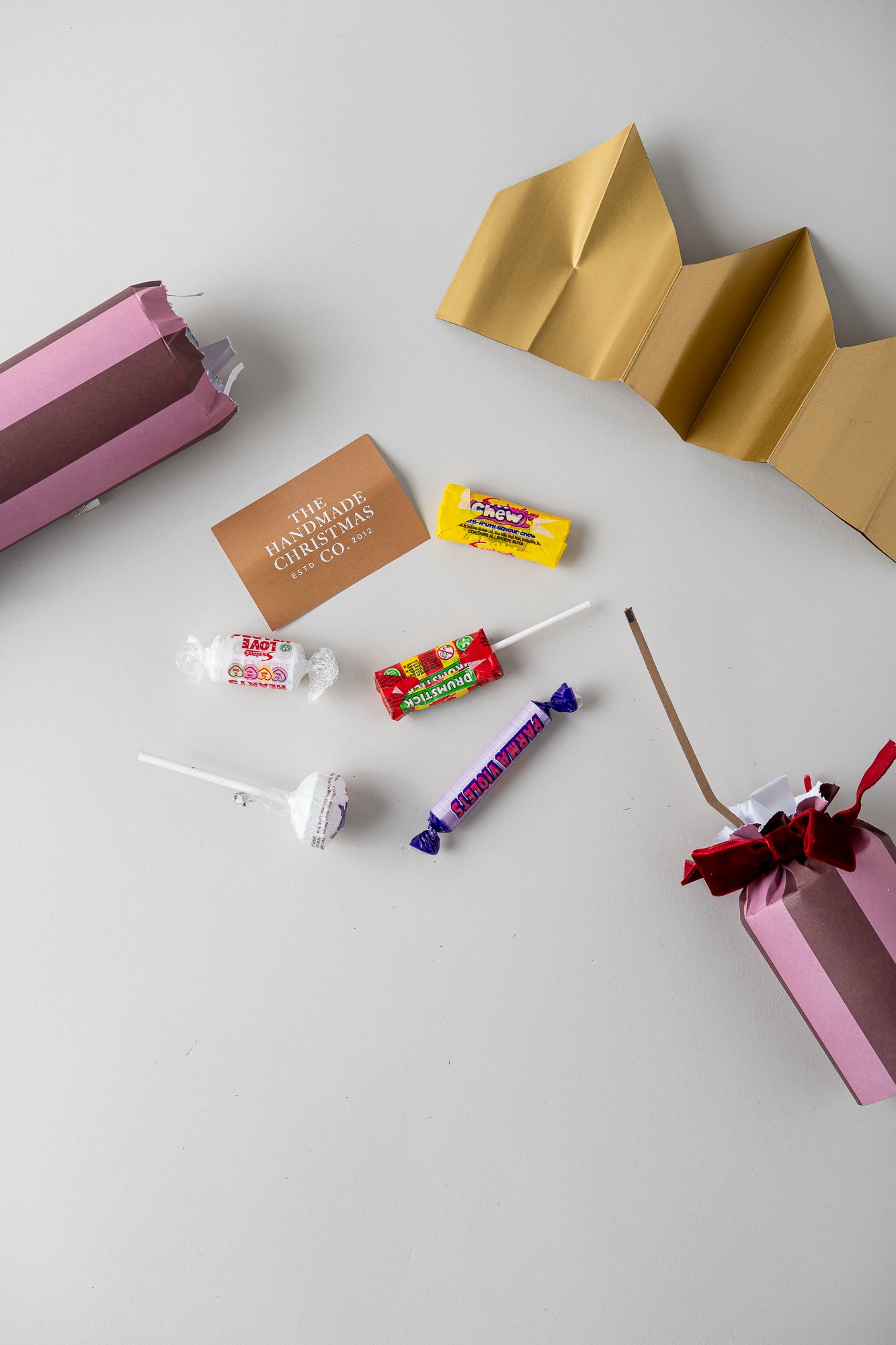 Each cracker contains a selection of retro treats, along with the quintessential snap, paper hat, and joke.