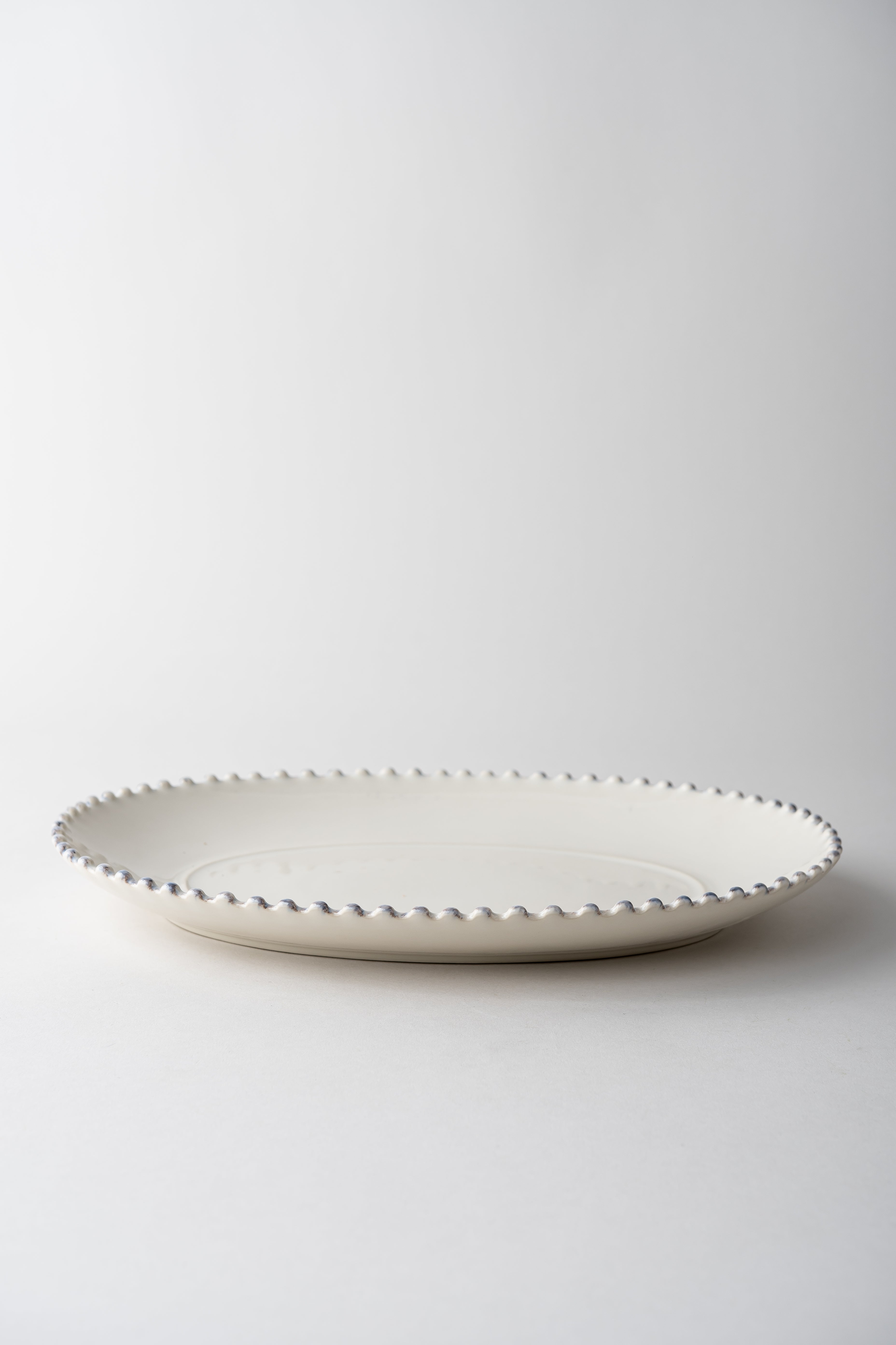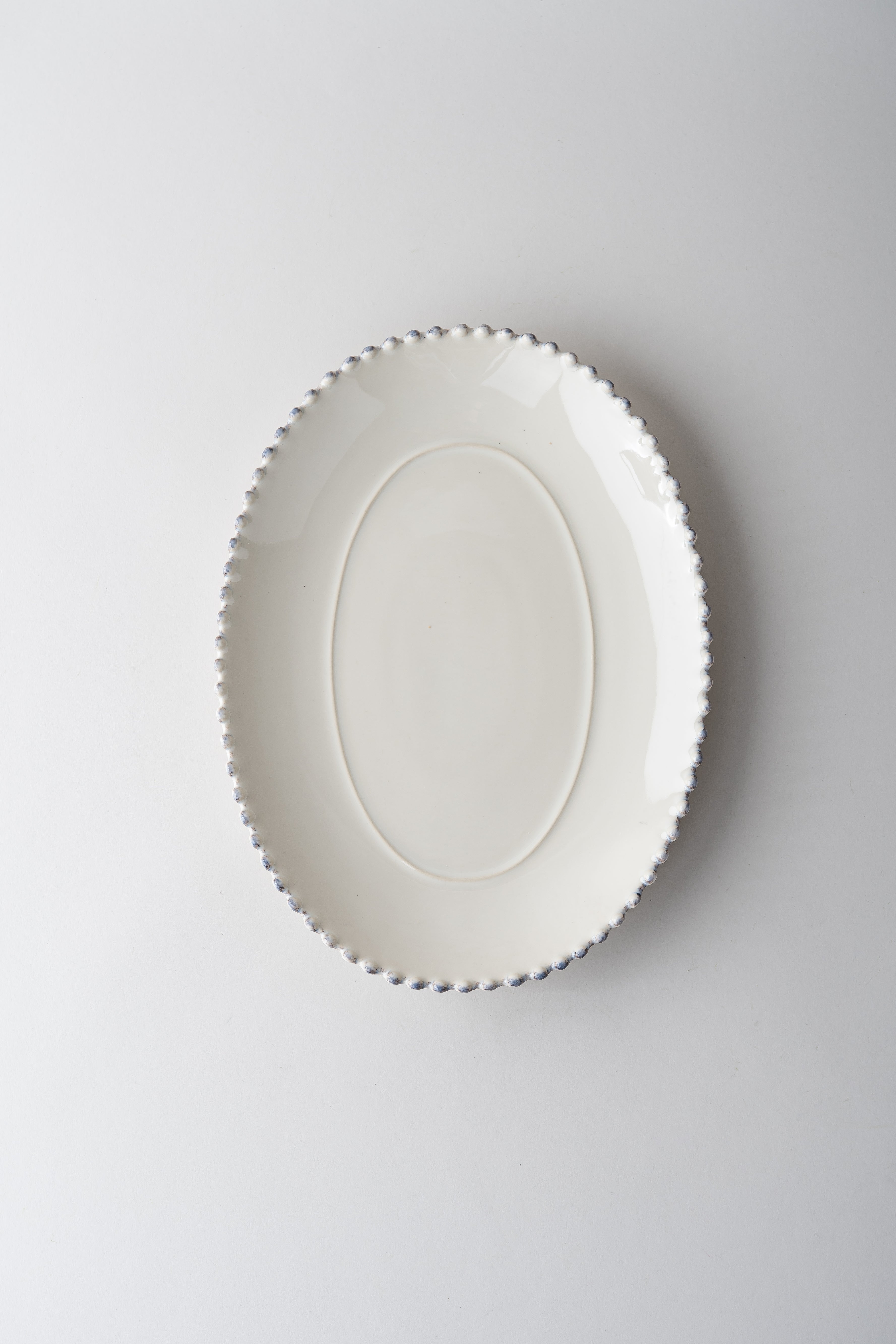 Exuding charm, elegance, and simplicity, the vintage-inspired Pearl dinnerware collection is a nod to classical European ceramics while staying firmly rooted on a contemporary table. Small ceramic drops inspired by freshwater pearls outline the edges of each piece, providing a delicately striking appeal.