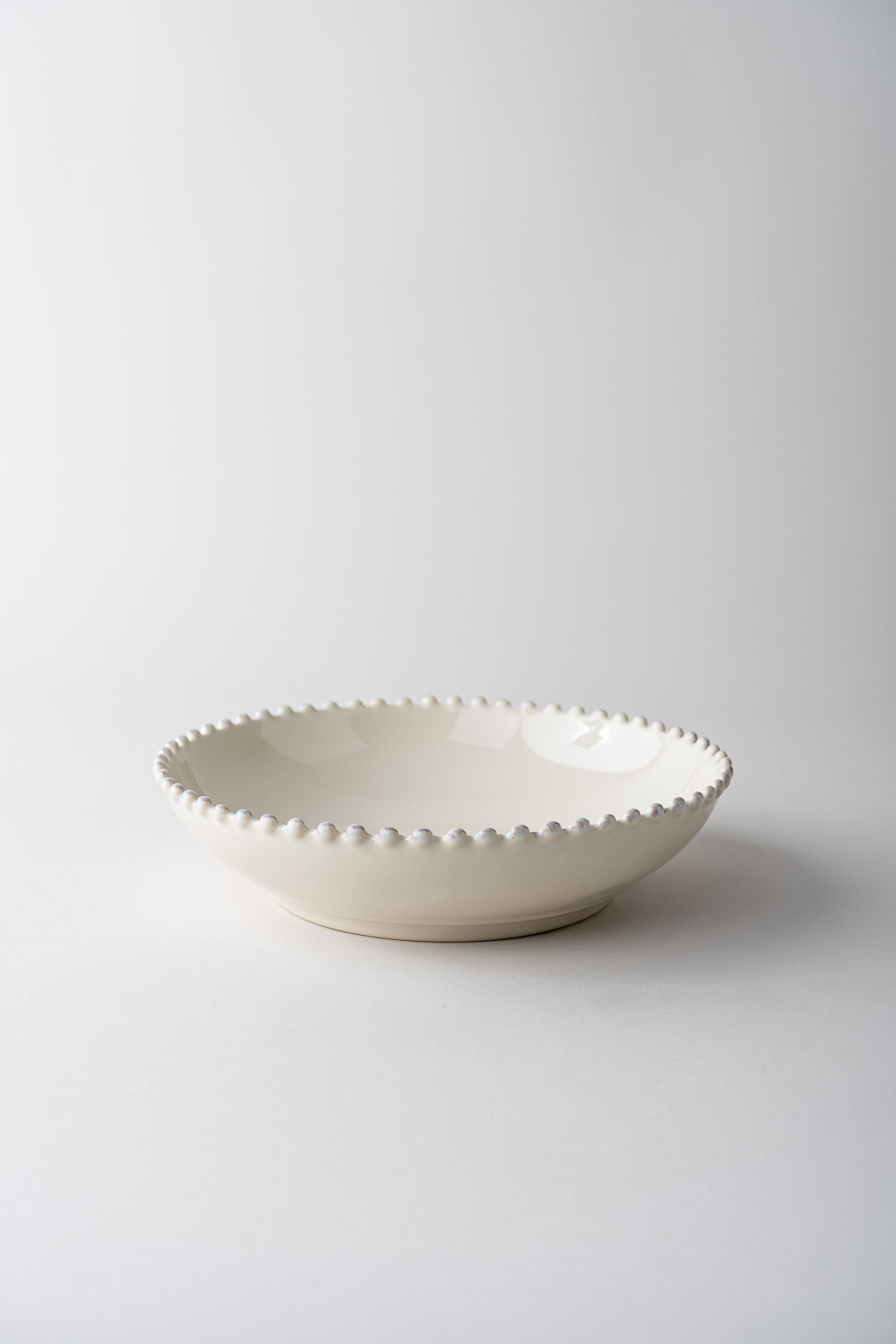Exuding charm, elegance, and simplicity, the vintage-inspired Pearl dinnerware collection is a nod to classical European ceramics while staying firmly rooted on a contemporary table. Small ceramic drops inspired by freshwater pearls outline the edges of each piece, providing a delicately striking appeal.