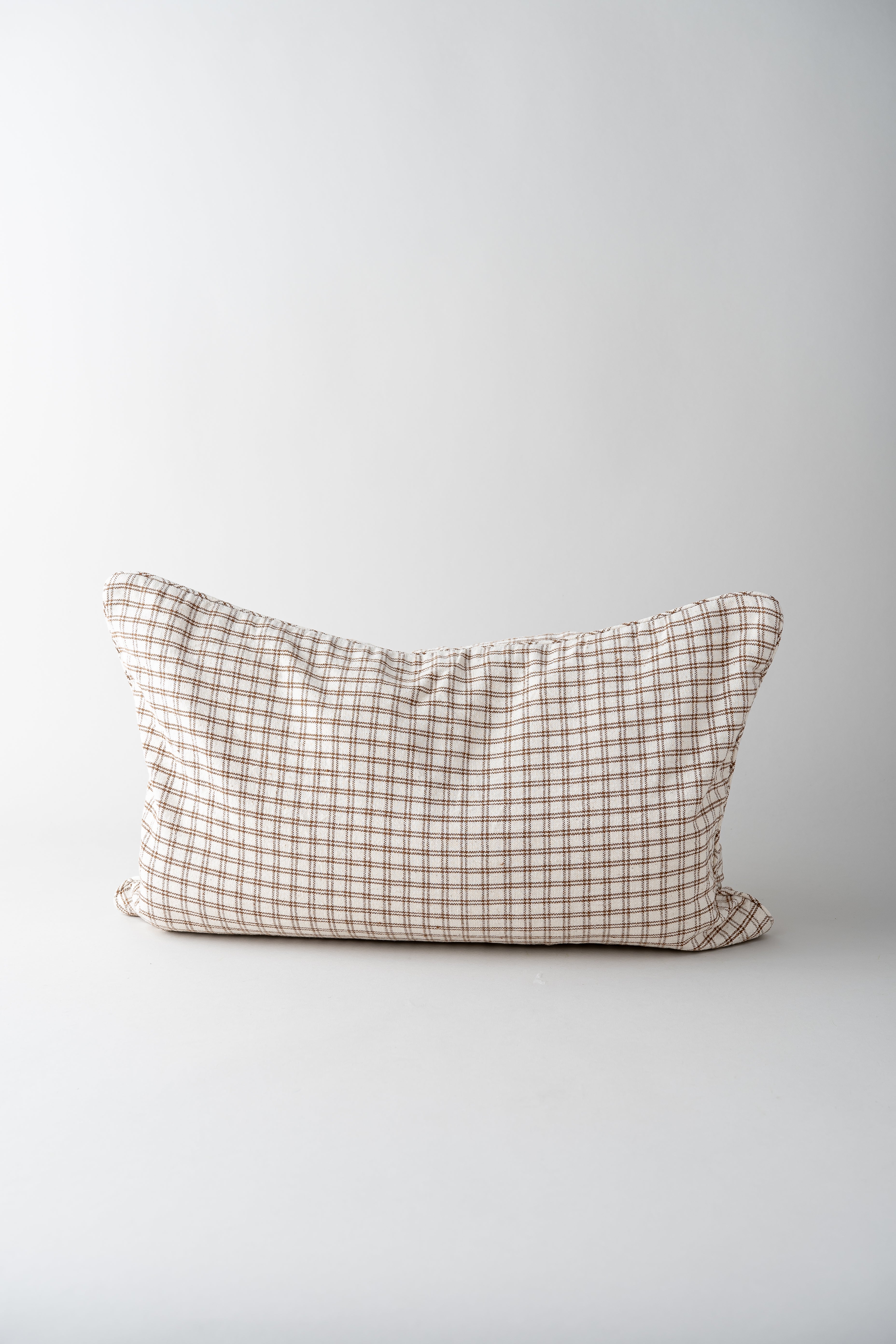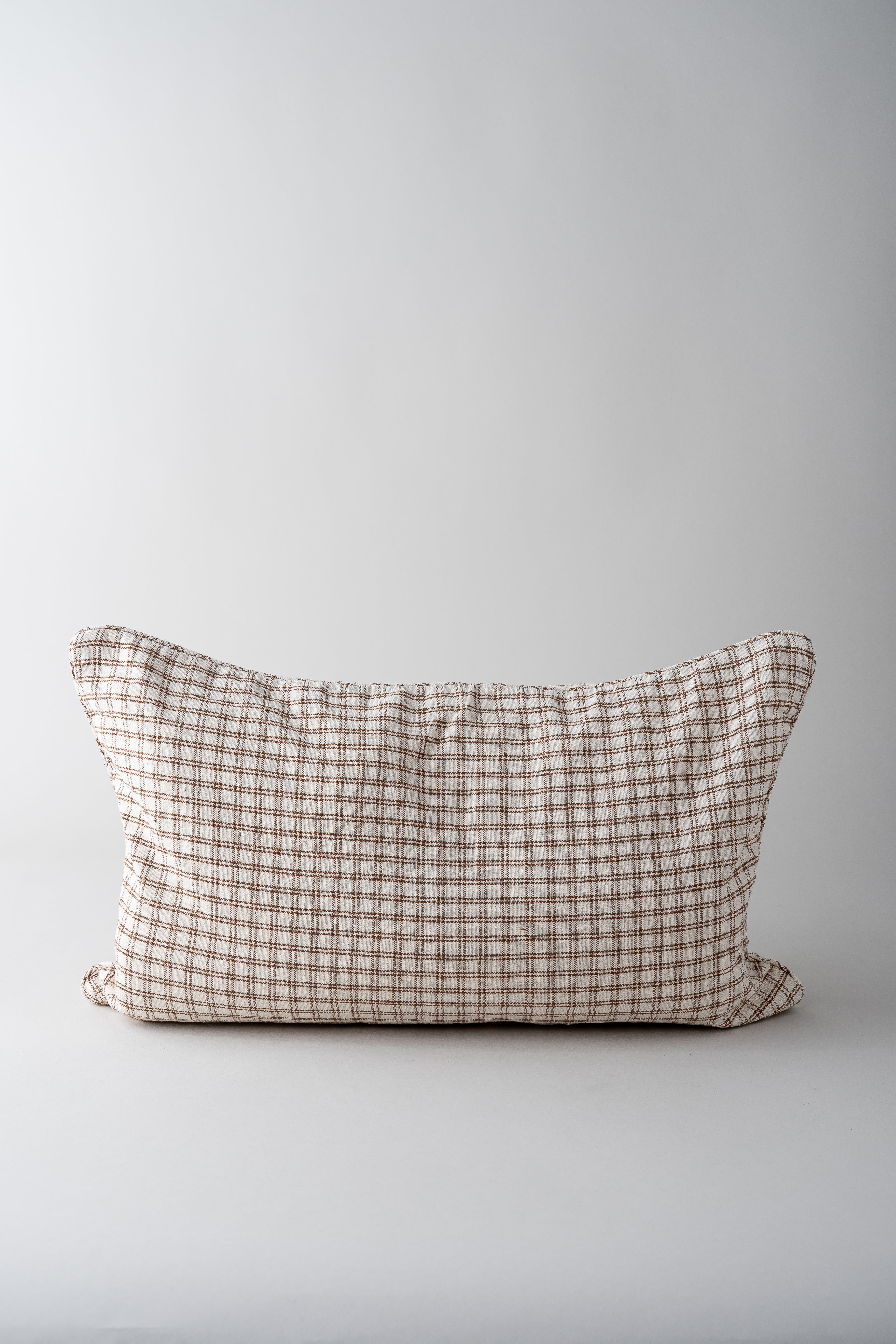A fine handwoven cushion cover in soft organic cotton. The delicate double grid pattern is designed to captivate and complement rather than compete with the pieces you choose to surround it with. Toss it on your bed, armchair, or daybed for an effortlessly chic and cosy impact.