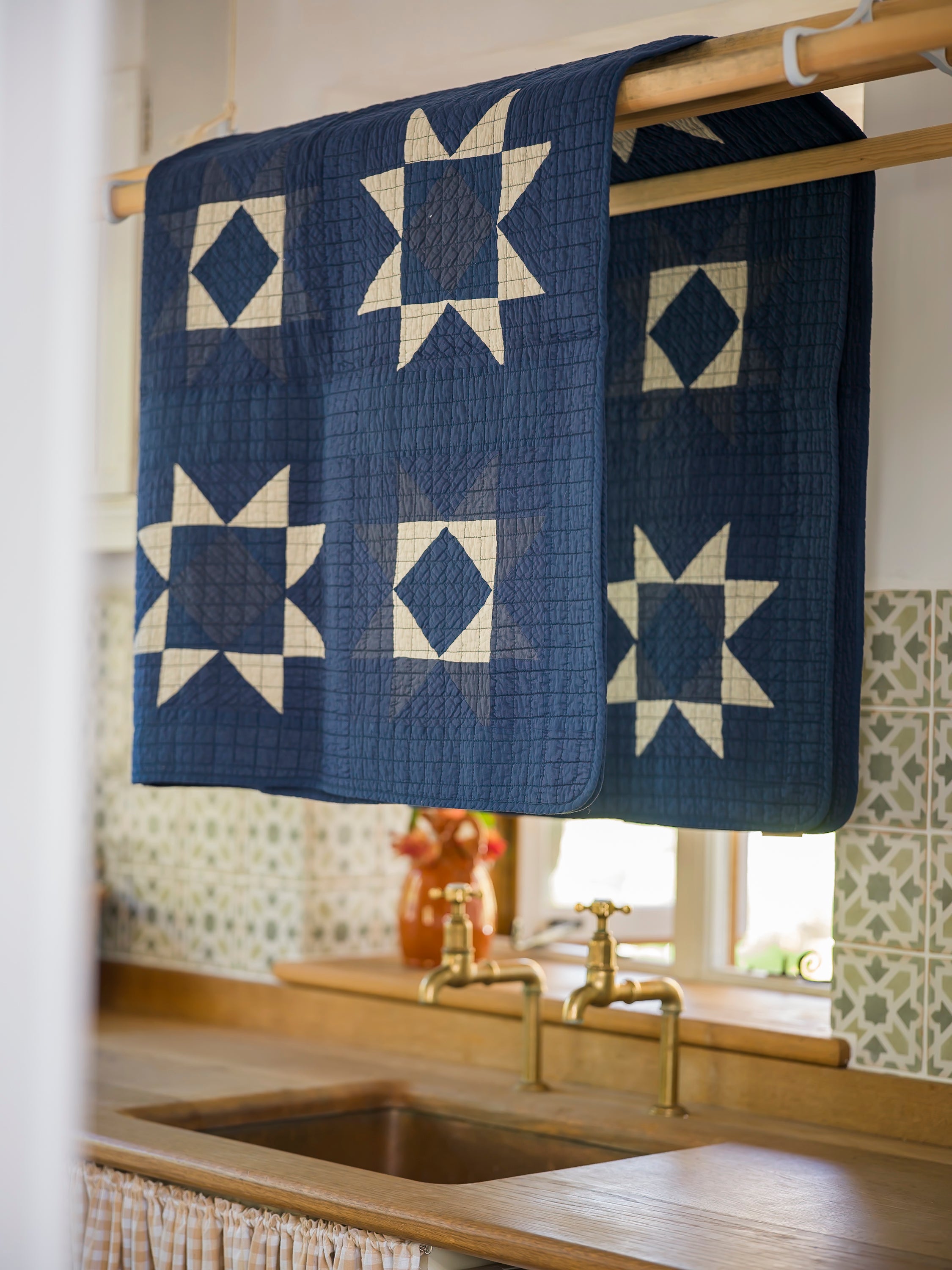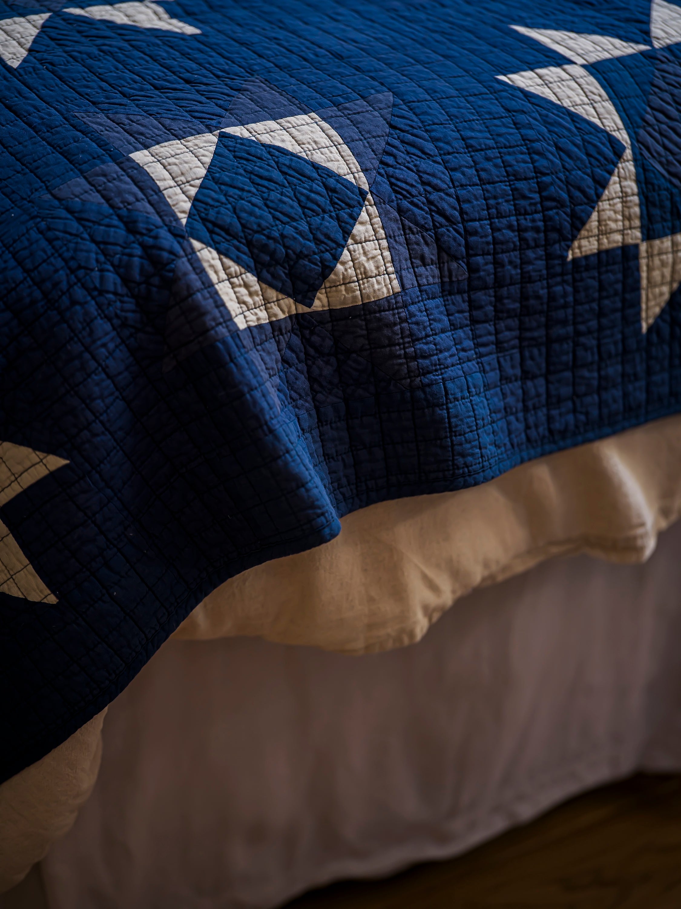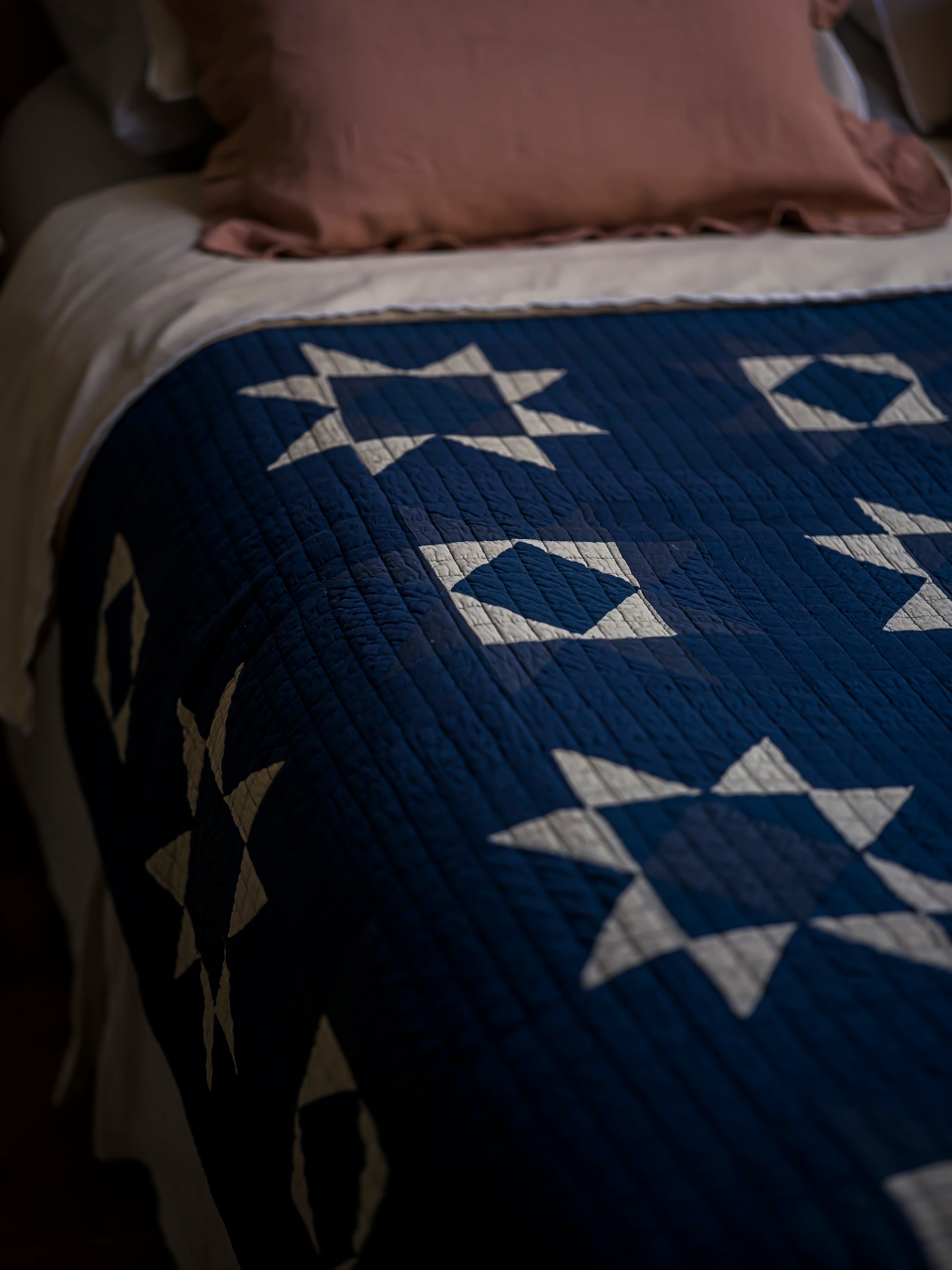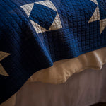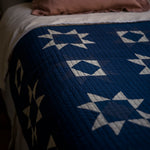 Soft, hand-stitched cotton quilts for starry nights and cosy mornings. Inspired by the traditional art of Japanese sashiko quilting, the delicate stitches create a captivating geometric star pattern, accentuated by the indigo and ivory colourway.