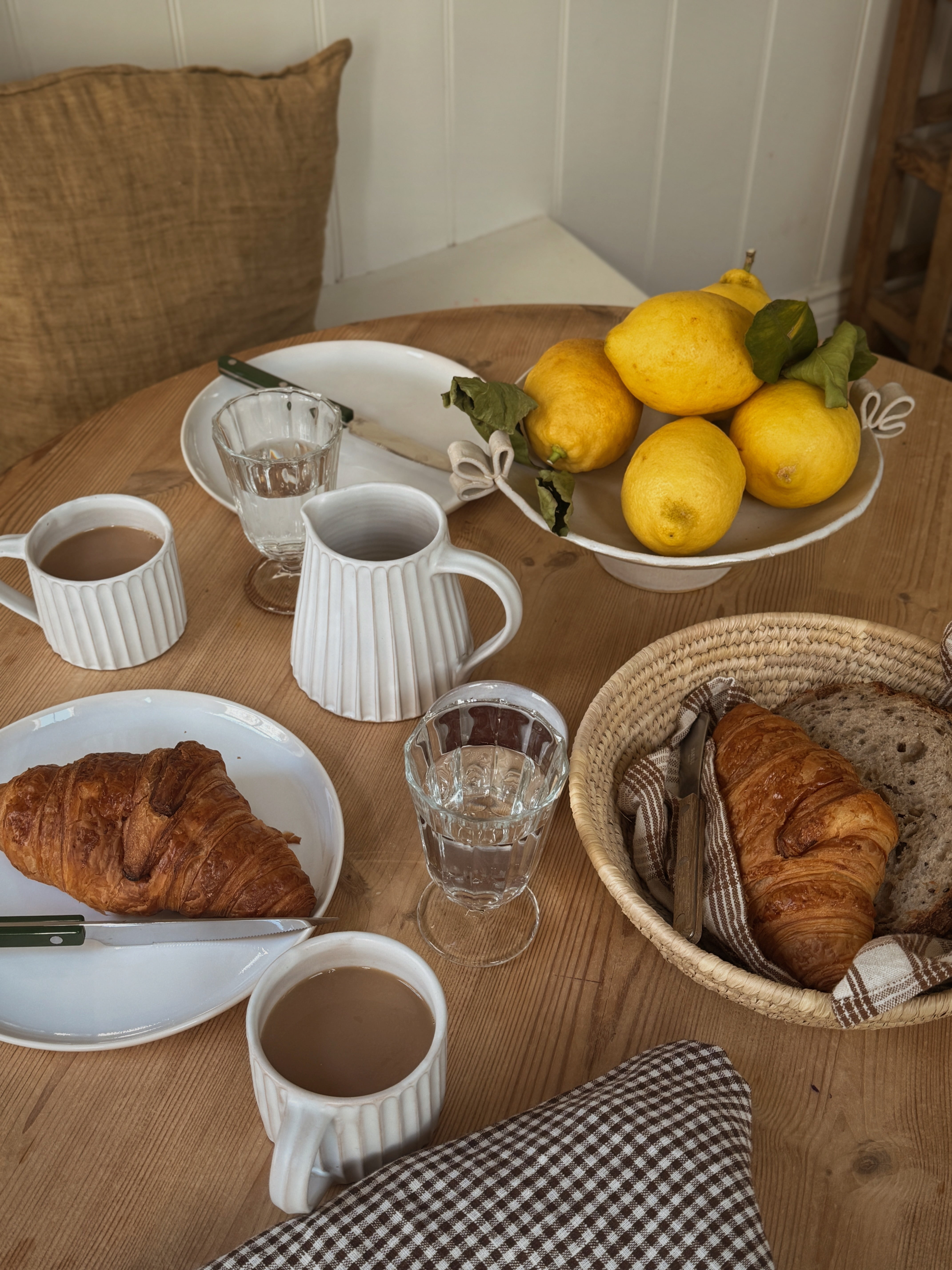 This lovely stoneware jug is perfectly poised for pouring milk, juice, maple syrup, and just about any other accompaniment you'd like to see on your table at brunch time.