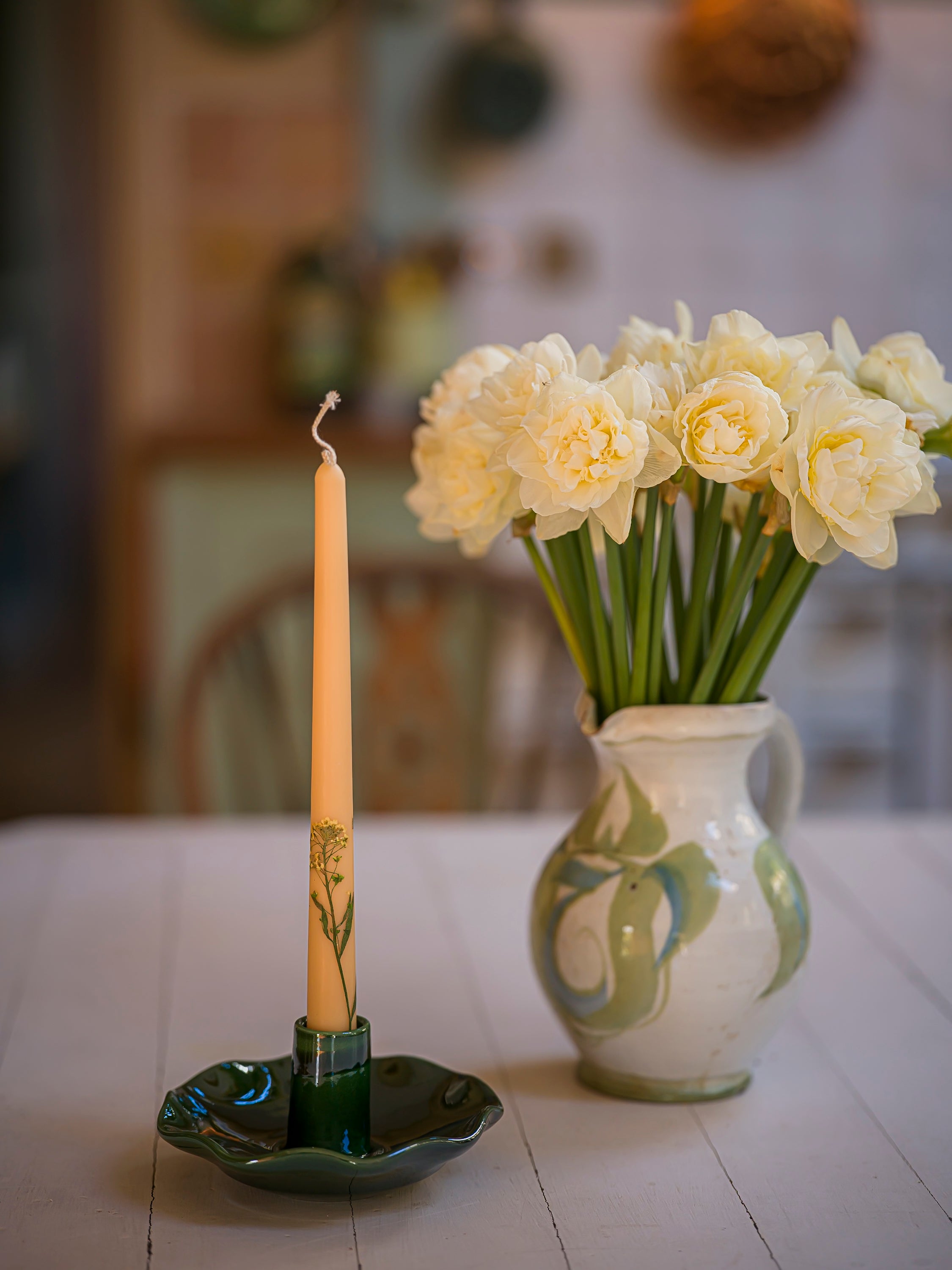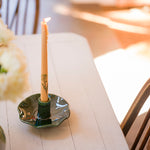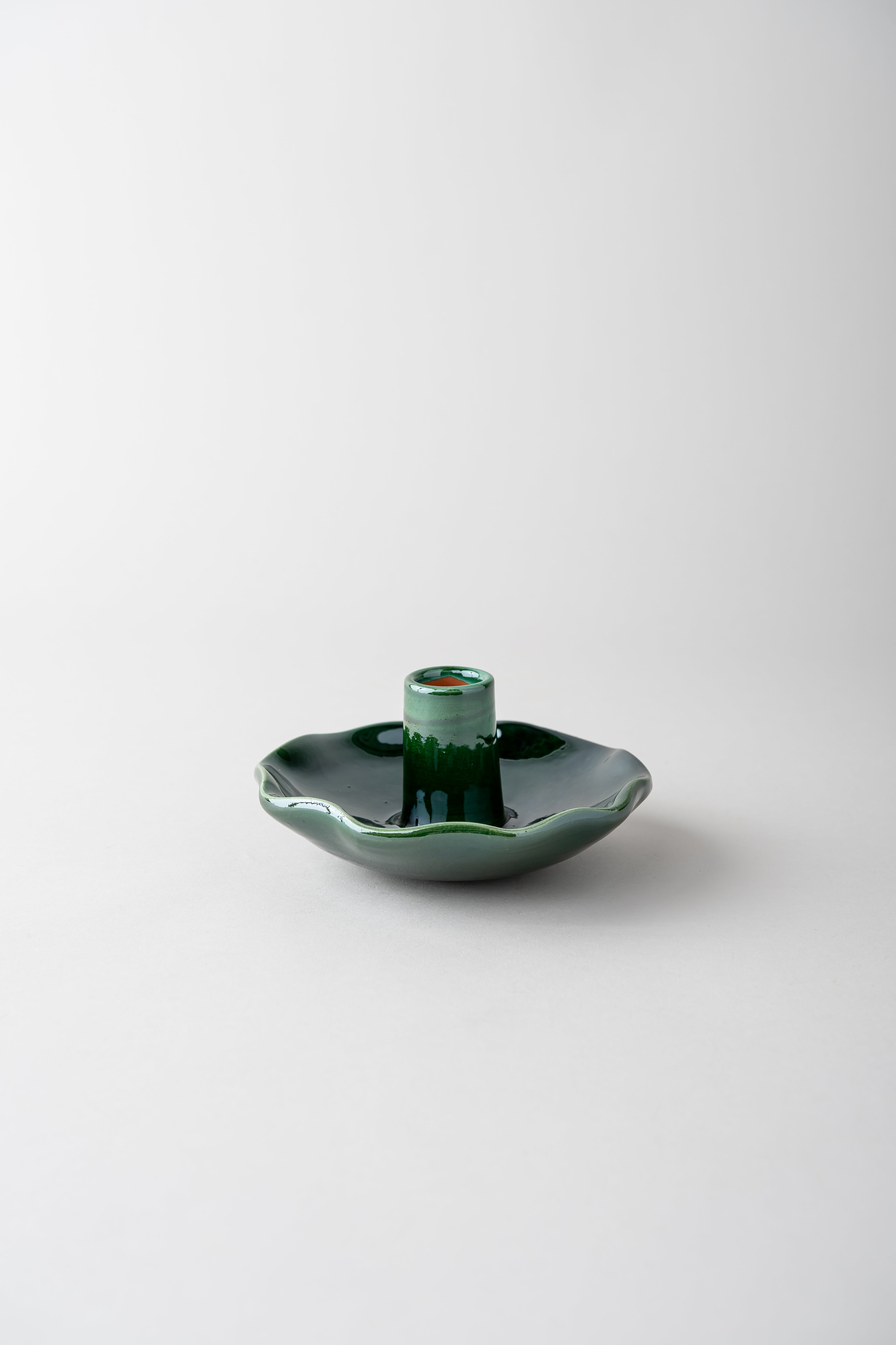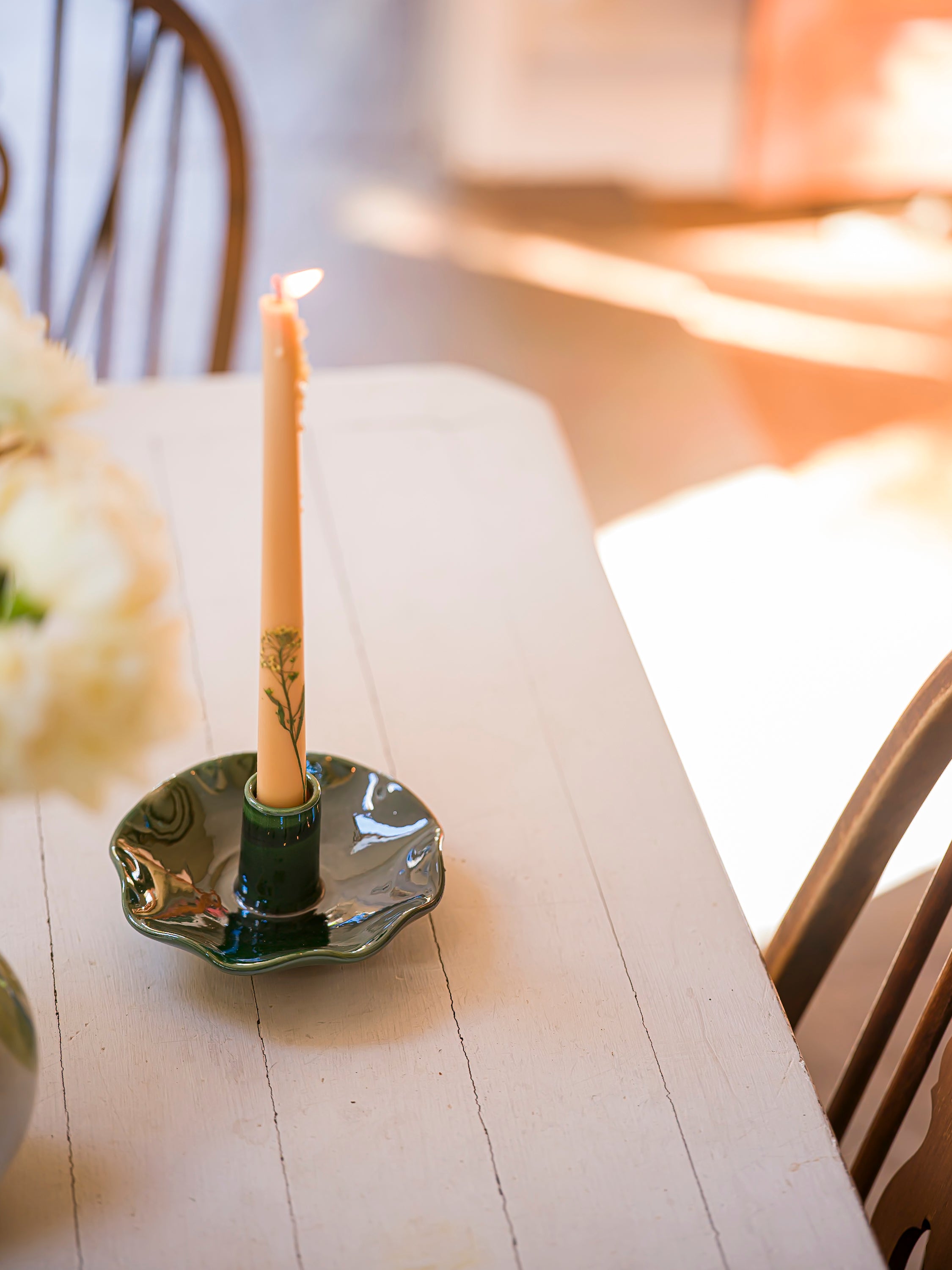 Handcrafted in Verdu, Spain from clay by local artisans, each candle holder features exceptional craftsmanship and a style distinct to the region. With softly scalloped edges and an emerald green glaze, these subtly vibrant pieces will be a gorgeous addition to your table or windowsill.