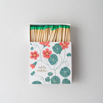 A square box of matches brought to life with an illustrated botanical motif and gold foil lettering. Because we'll always favour a set of matches so lovely we keep on display.