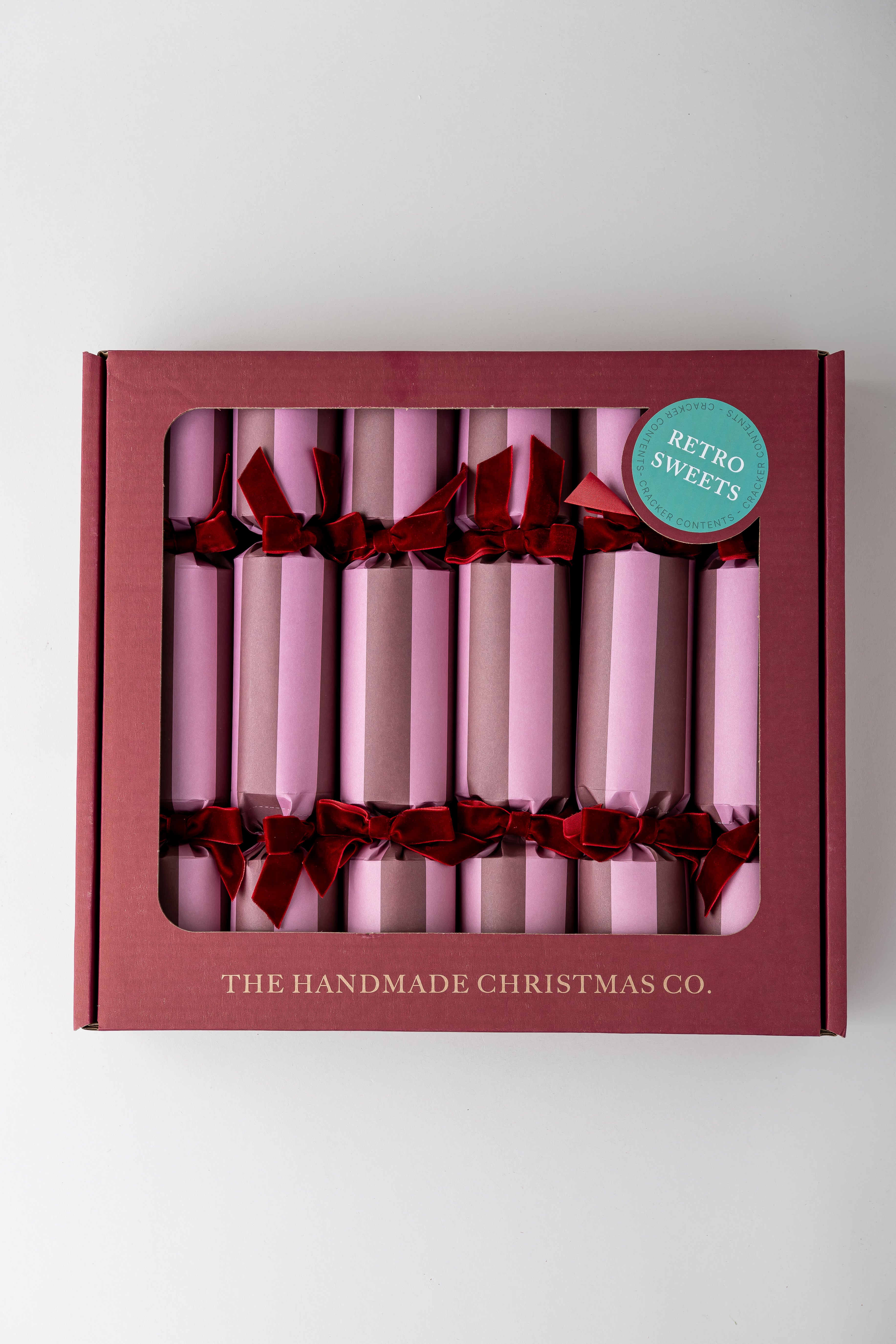 Each cracker contains a selection of retro treats, along with the quintessential snap, paper hat, and joke.