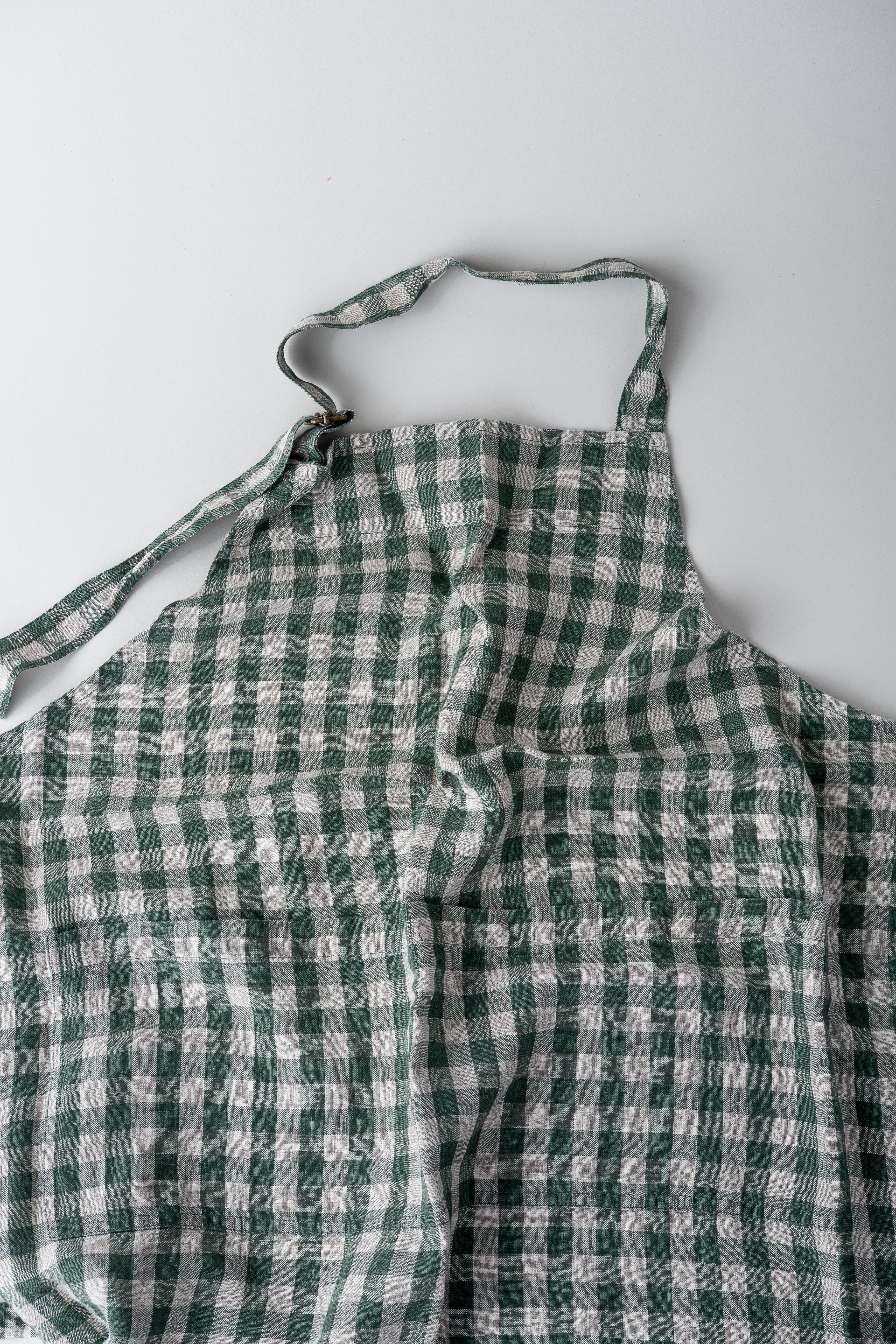 The adjustable neck strap and tie closure ensure a comfortable fit, while stone-washed linen offers softness from the very first wear.