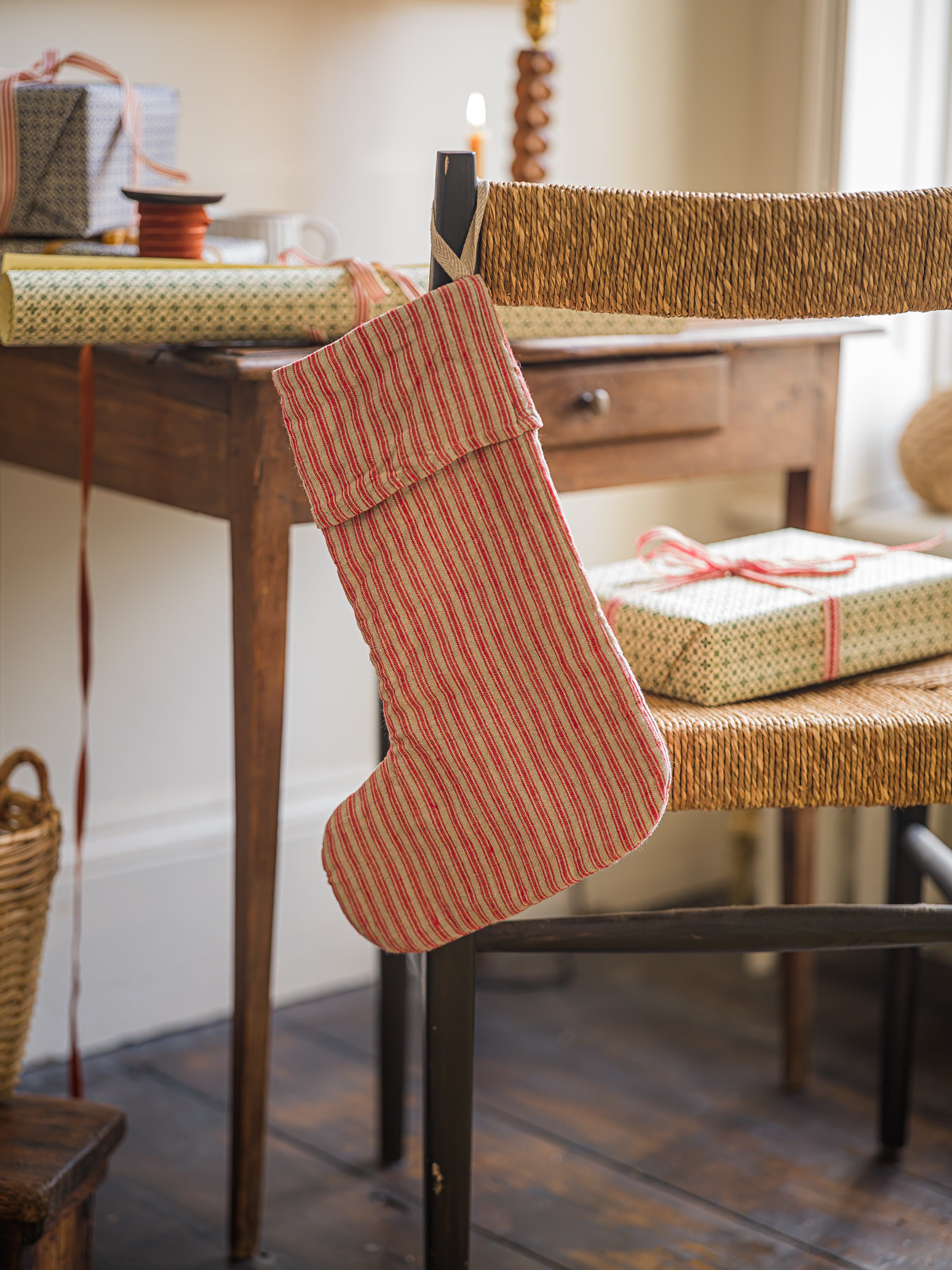 A winter staple and holiday ritual, woven into a sweet linen stocking to hang on your mantel or place at the foot of the bed.