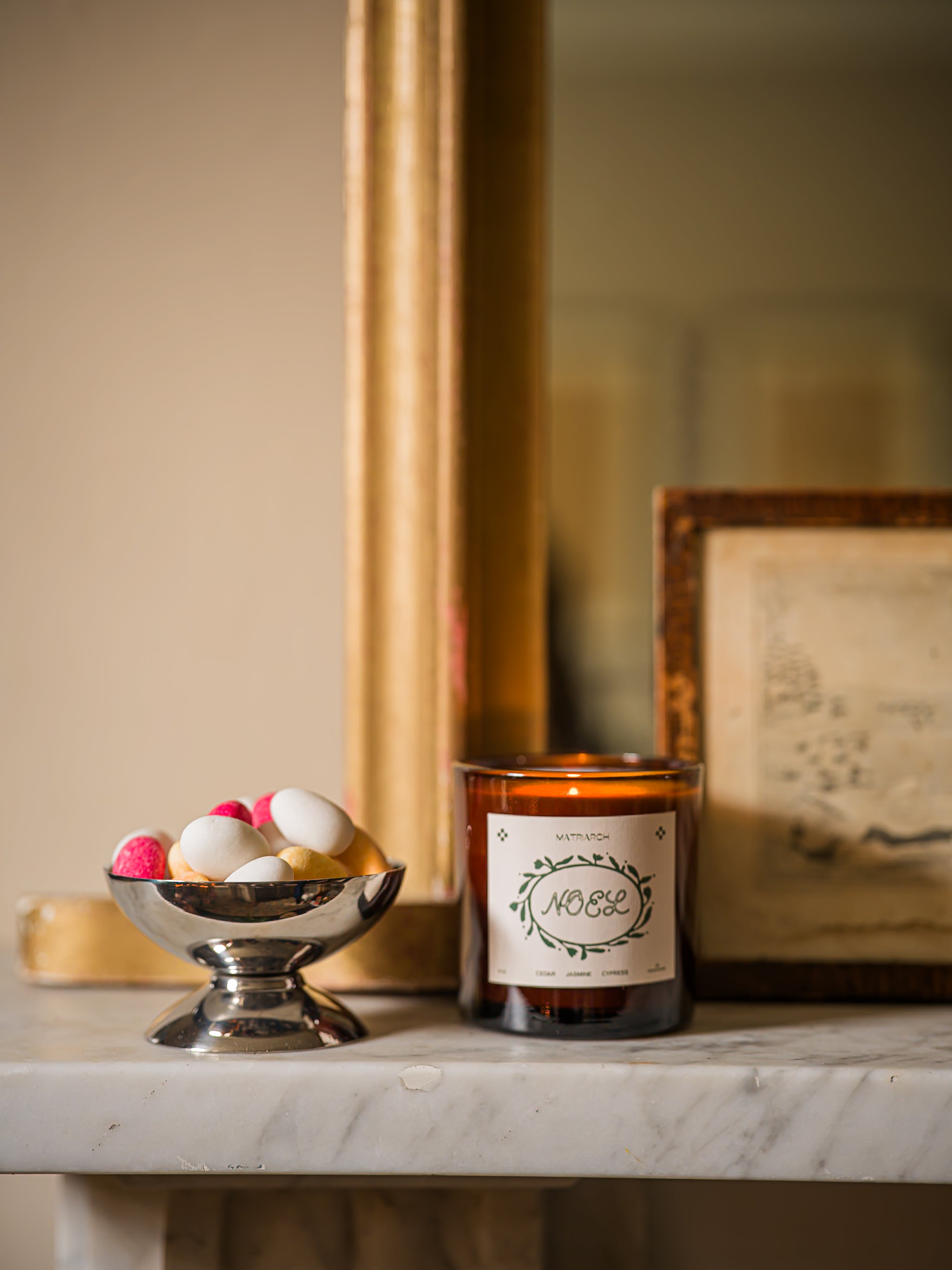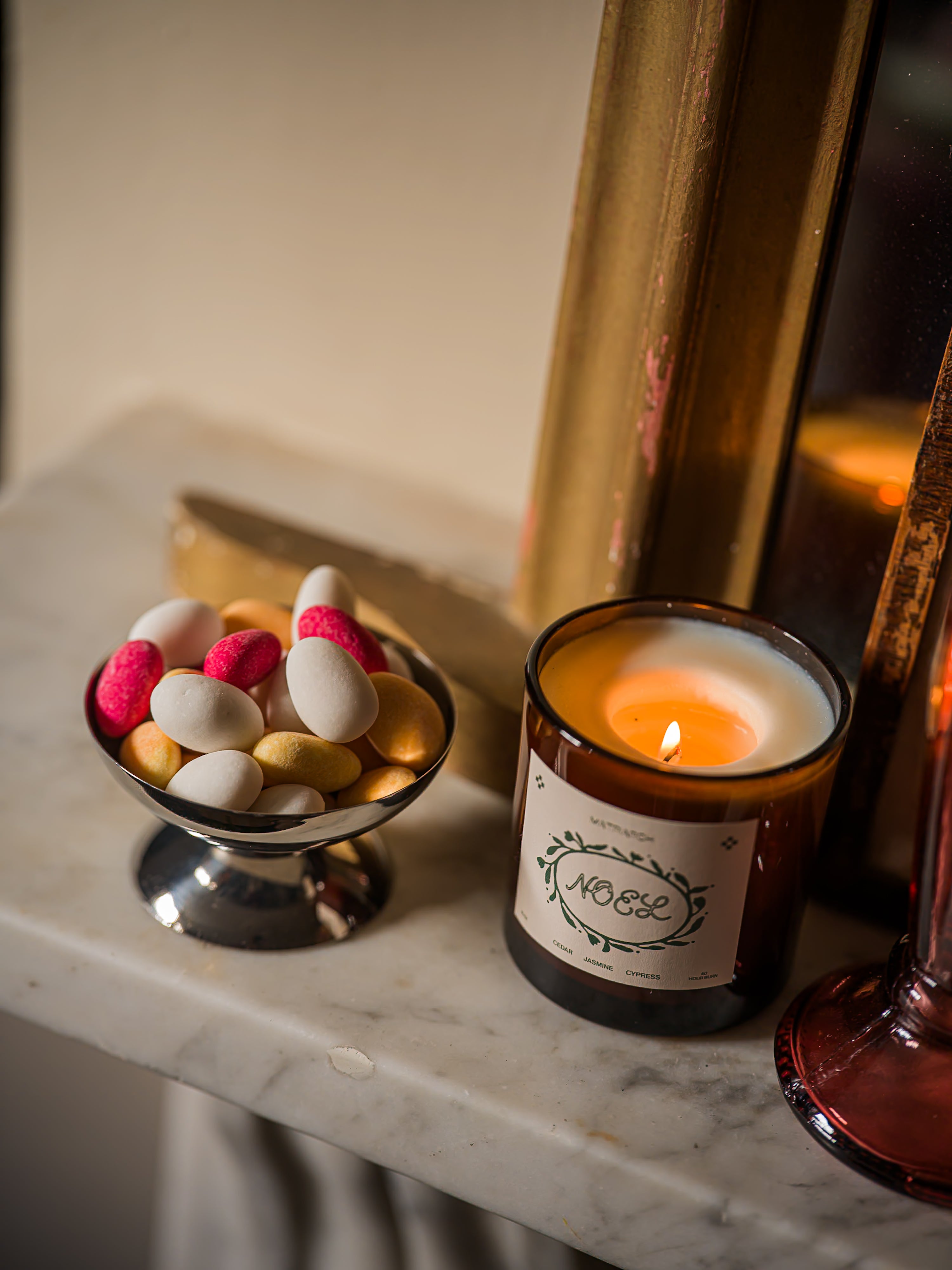 Our Noël candle captures the quiet magic of the season - crisp air, evergreen boughs, and the warmth of familiar holiday rituals. Bright top notes of mandarin leaf and cypress open to green ivy, jasmine, and juniper, before settling into a grounding base of cedar, vetiver, and oak moss. The result is a fragrance that feels both refreshing and comforting, like stepping into a winter forest during the holidays.
