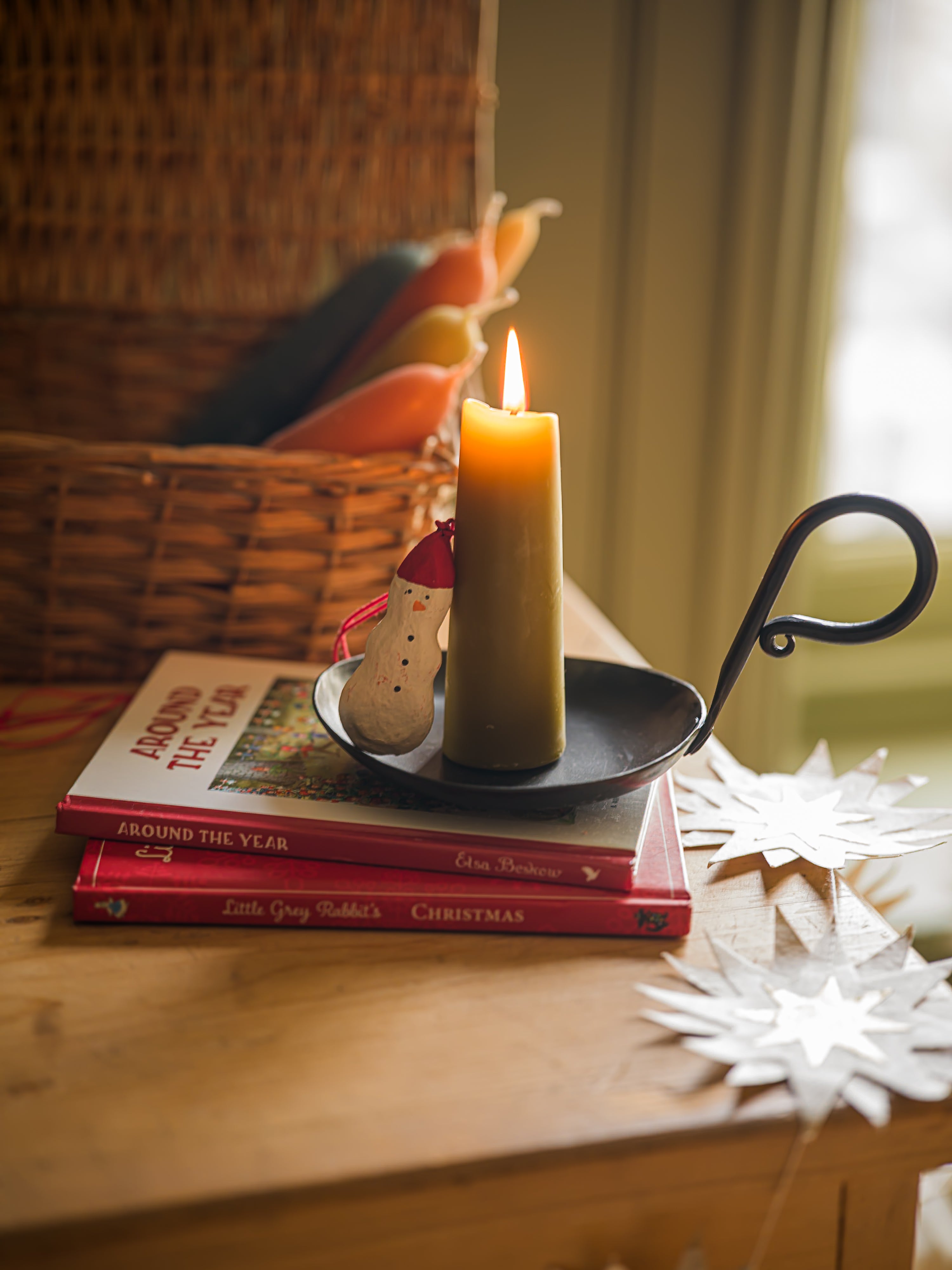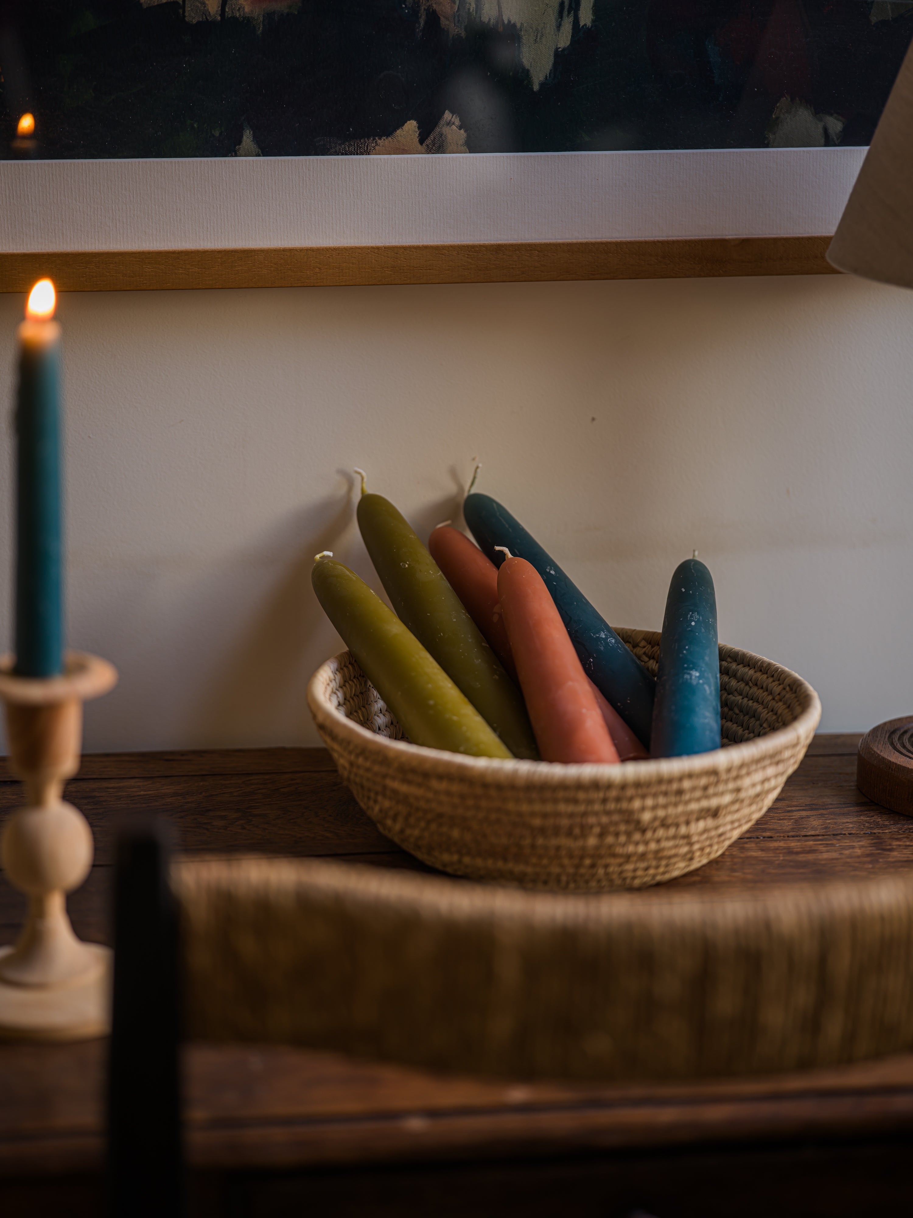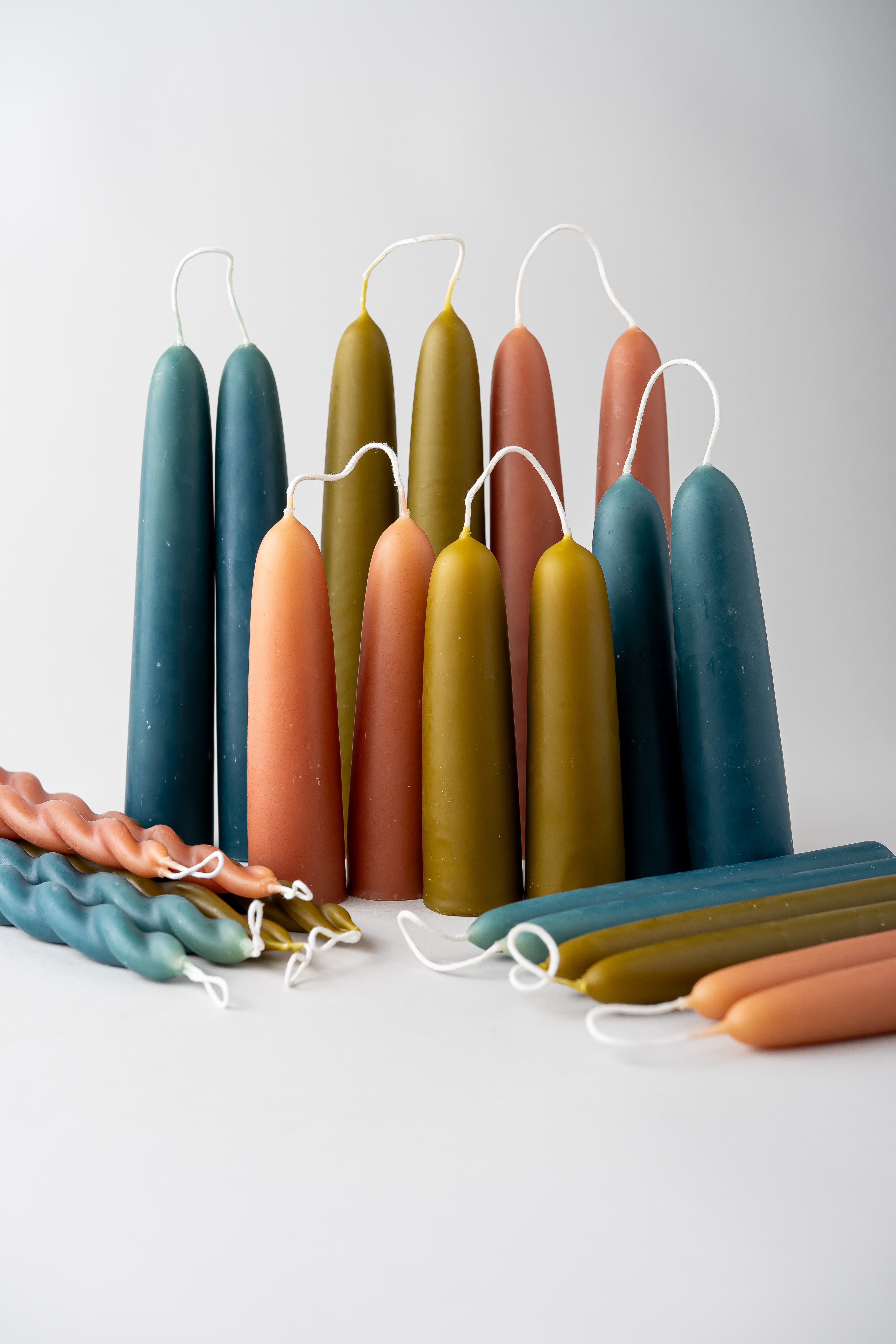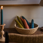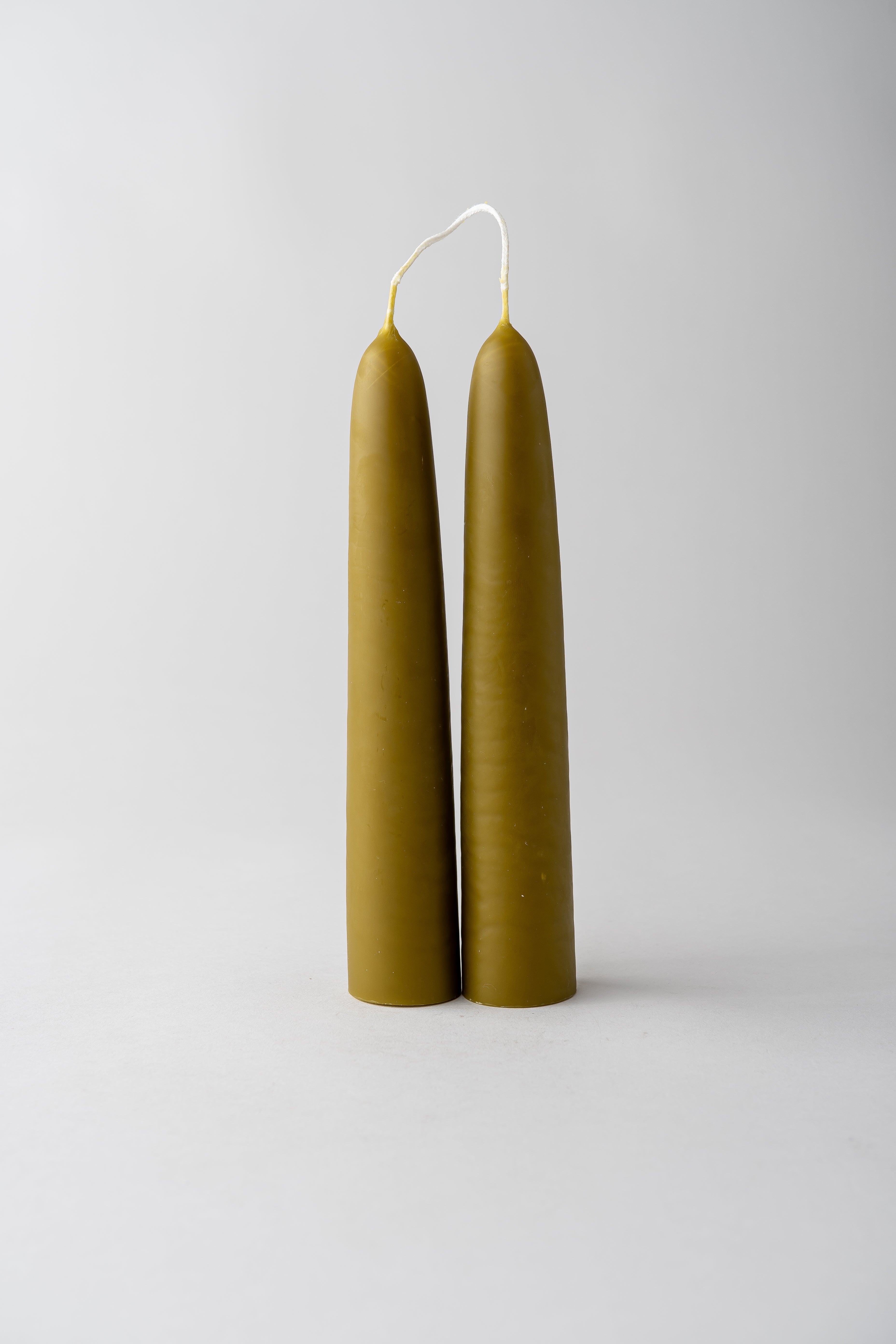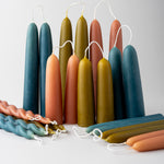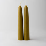 Delightfully old fashioned taper candles, hand-dipped from pure beeswax and naturally dyed with green tea.