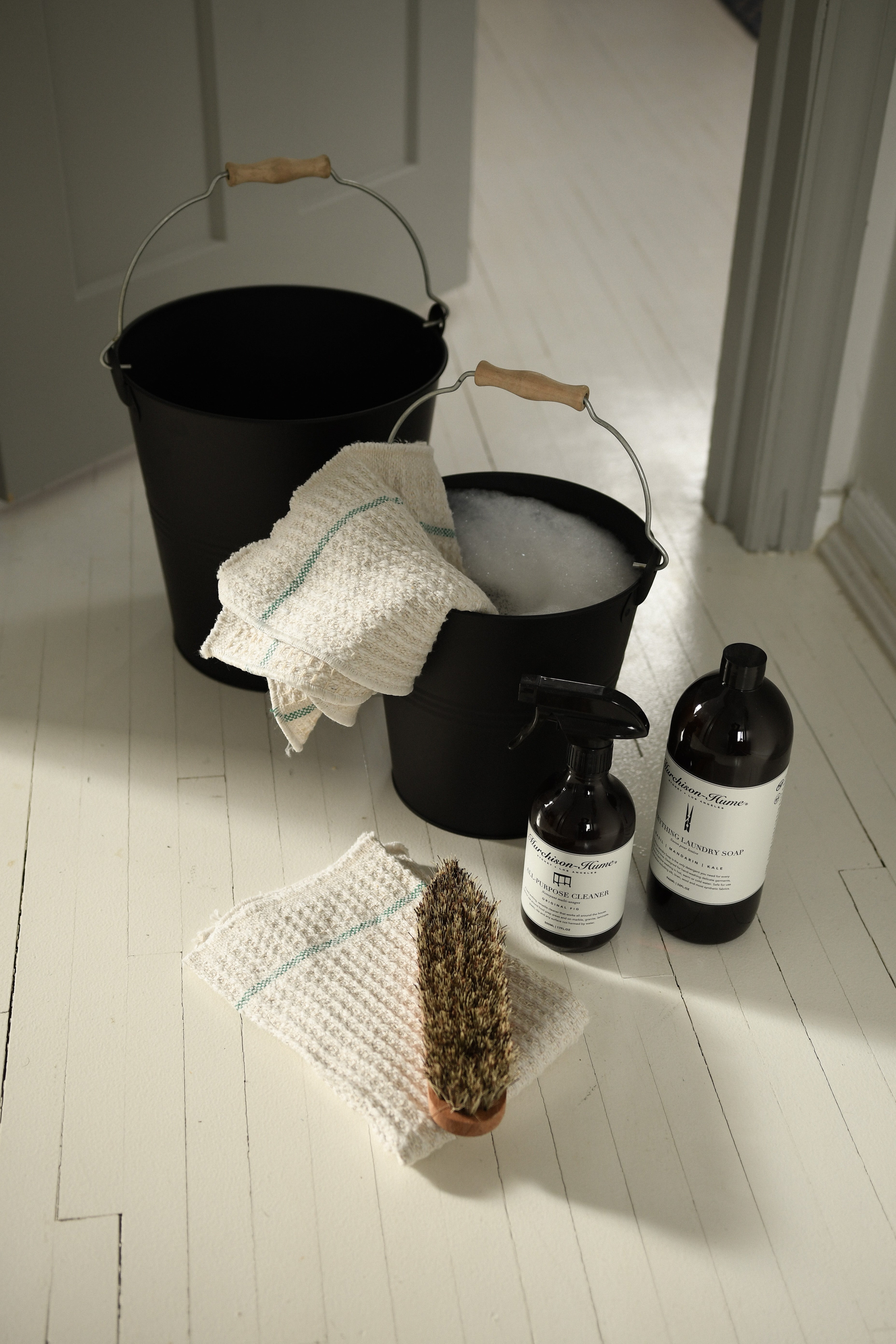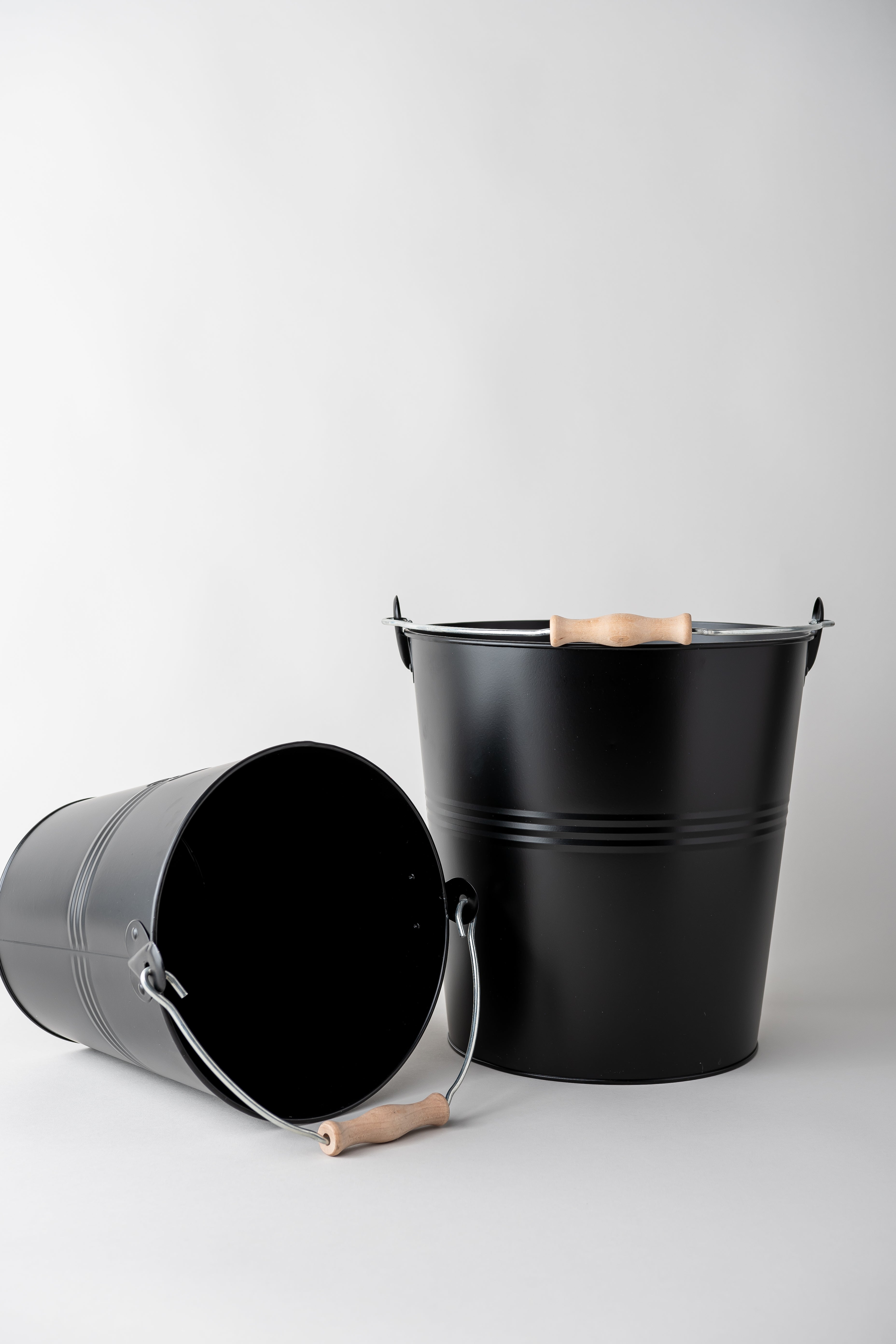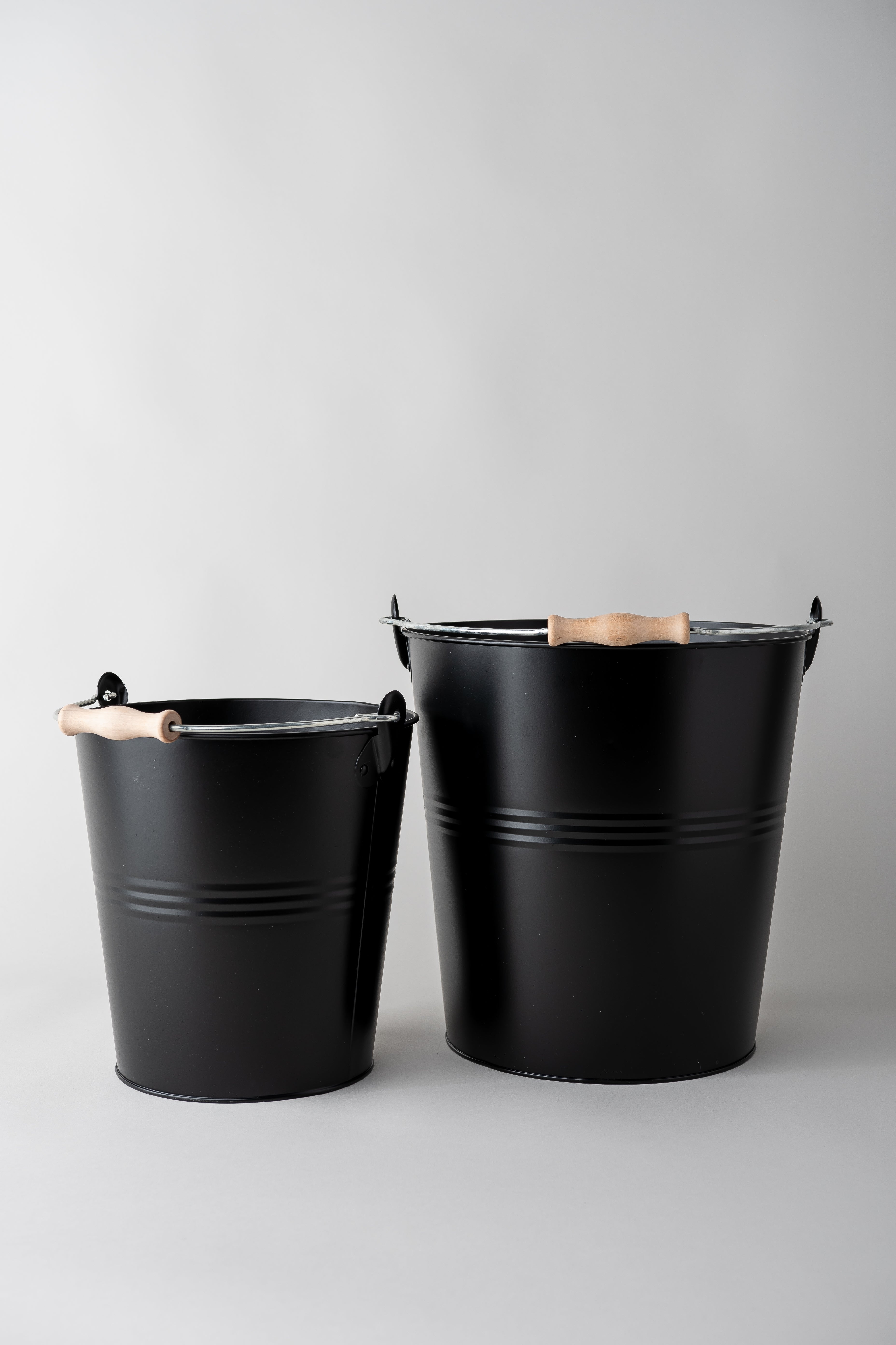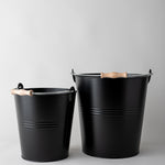 This set of two matte black enamel buckets is ready to suit your everyday needs. Featuring sturdy wooden handles, the small and large sizes adapt effortlessly to tasks from organizing supplies to decorative use.