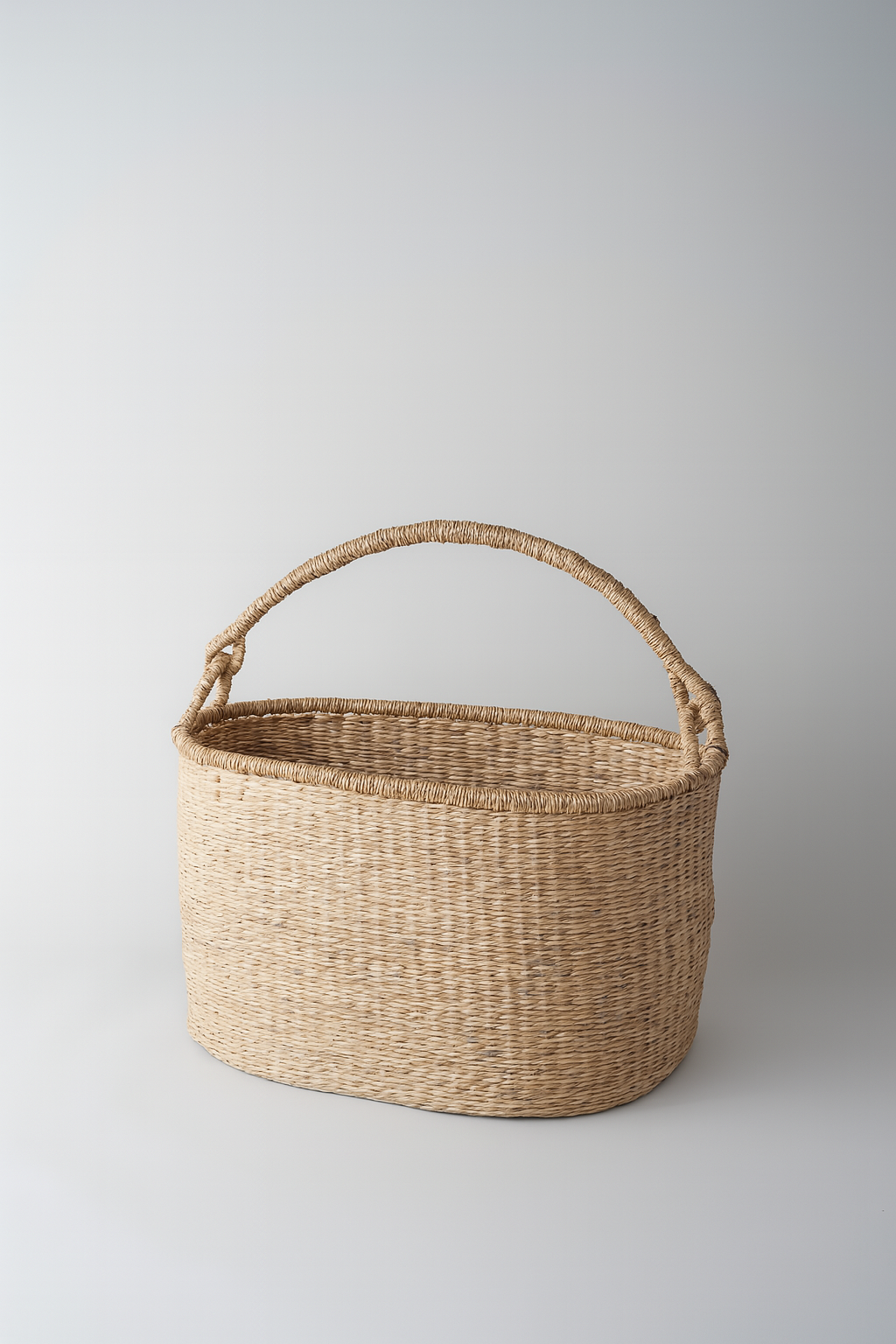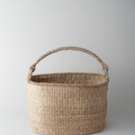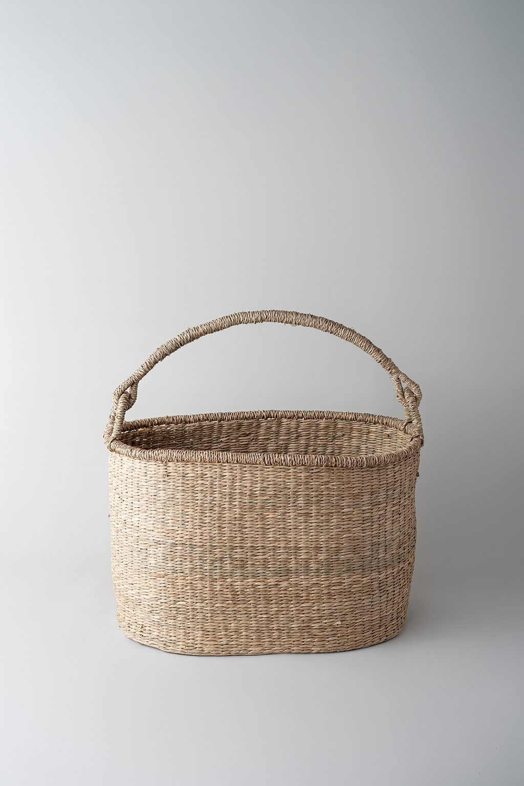 Invite a natural element into your home with our Satna Seagrass Basket. Handwoven from durable seagrass in a closed weave design, this basket features an oval silhouette and top handle. Small size ideal storage for small items, sundries or botanicals. Ideal storage for throws, magazines or even soft toys.