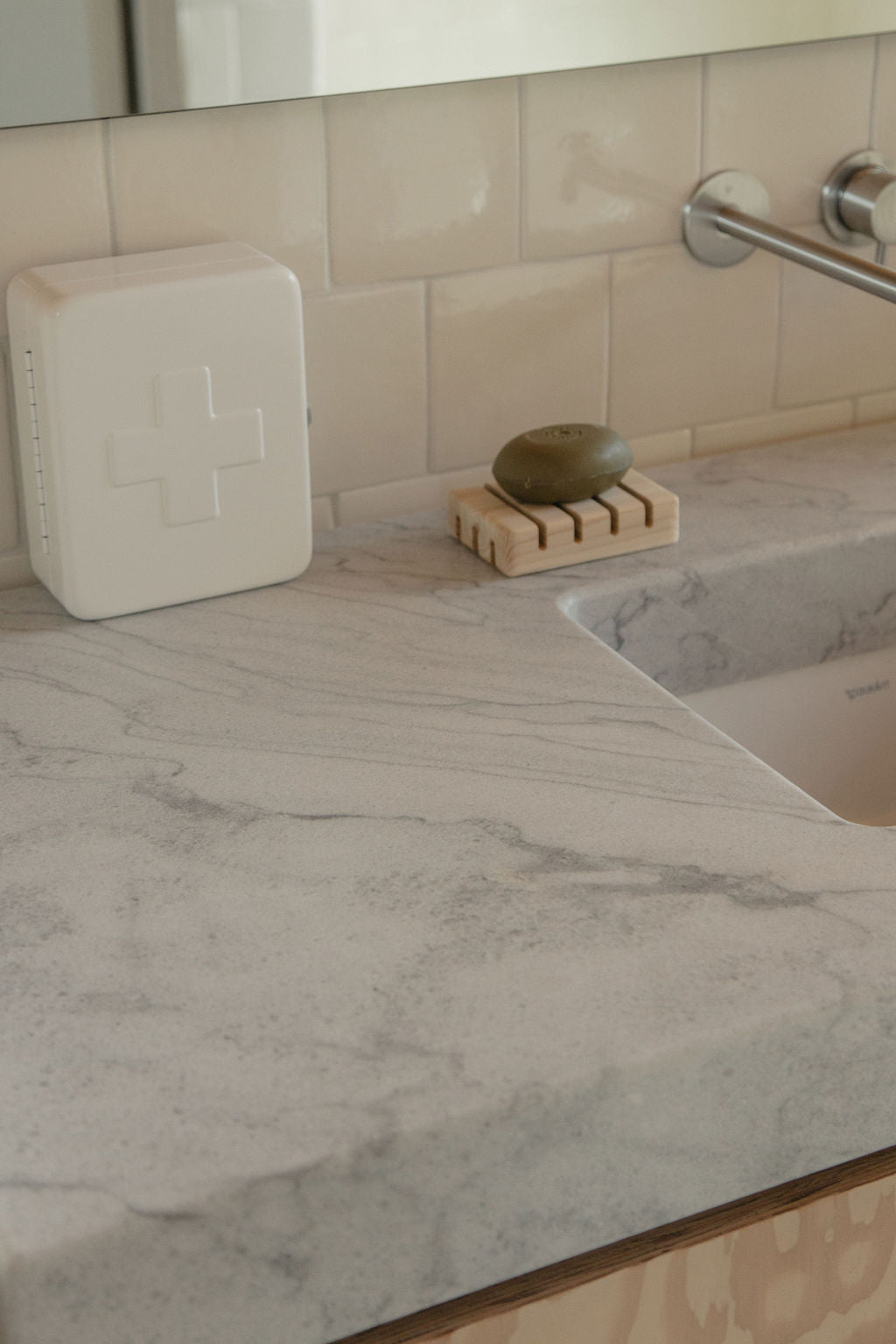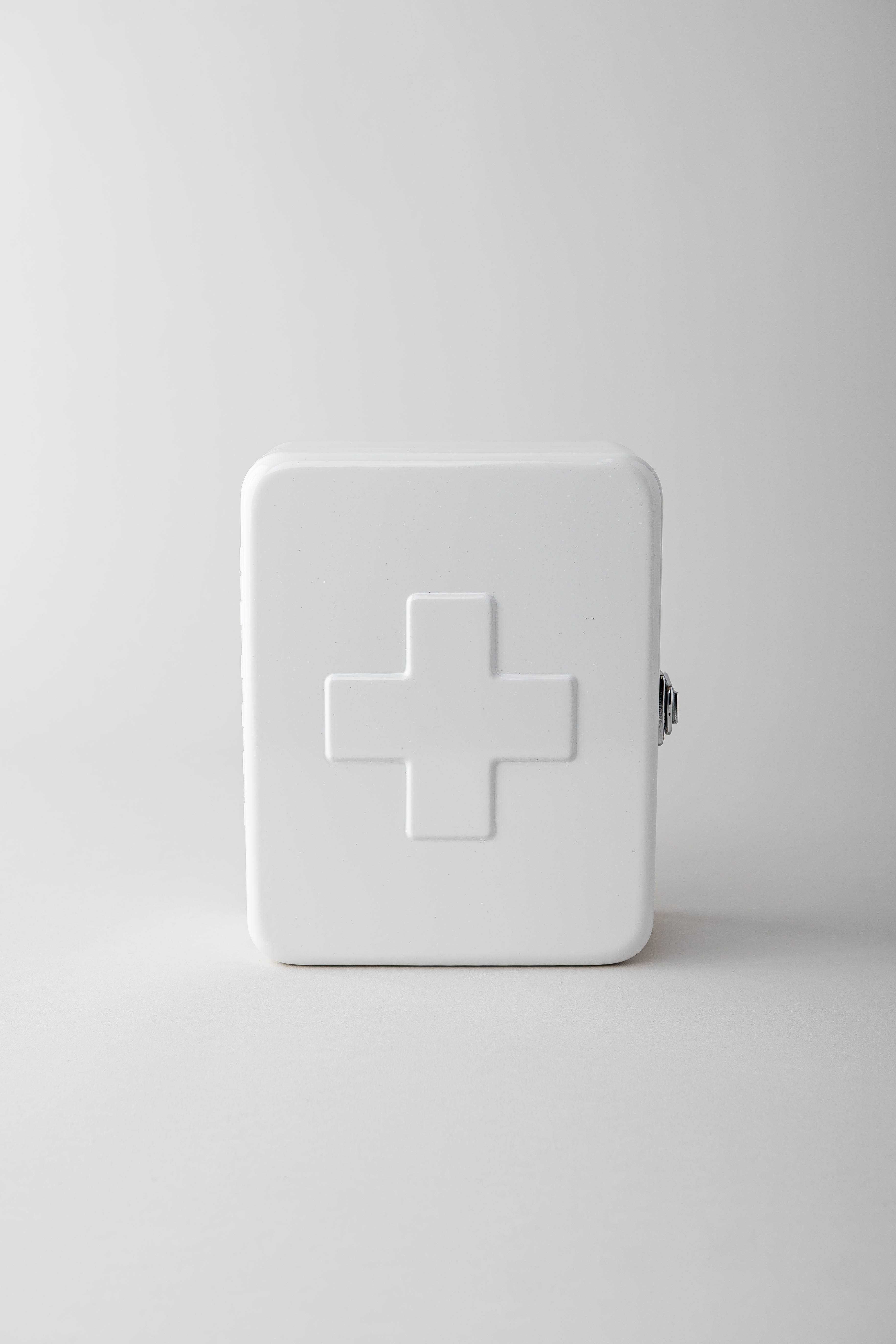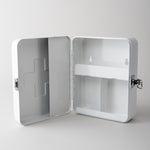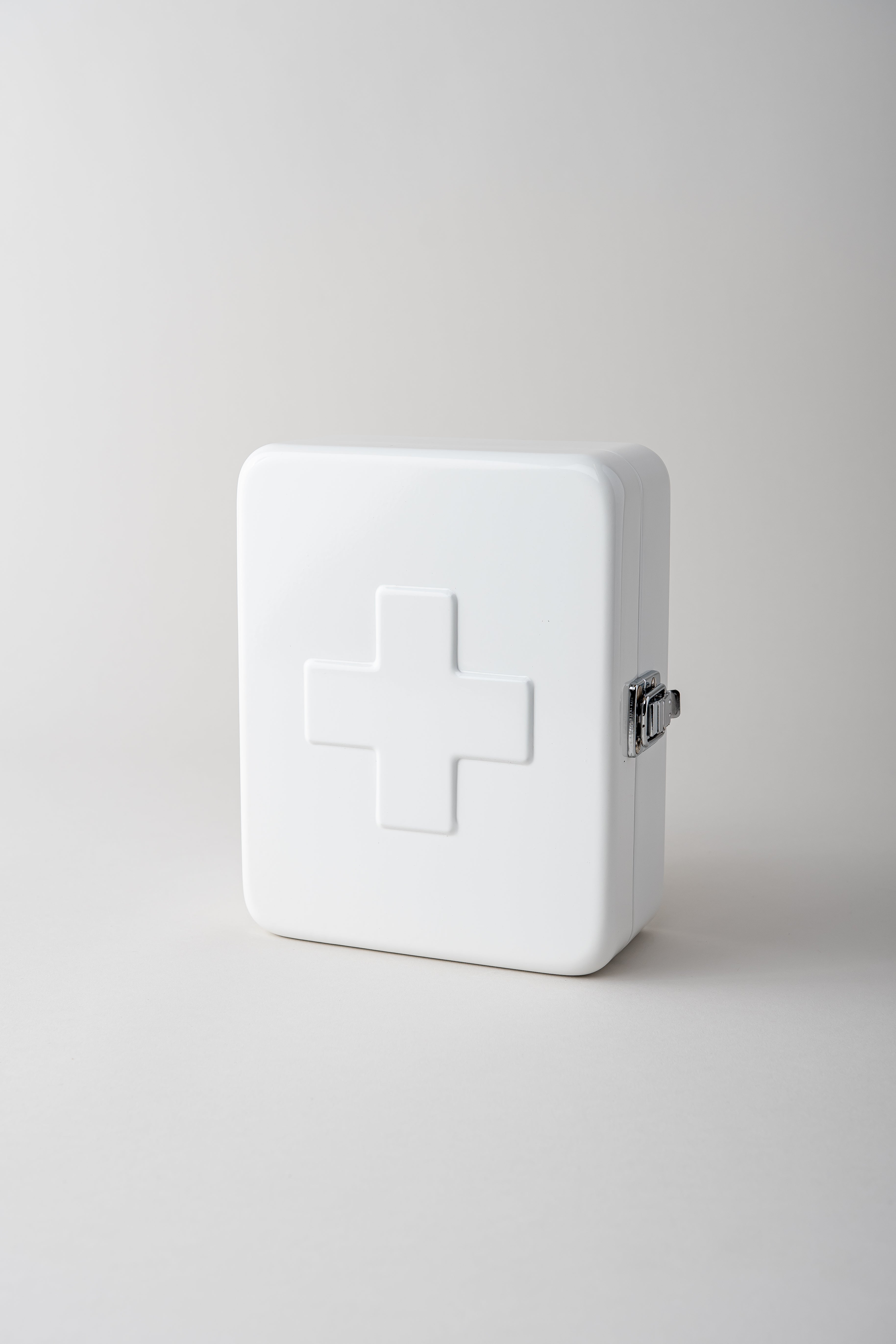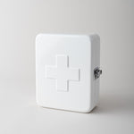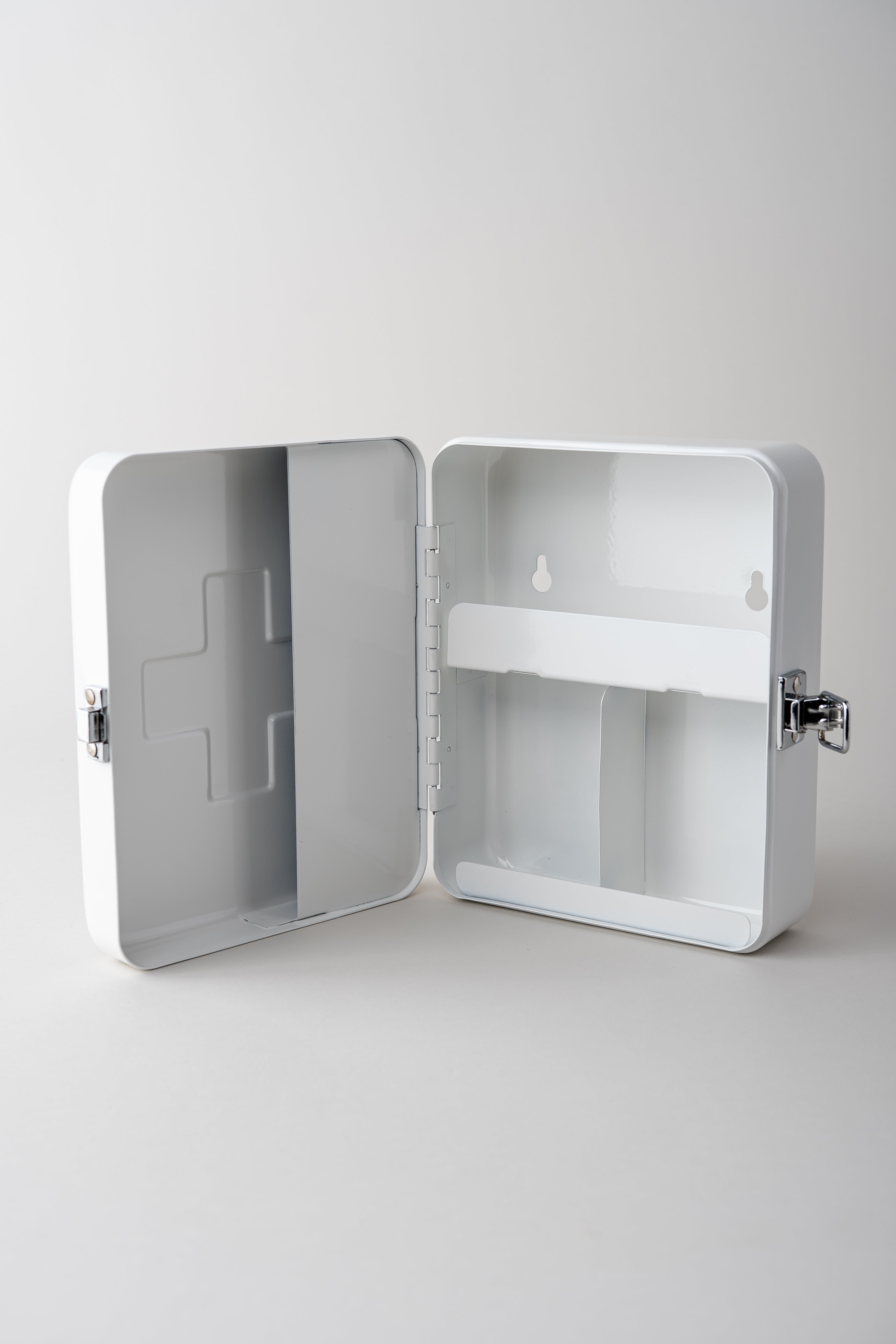 A practical household essential, so thoughtfully designed you may not even feel the need to tuck it away. This sleek enamelled first aid box keeps necessities organized and close at hand - ready for life's little bumps and scrapes.