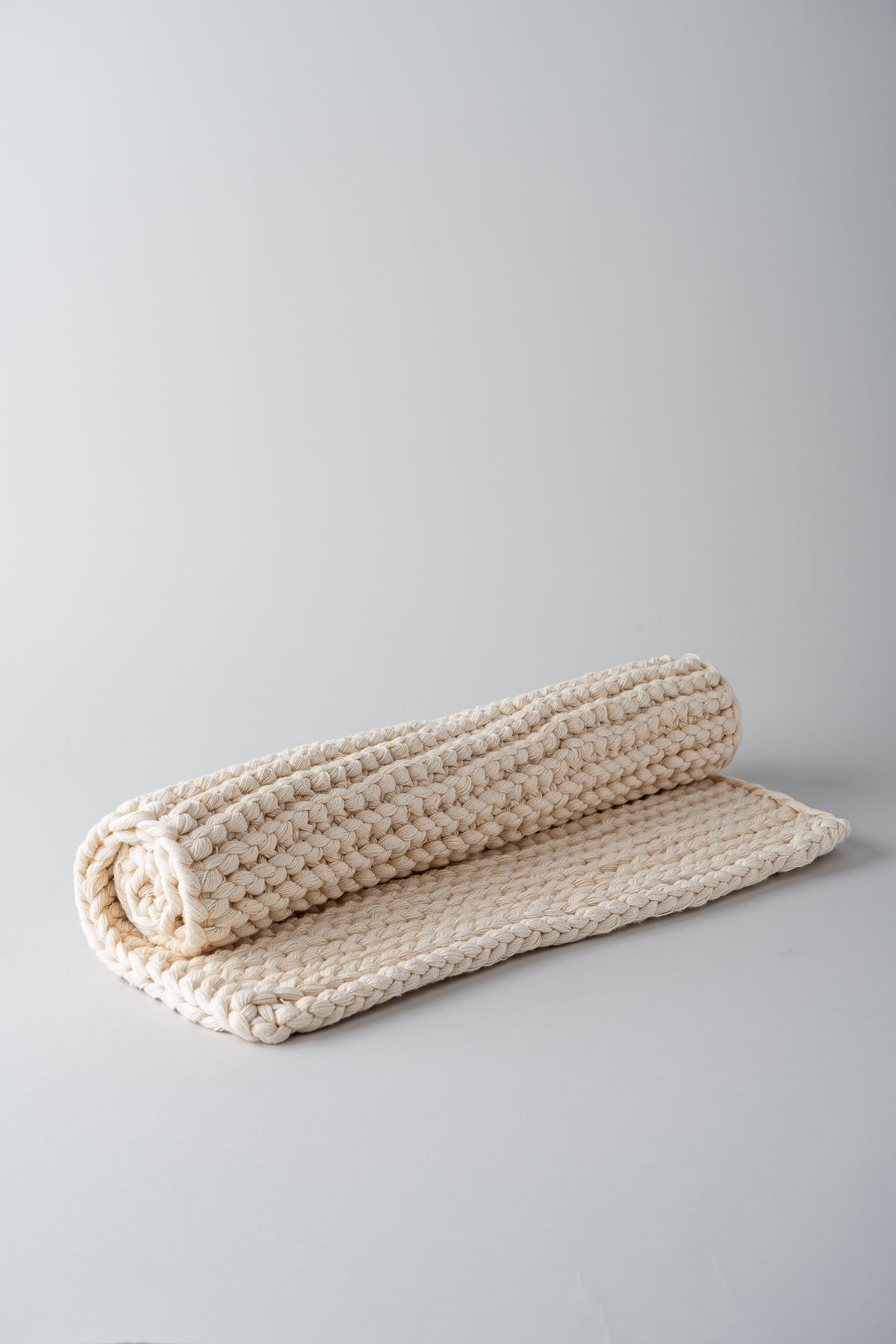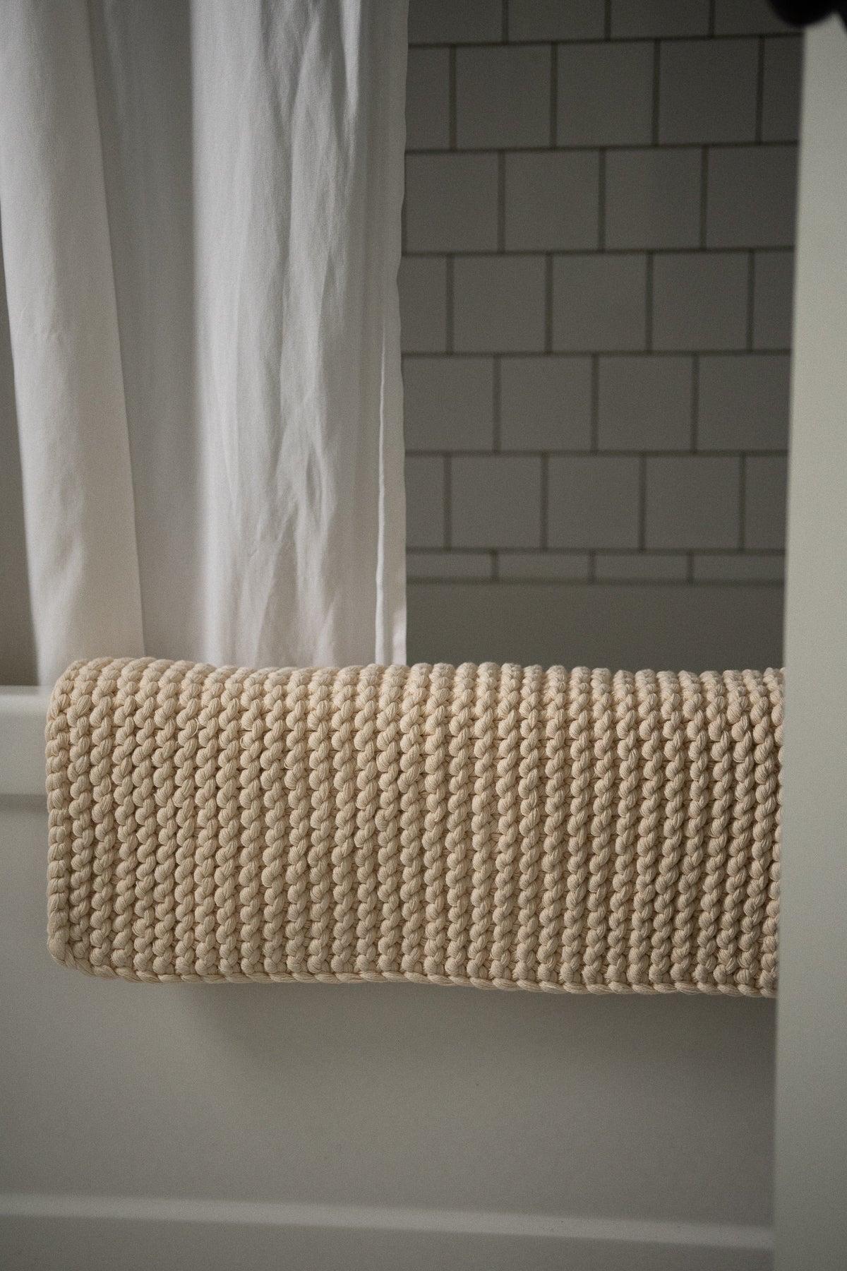 Treat your feet to this soft, hand-knit, pure cotton bath mat.