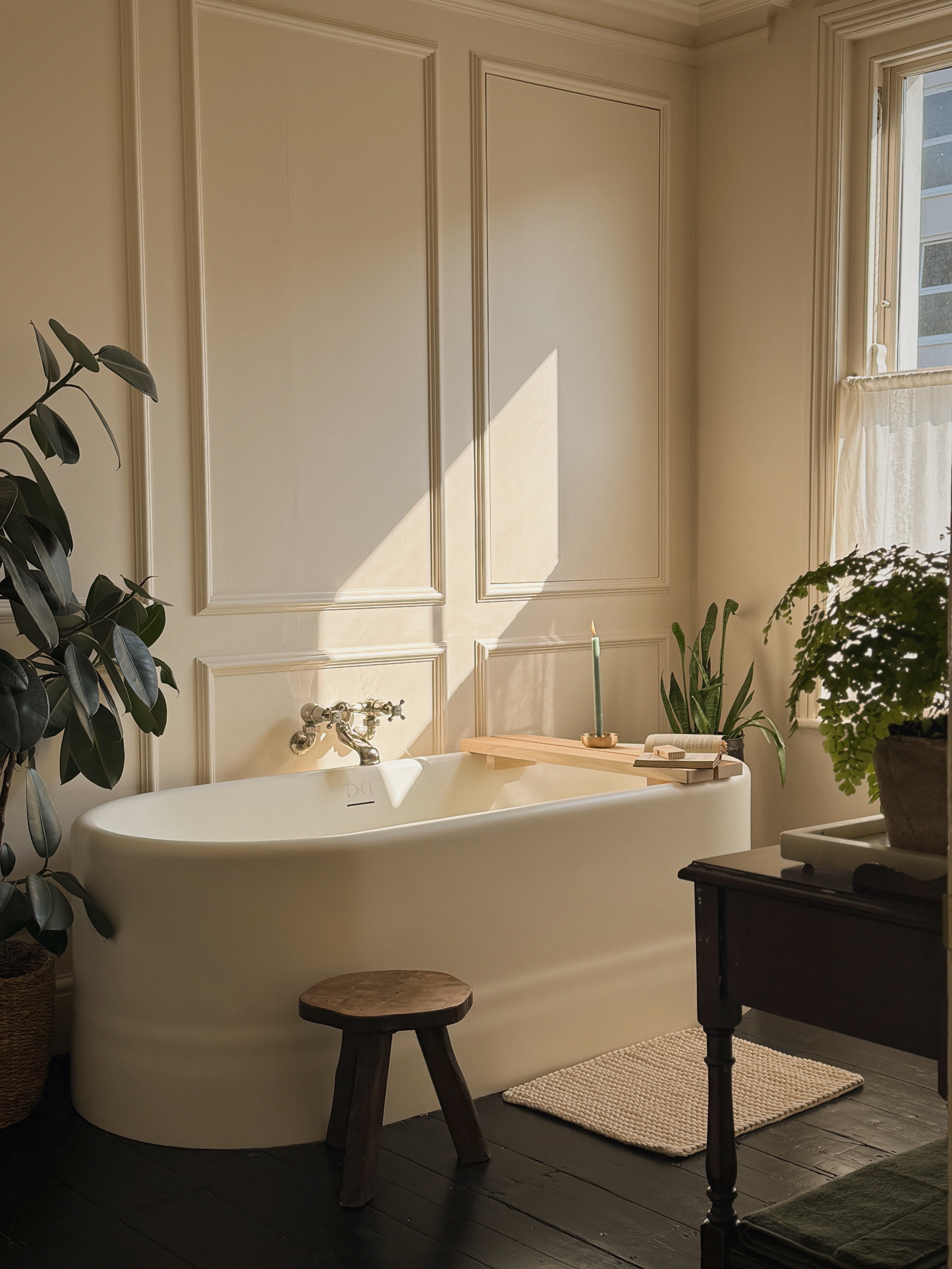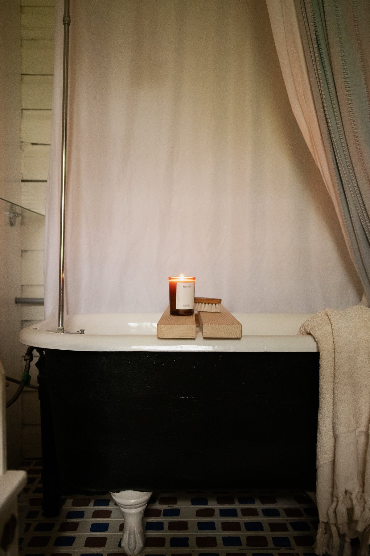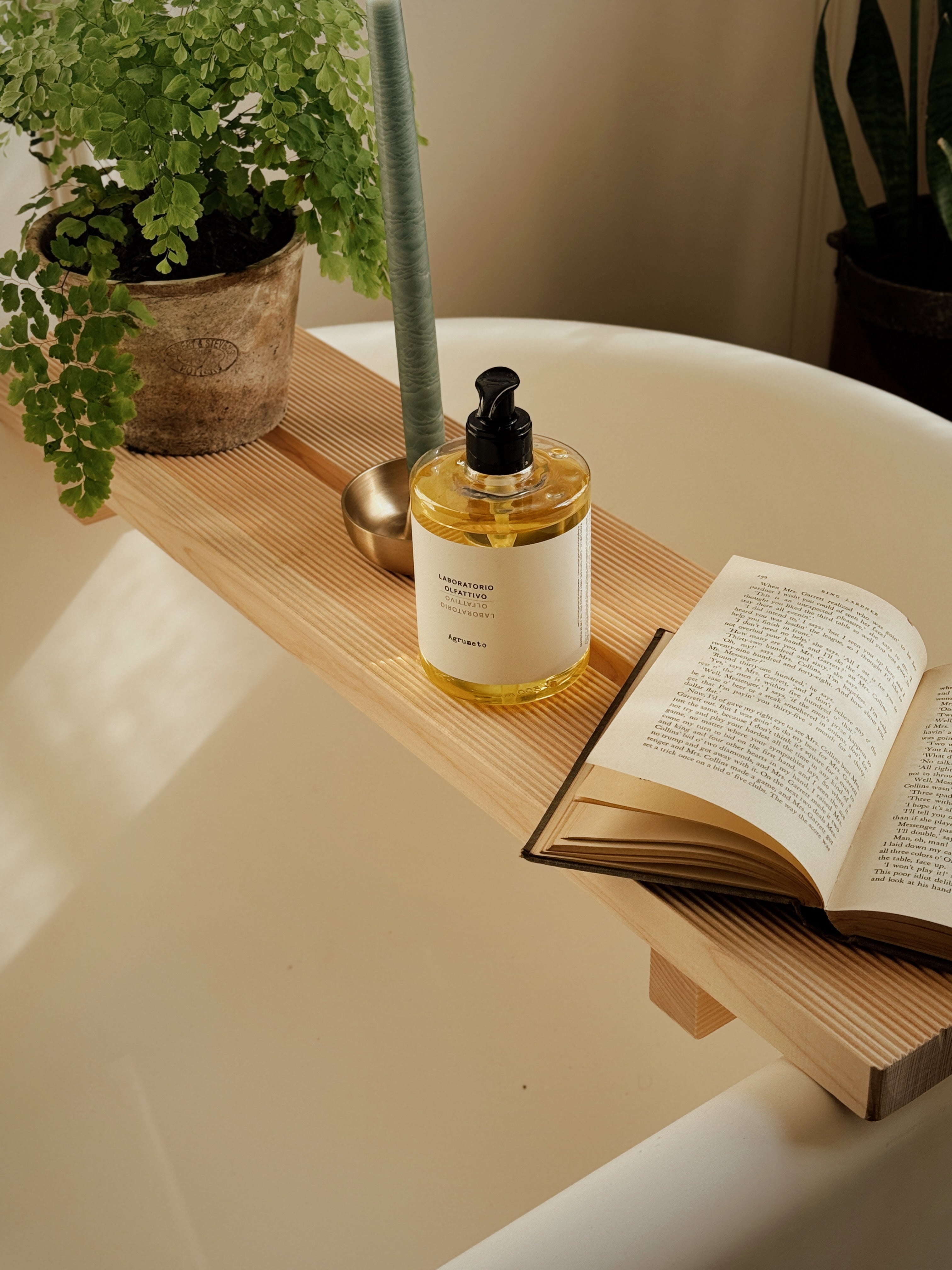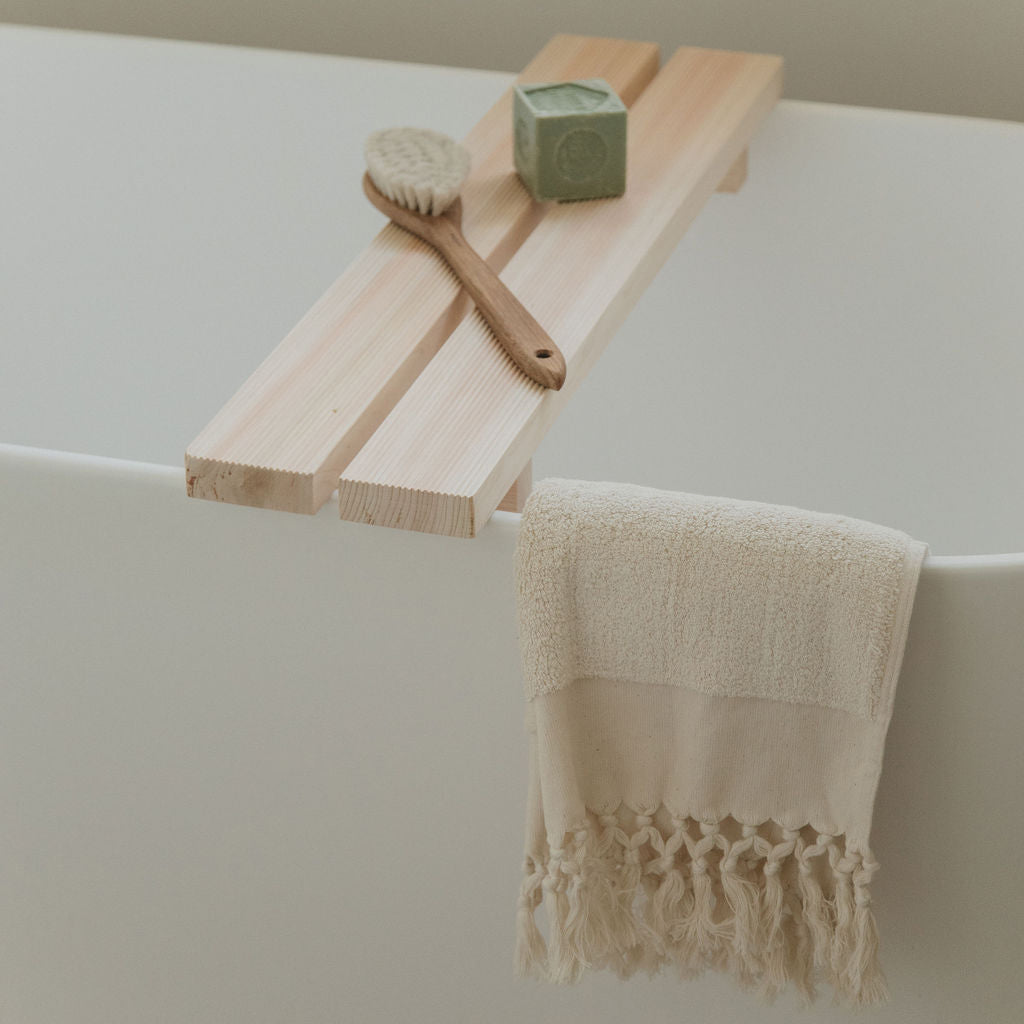 Invite this hinoki bath bench into your home and lean into the therapeutic benefits of this ancient wood. Designed to seat you comfortably in the tub for a relaxing and meditative bath, it can also be used as a bath caddy to house a book, mug of tea, notebook, etc.