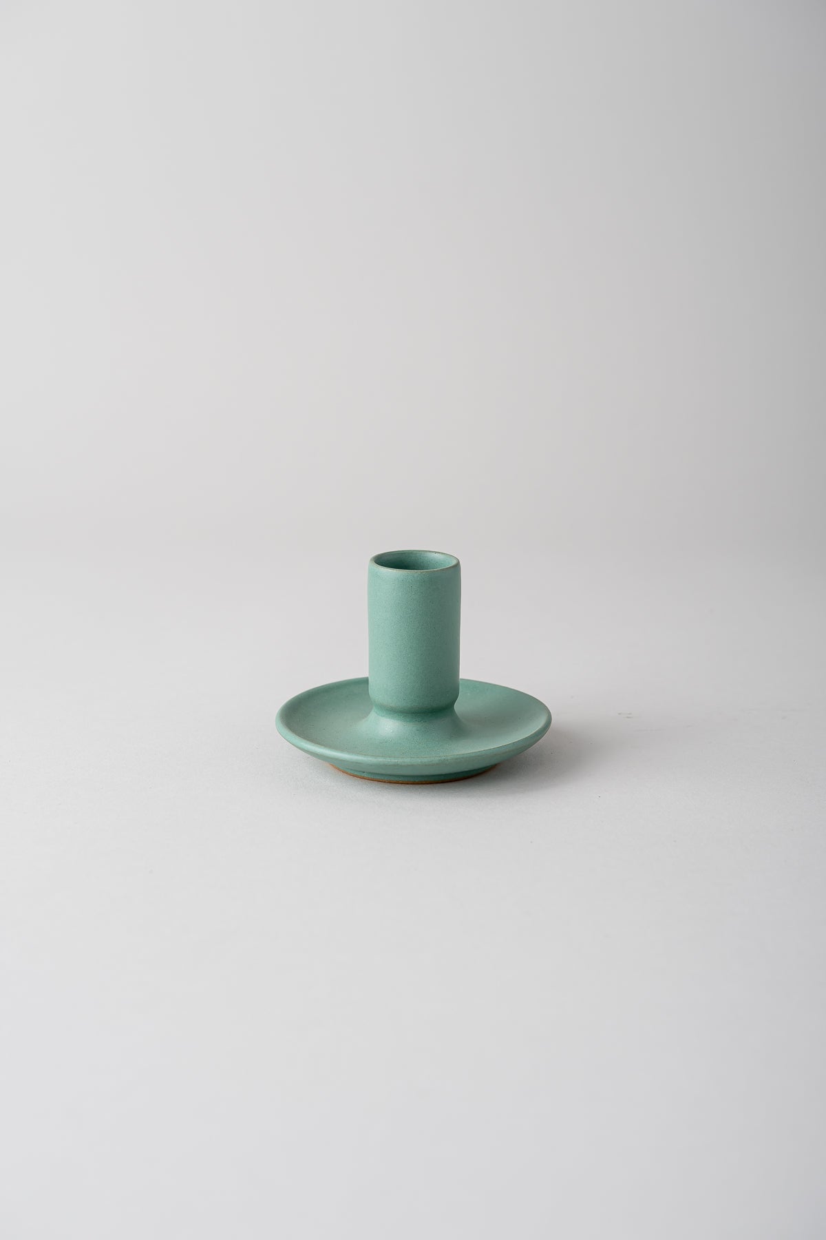 This simple, handmade candle holder is just the thing to house your flickering beeswax taper. The matte green glaze provides a delightful pop of colour for your windowsill, mantle, or tablescape.