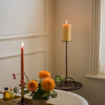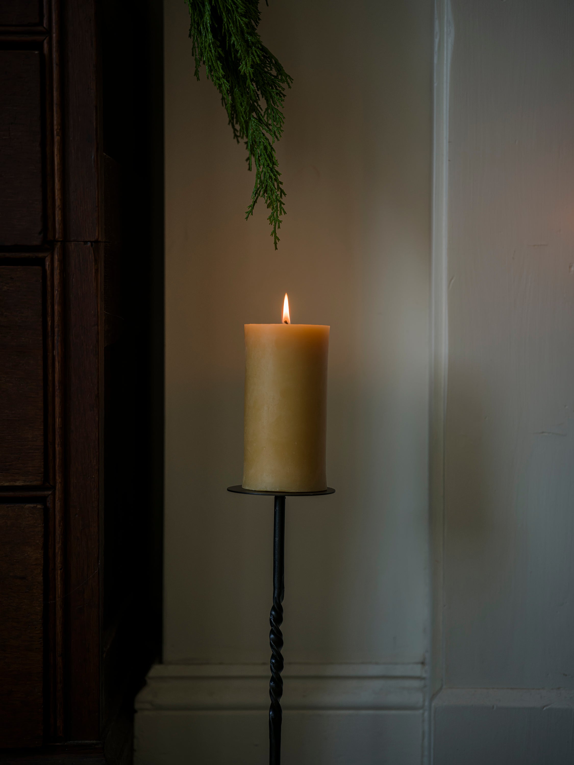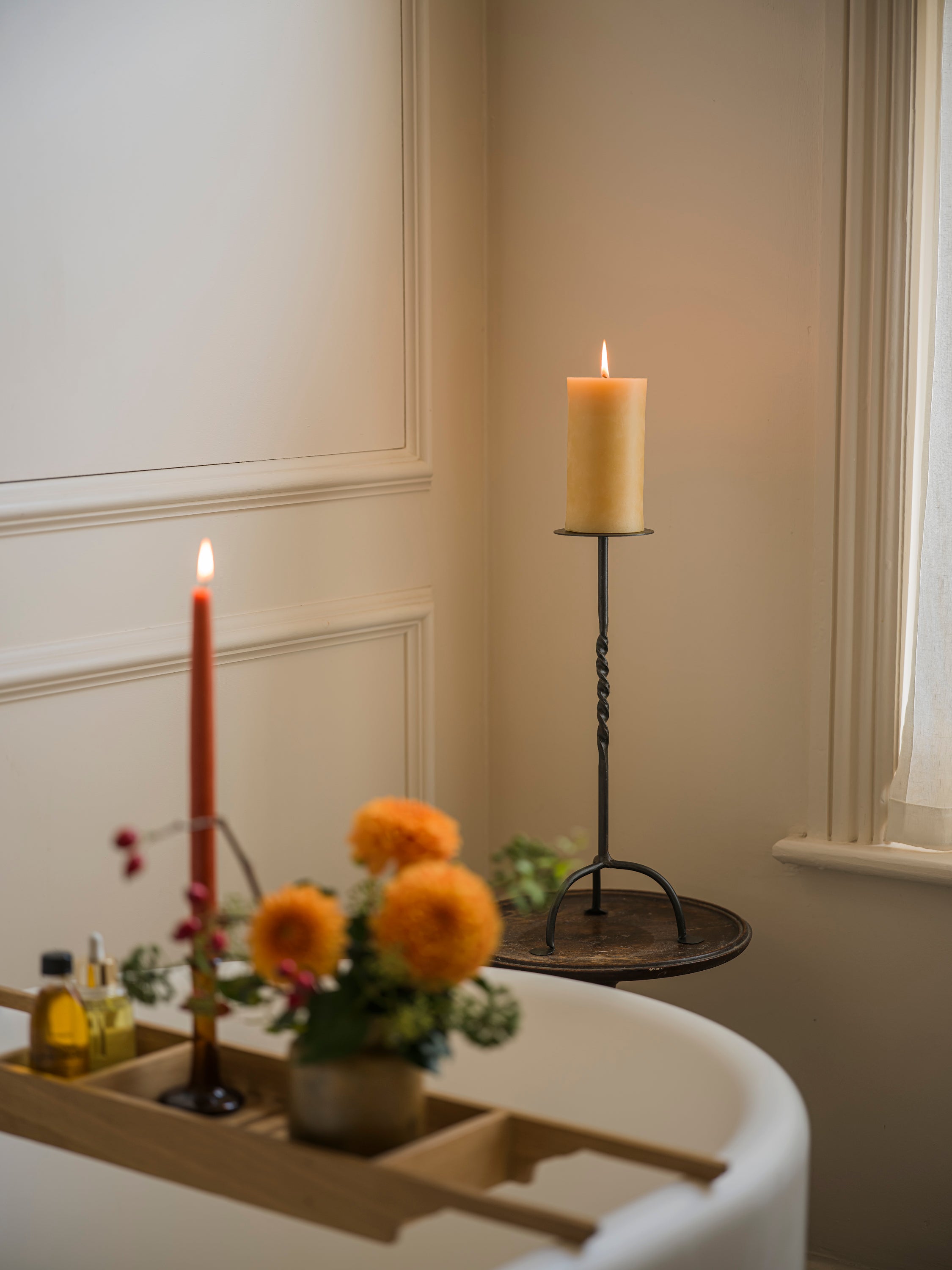Add a touch of elegance to your table with our wrought iron candle holder. Featuring a twisted iron centre atop its graceful rounded legs, we love the romantic style that lingers about this piece.
