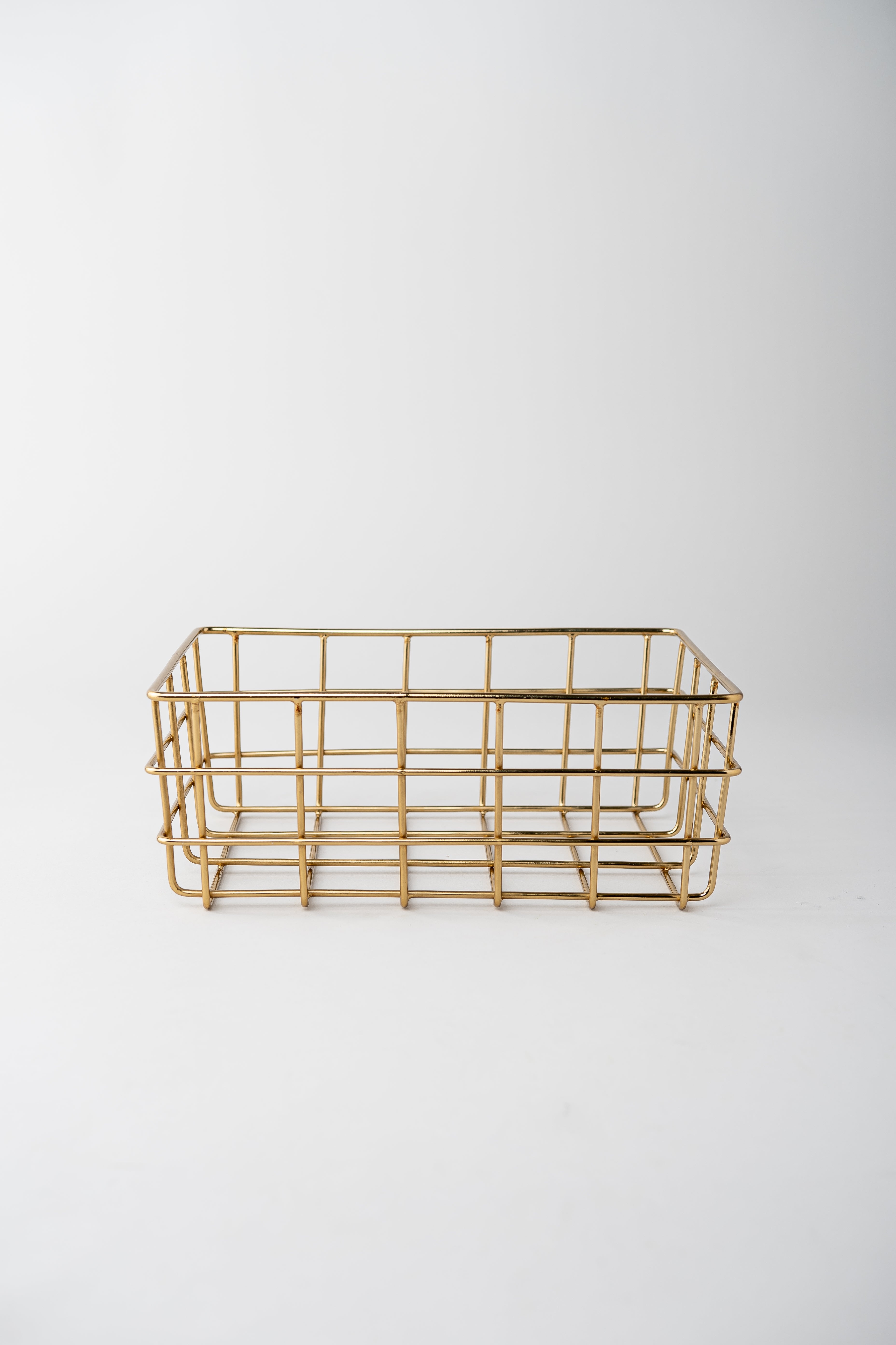 A handsome solution for pantry or utility storage. Crafted from warm brass wire with a clean, open design, this basket keeps essentials visible and within easy reach - elevating your storage needs with an elegant, yet quiet utility.