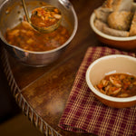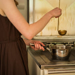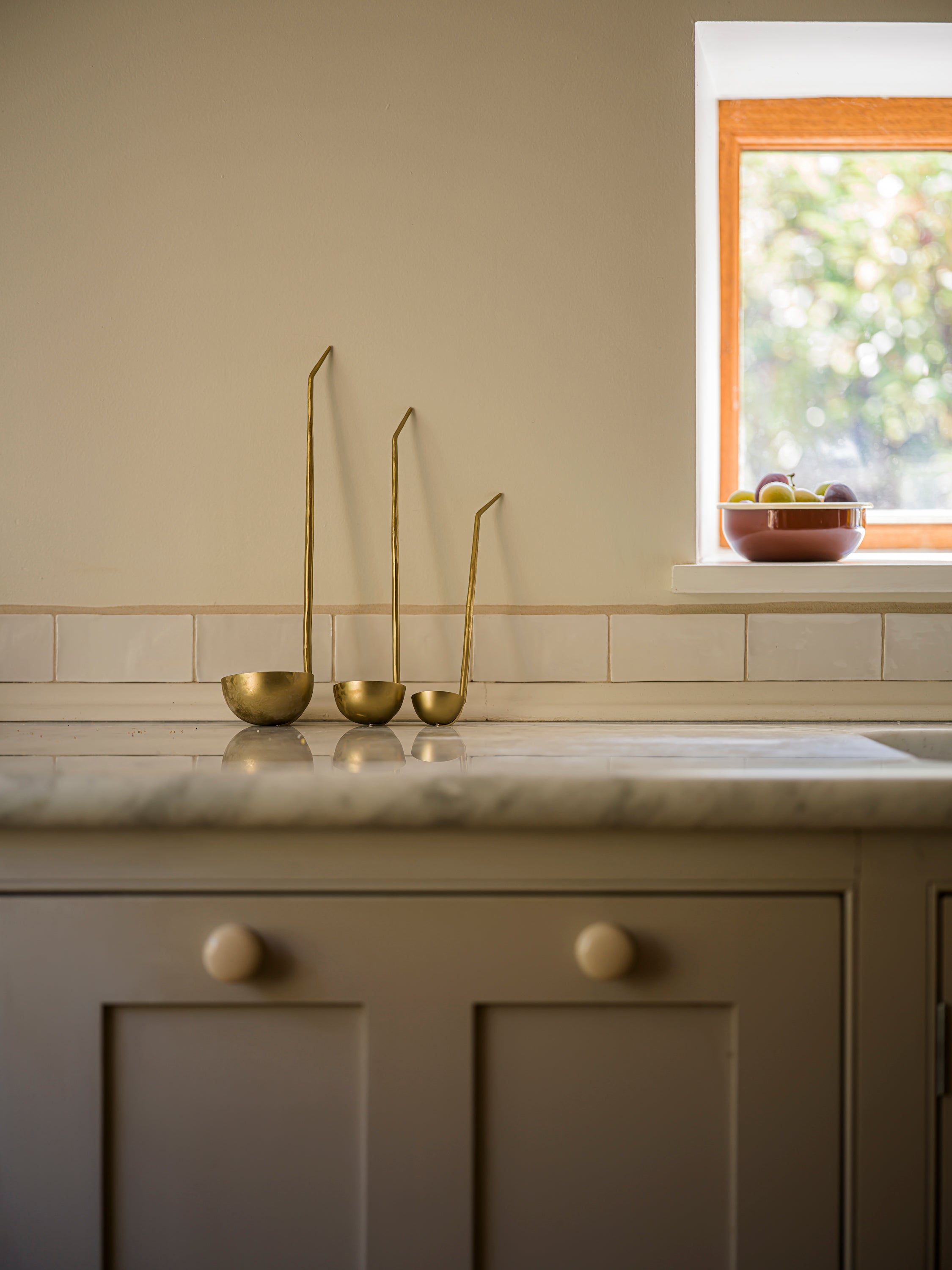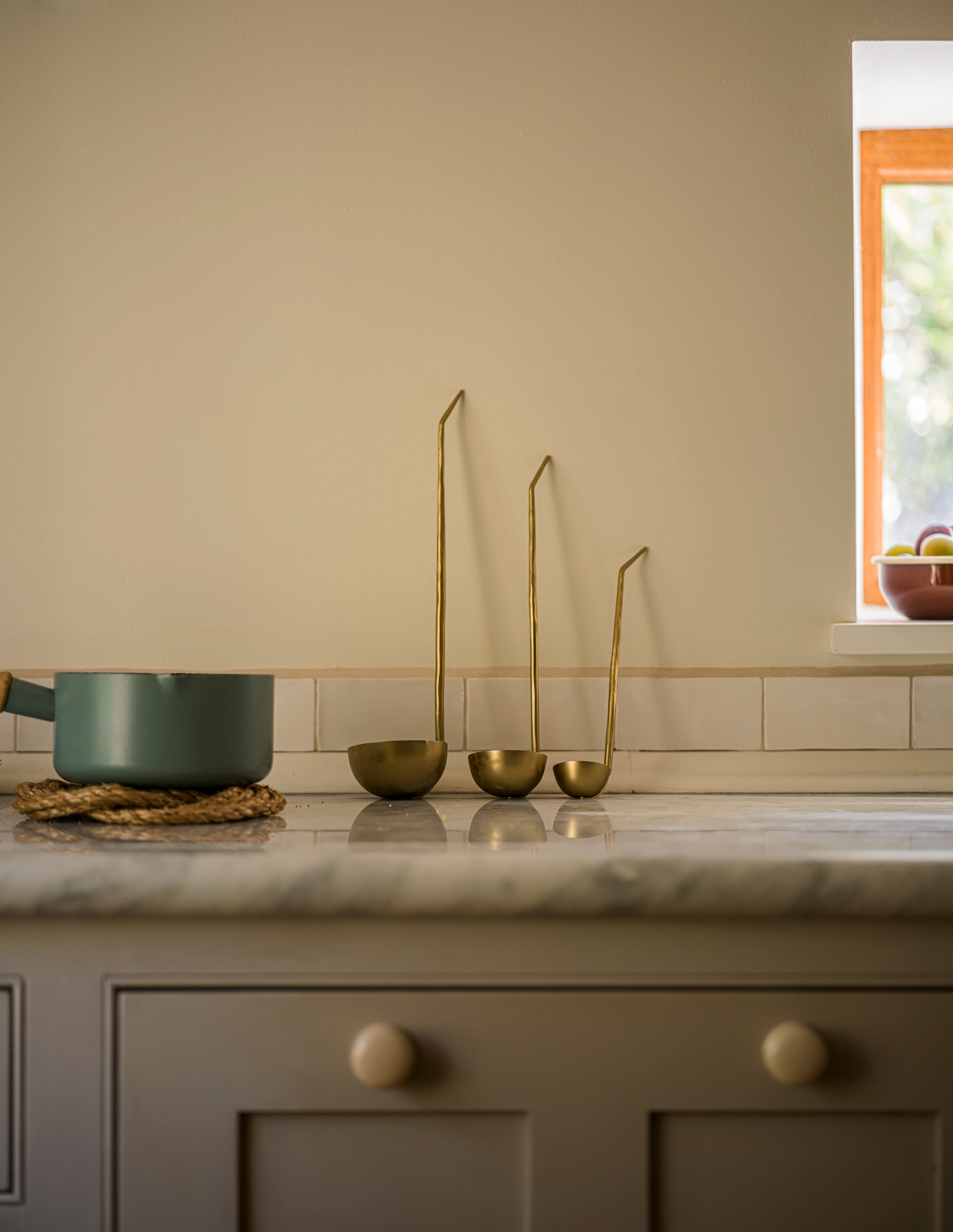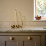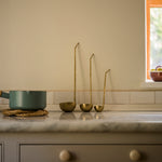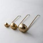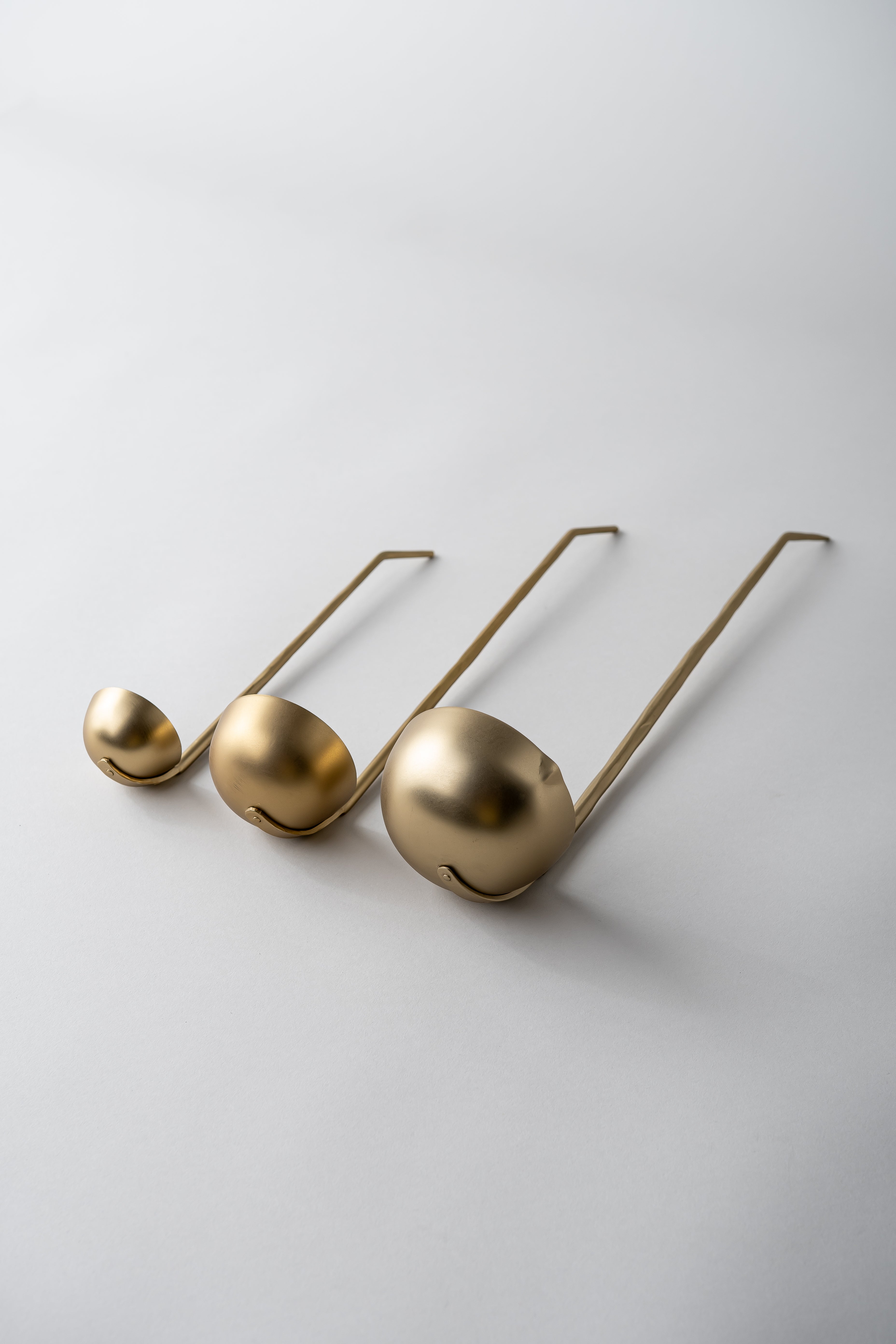 A trio of hand-forged brass ladles, each shaped with care and designed to serve from pot to table with timeless appeal. Slow-cooked stews, simmered sauces, and delicious desserts await.