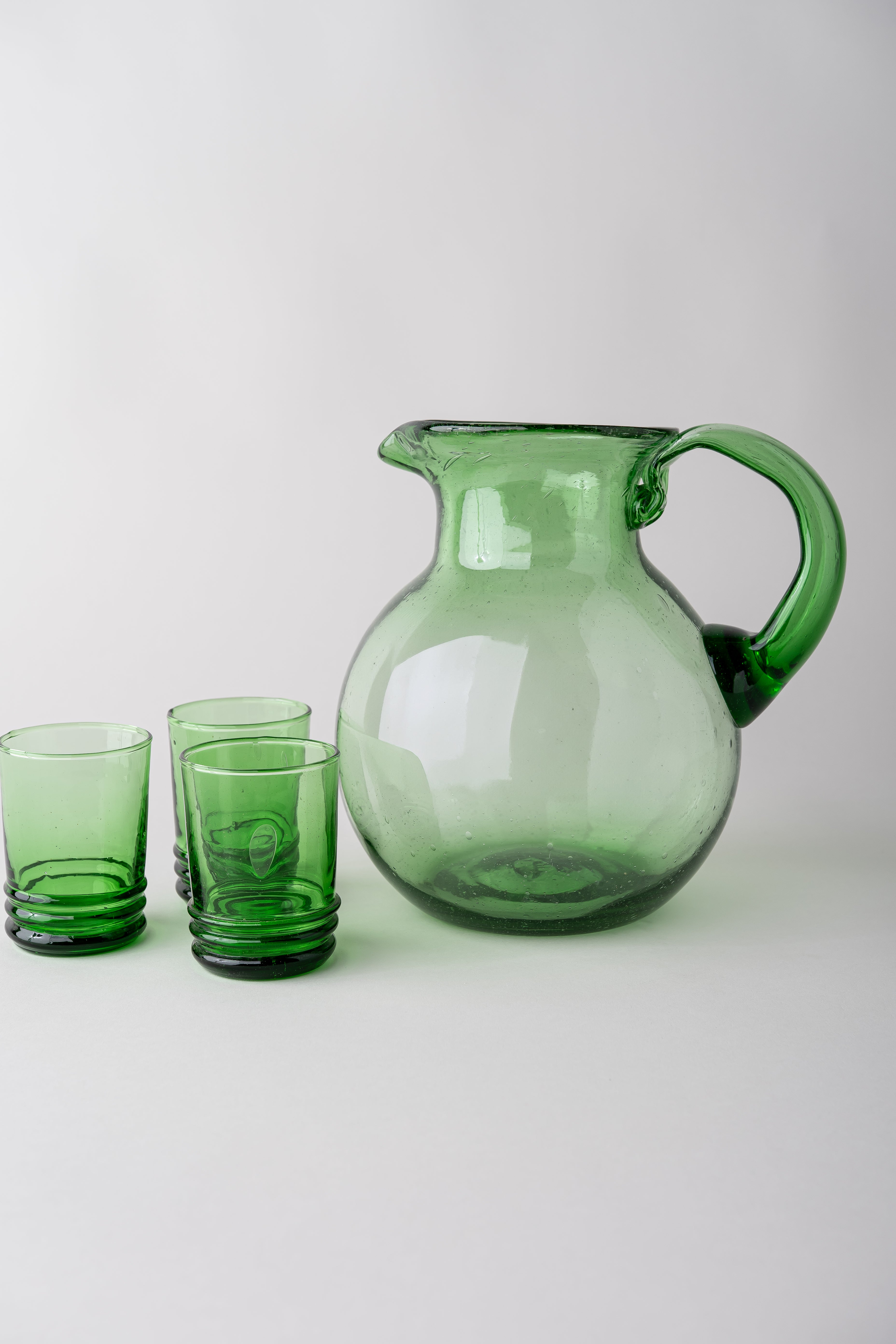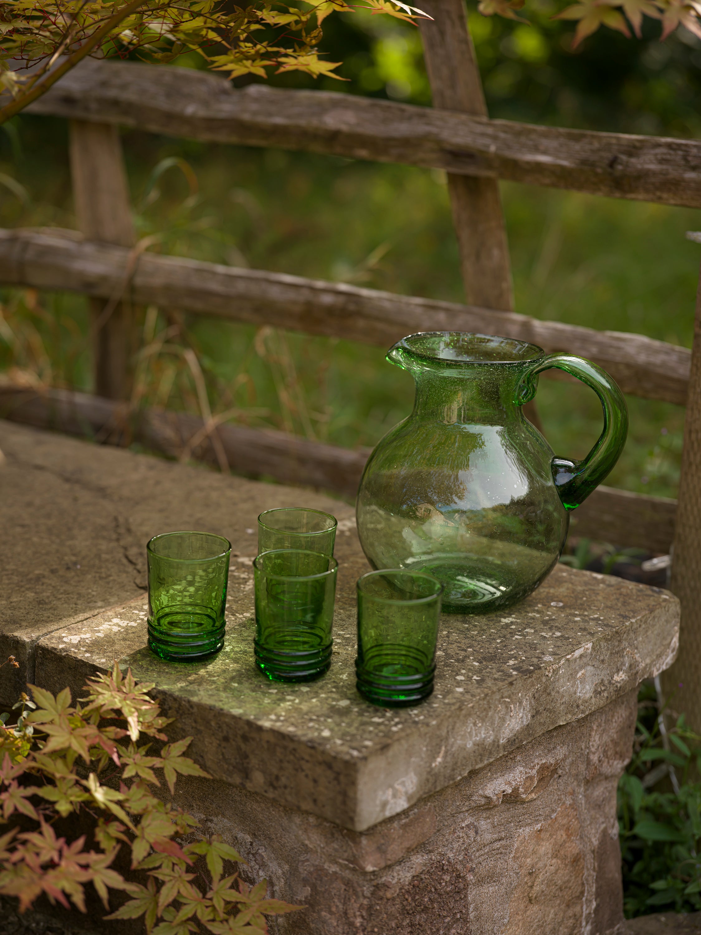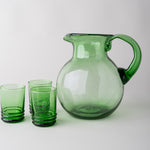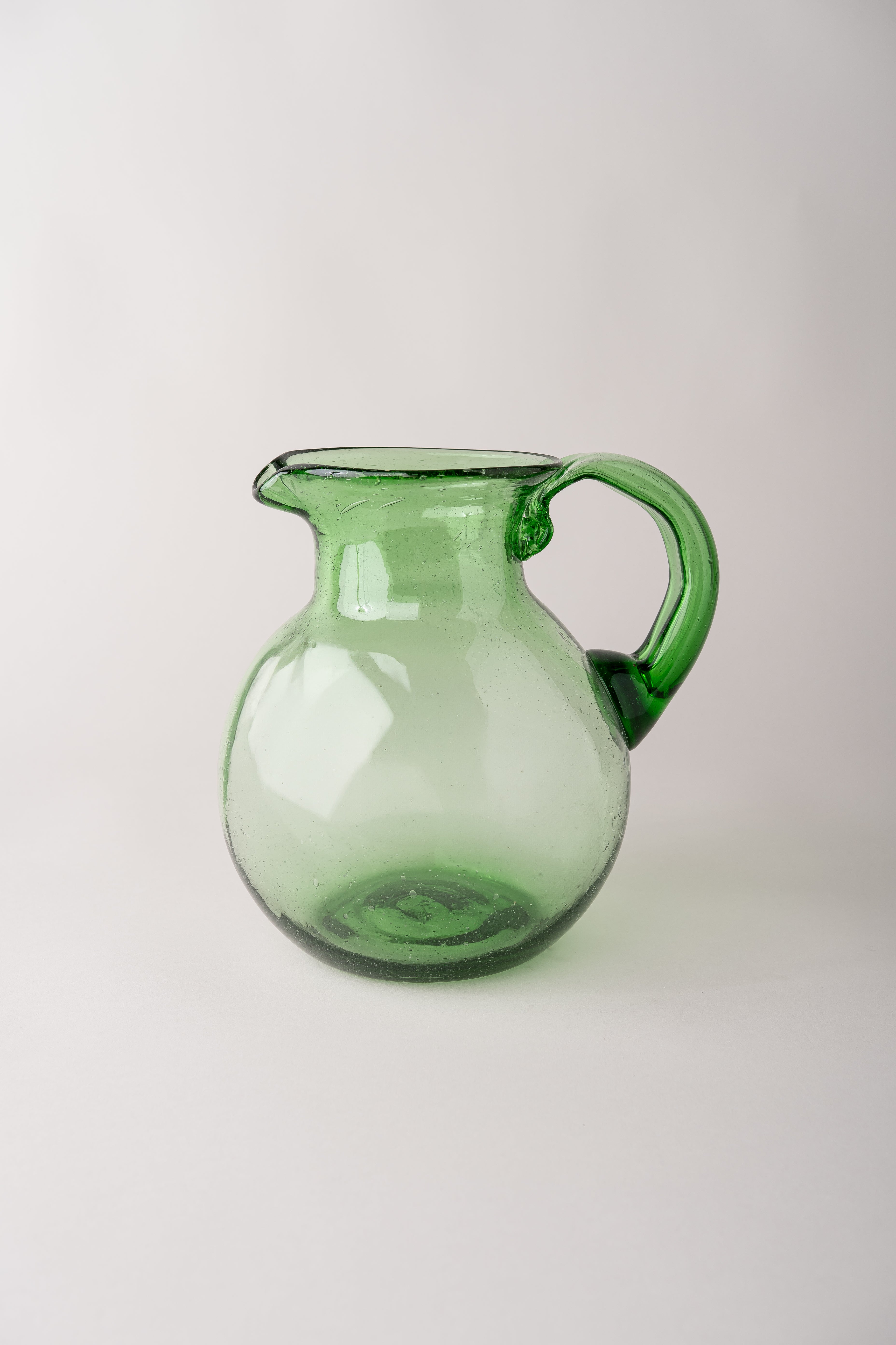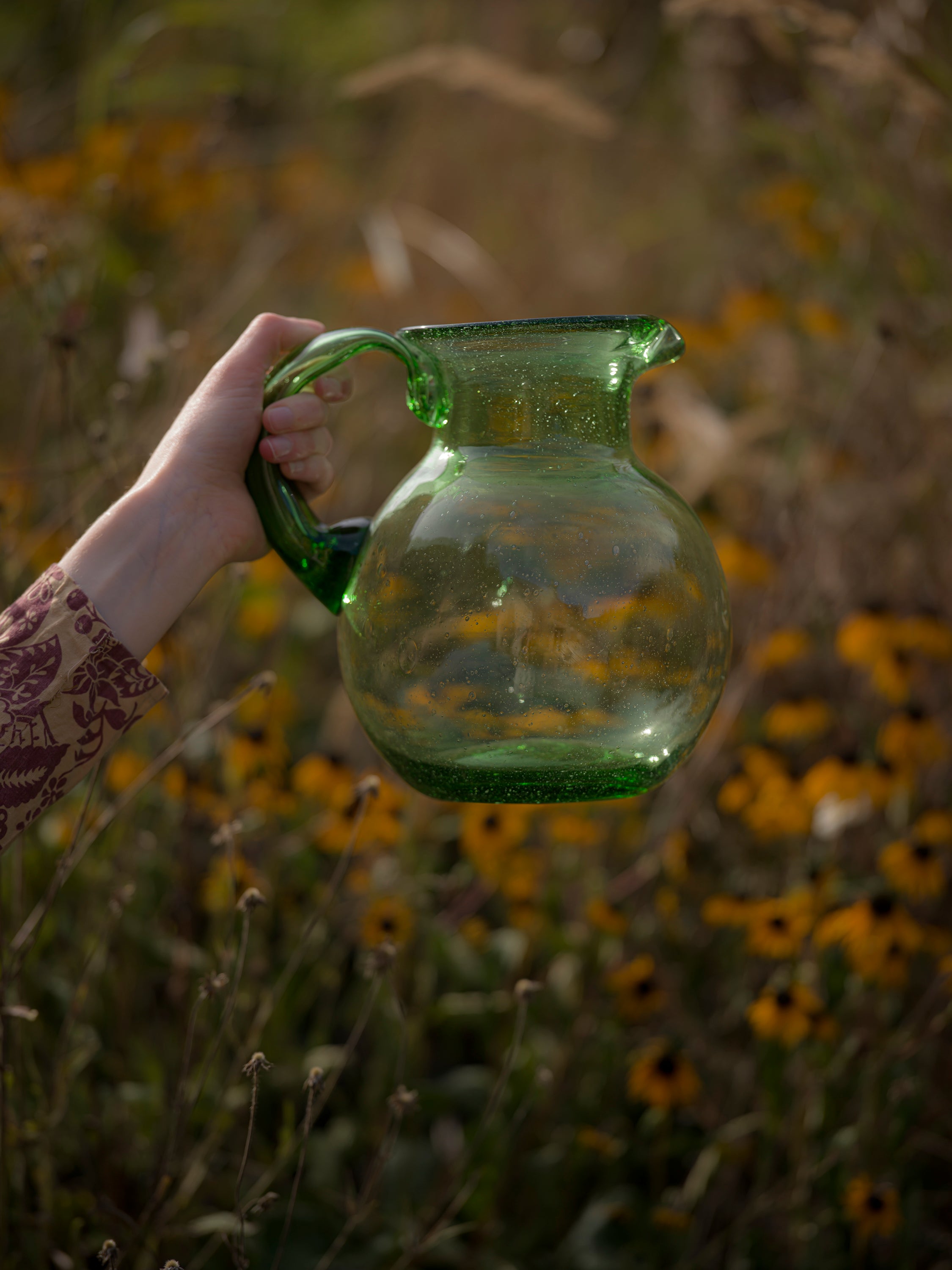 Hand-blown in Guatemala from recycled glass, with a rounded, generous form in forest green. Holds up to three litres - perfect for serving a crowd, or for a lovely bouquet of flowers on the table. Each piece carries subtle variations in tone and texture, a reminder of the hands that shaped it.