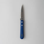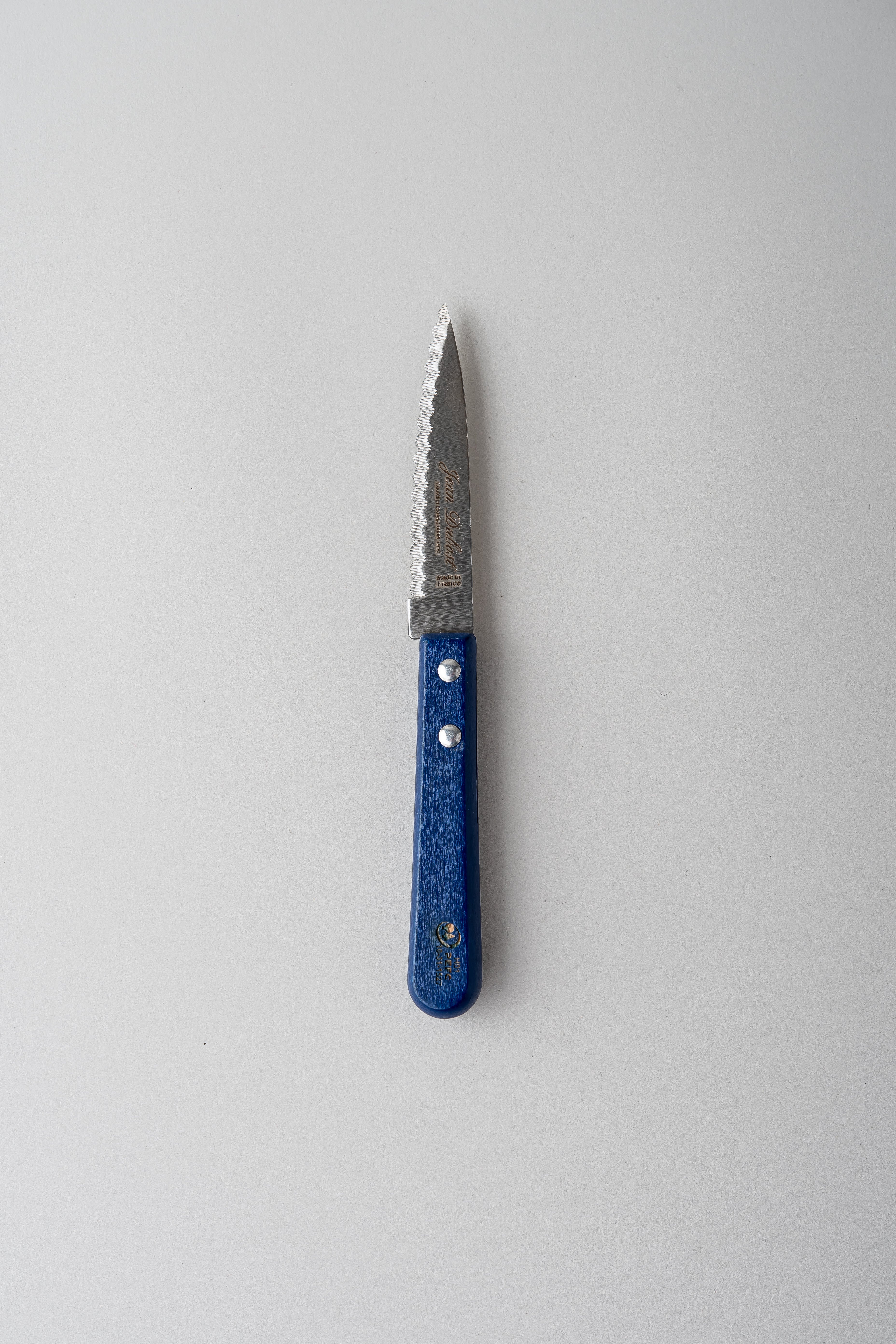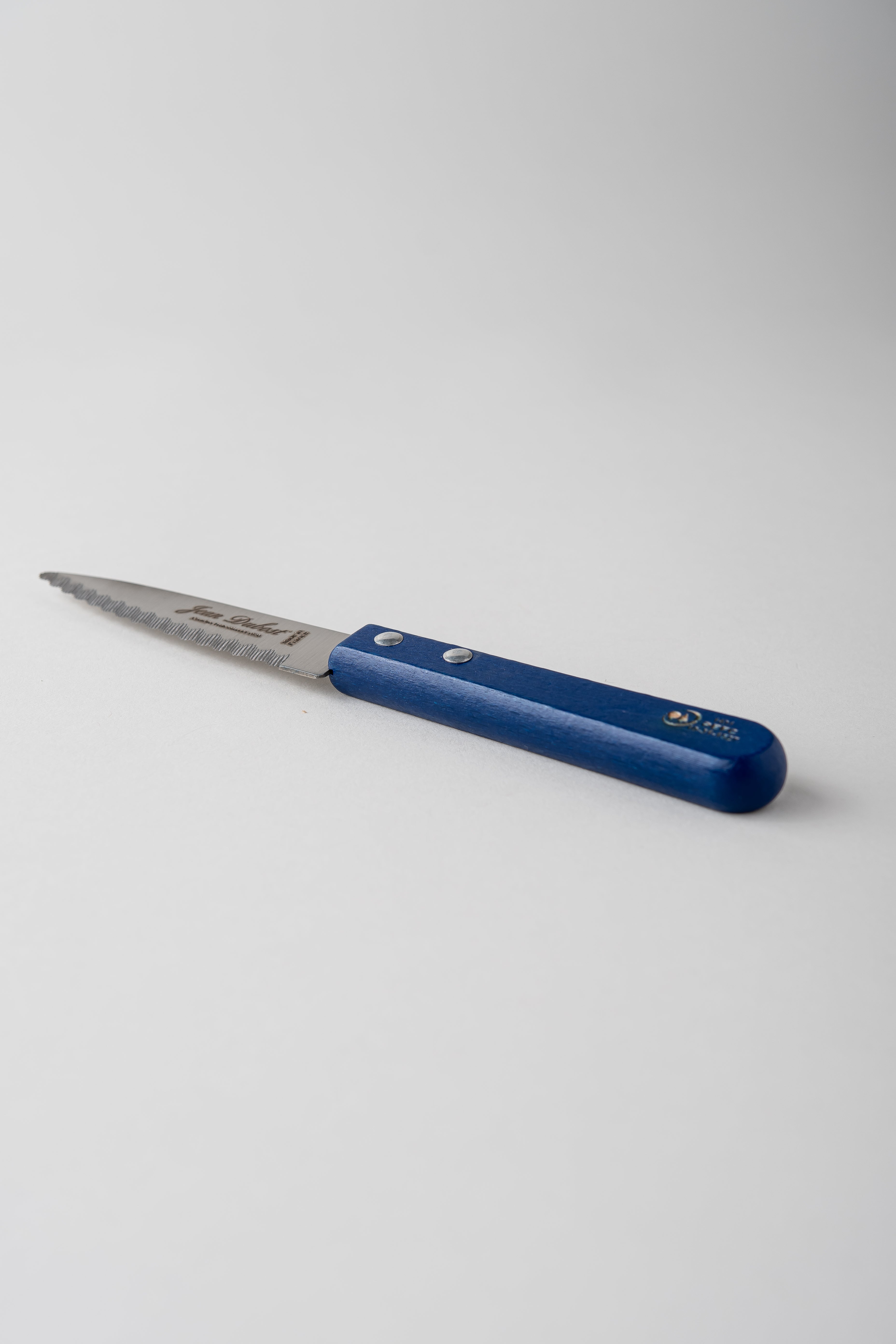 A small but mighty kitchen essential, expertly designed by Jean Dubost. This paring knife features a serrated stainless steel blade and a smooth beechwood handle, finished in a deep blue tone. Lightweight, balanced, and designed for precision - perfect for tasks that require a bit of precision, like slicing through soft fruits, vegetables with slippery skins, or delicate pastries and baked goods.