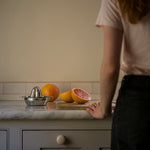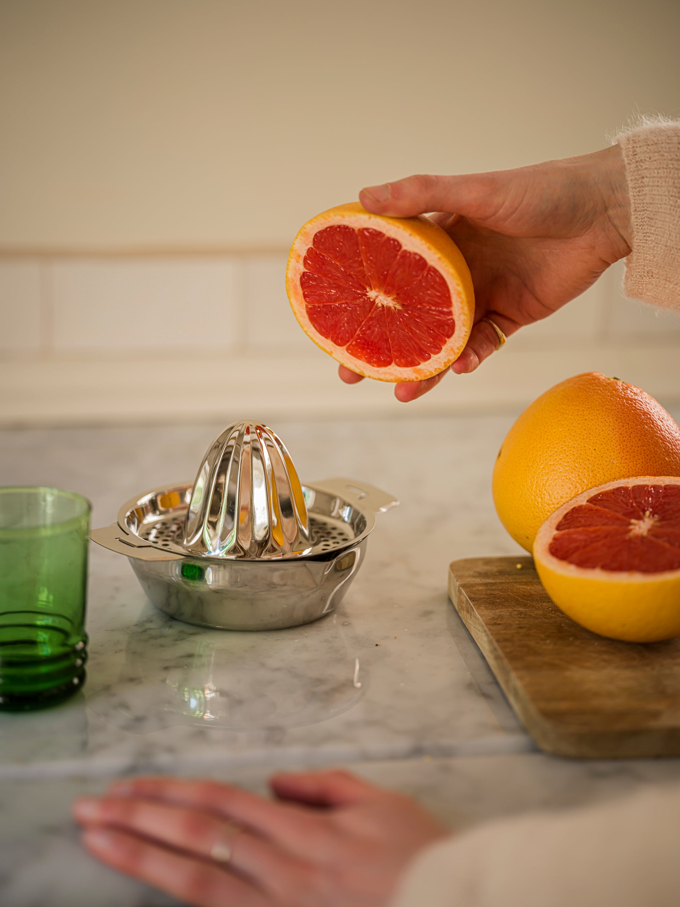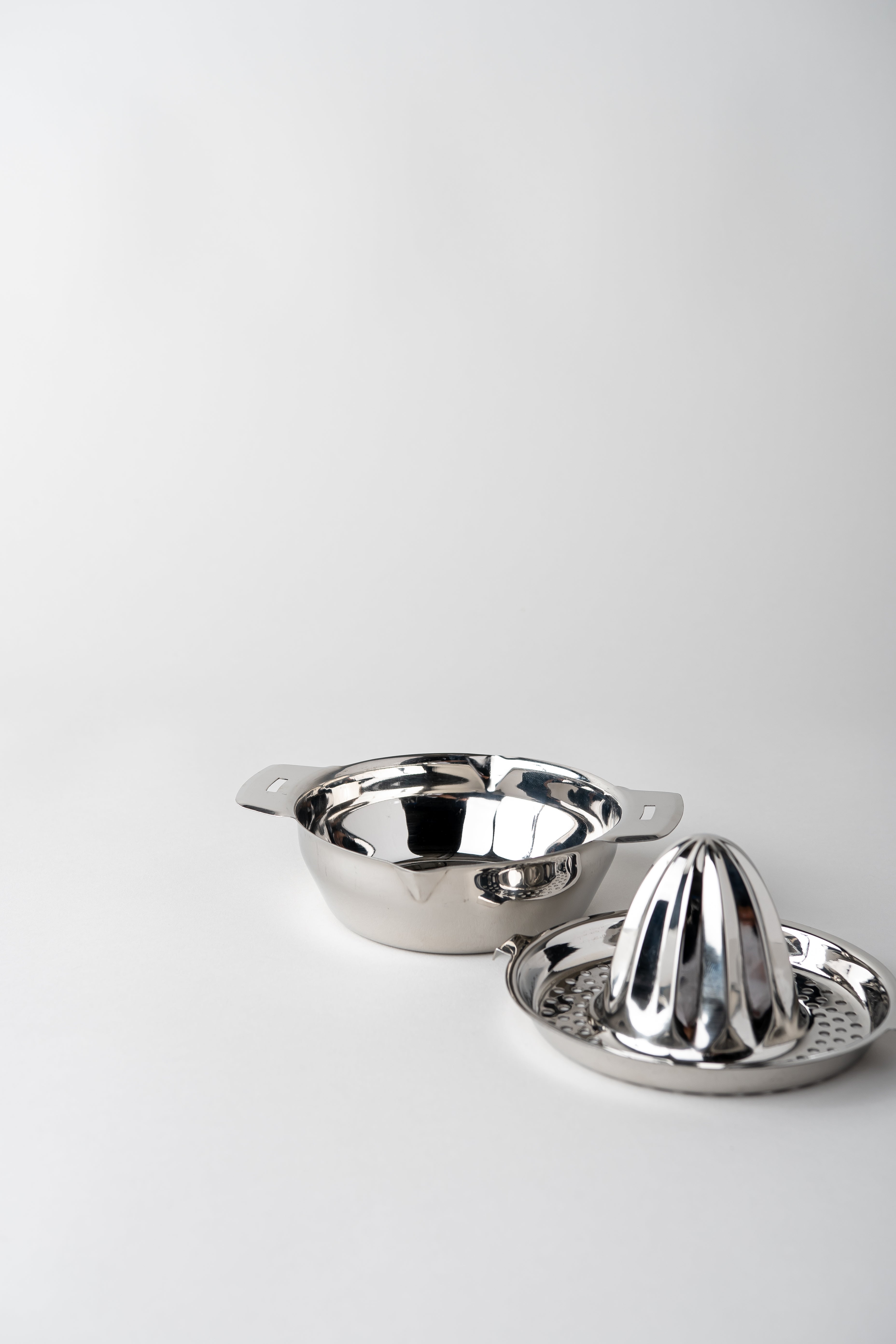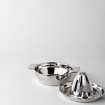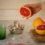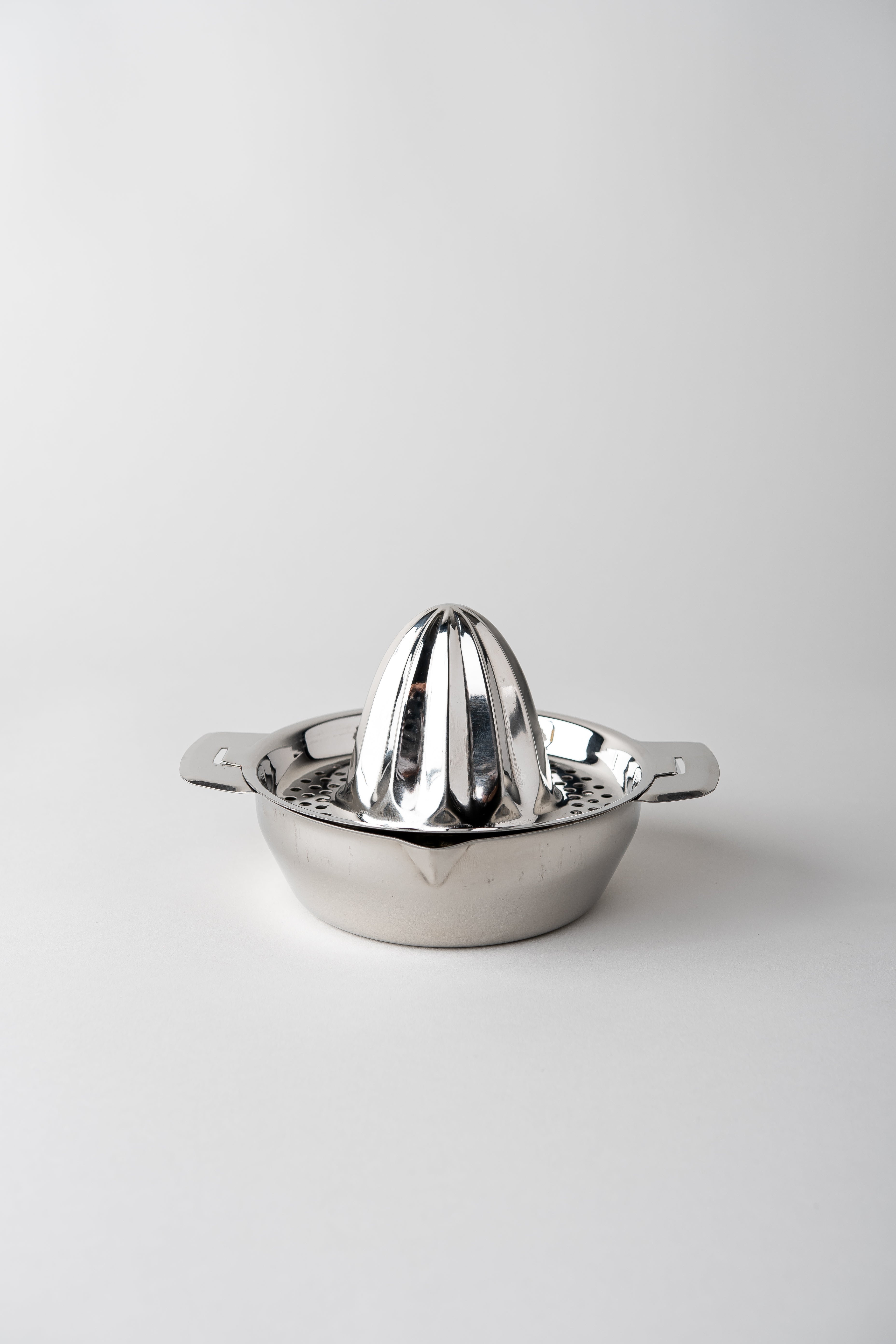 Effortlessly add the bright, fresh flavour of citrus to sauces, cocktails, and other creations with this stainless steel manual juicer. The reamer lid features a built-in strainer to catch pips and seeds while remaining in place while you work.