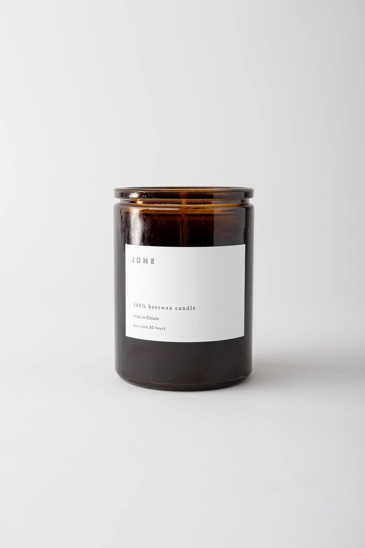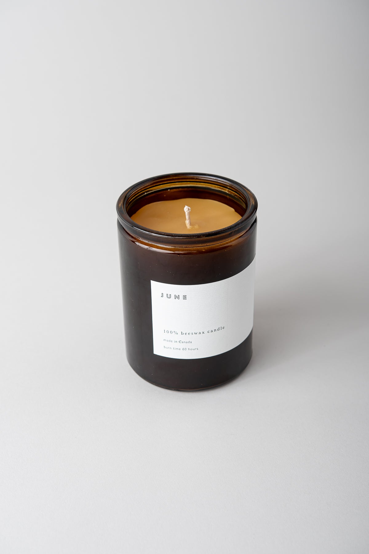 A simple glass tumbler, hand poured for us by local maker Alison Doerksen of Barletta. From locally sourced beeswax.