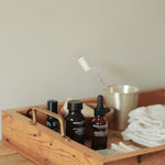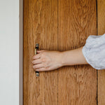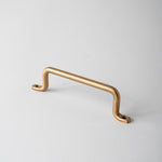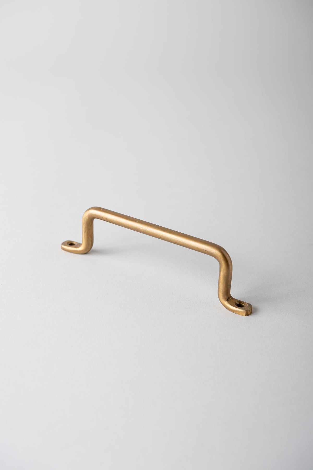 Simple, timeless, hand-made handle of warm, antiqued brass. Useful on doors and drawers.