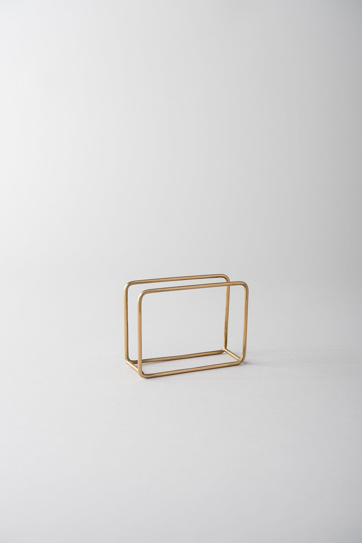 A minimalistic brass paper napkin holder, perfect for organizing paper napkins or coffee filters in your dining area or kitchen.