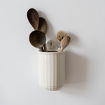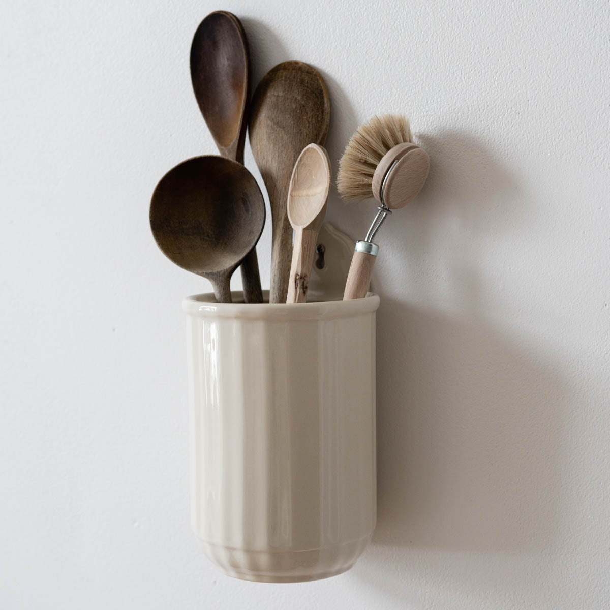 Taking cues from charming vintage stoneware, this crock serves multiple services for a variety of rooms in your home. You can fasten it to the wall in the dining room, living room, or bathroom to house any assortment of greenery or flora. Use it on the kitchen counter to store utensils or in the art room to store brushes.