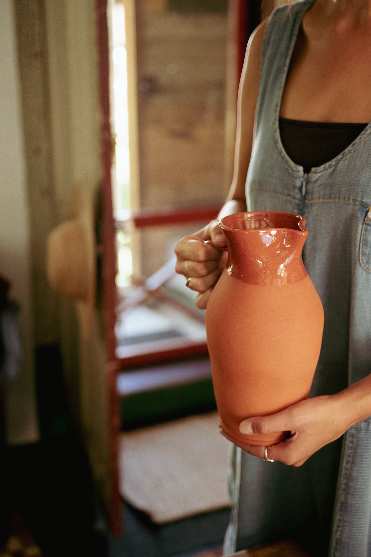 A striking pitcher with the sleek top and glazed interior, we love how the design merges a raw and glossy finish. This hand-thrown piece is traditionally found in local restaurants serving wine from large earthenware jars throughout the Iberian peninsula.